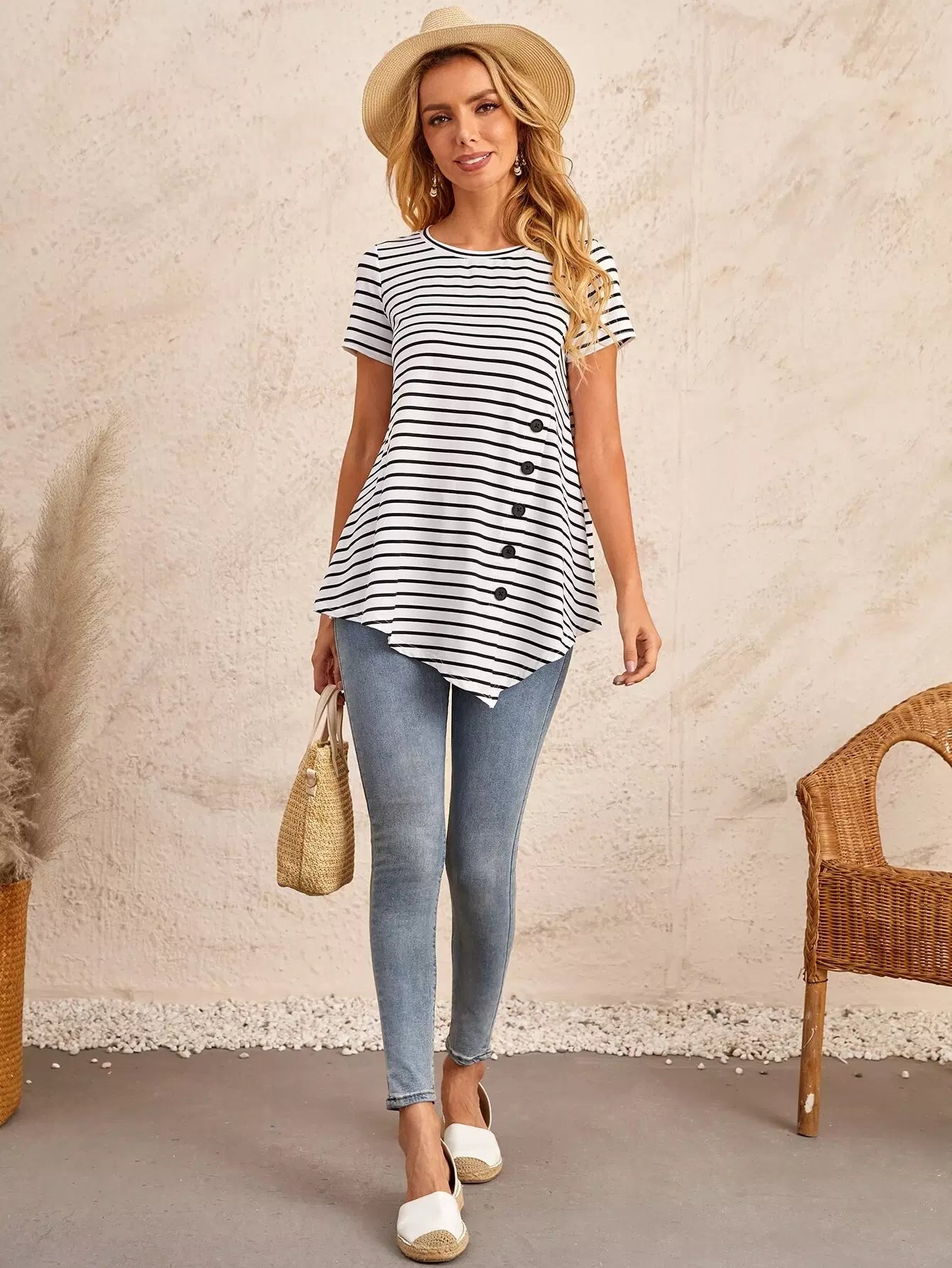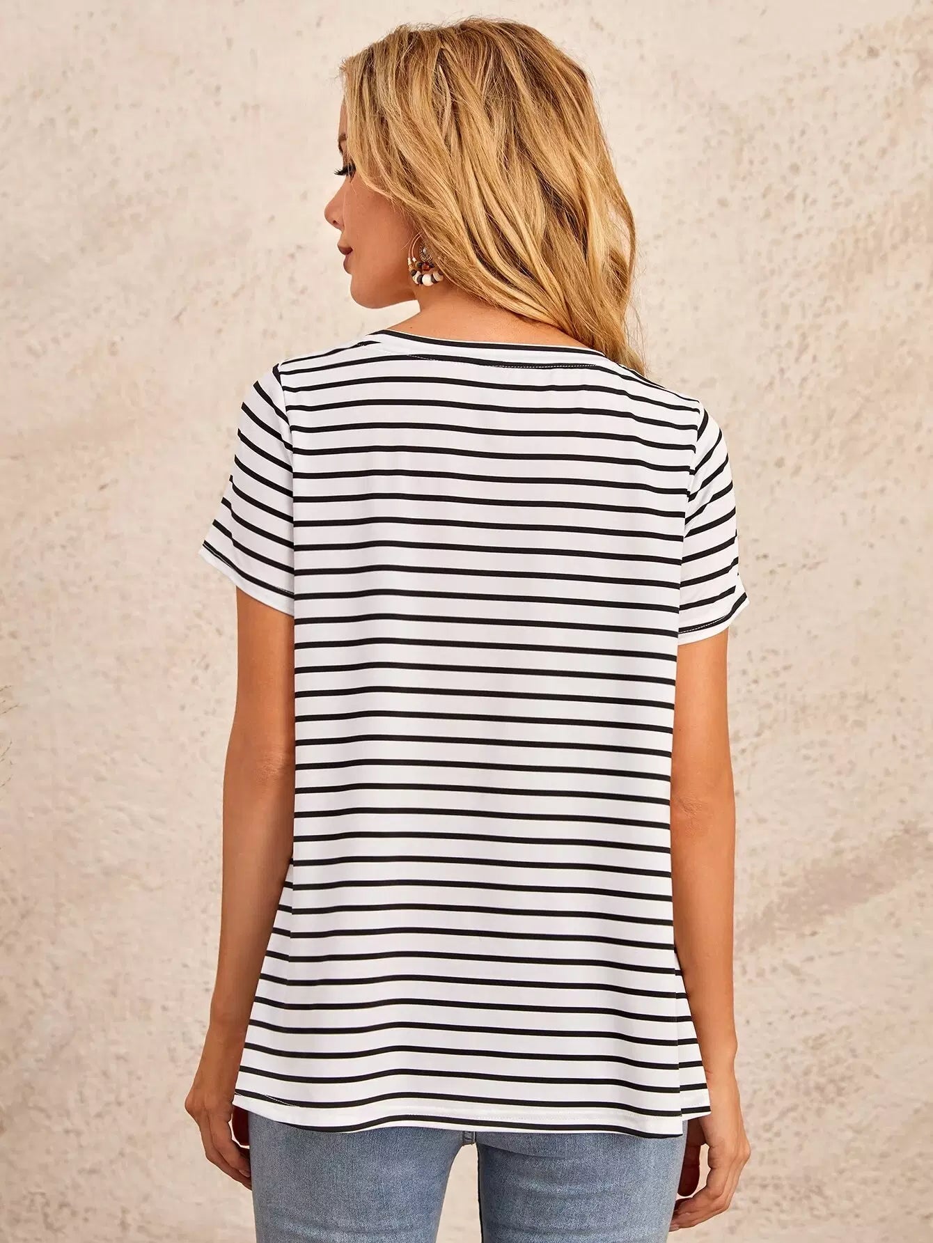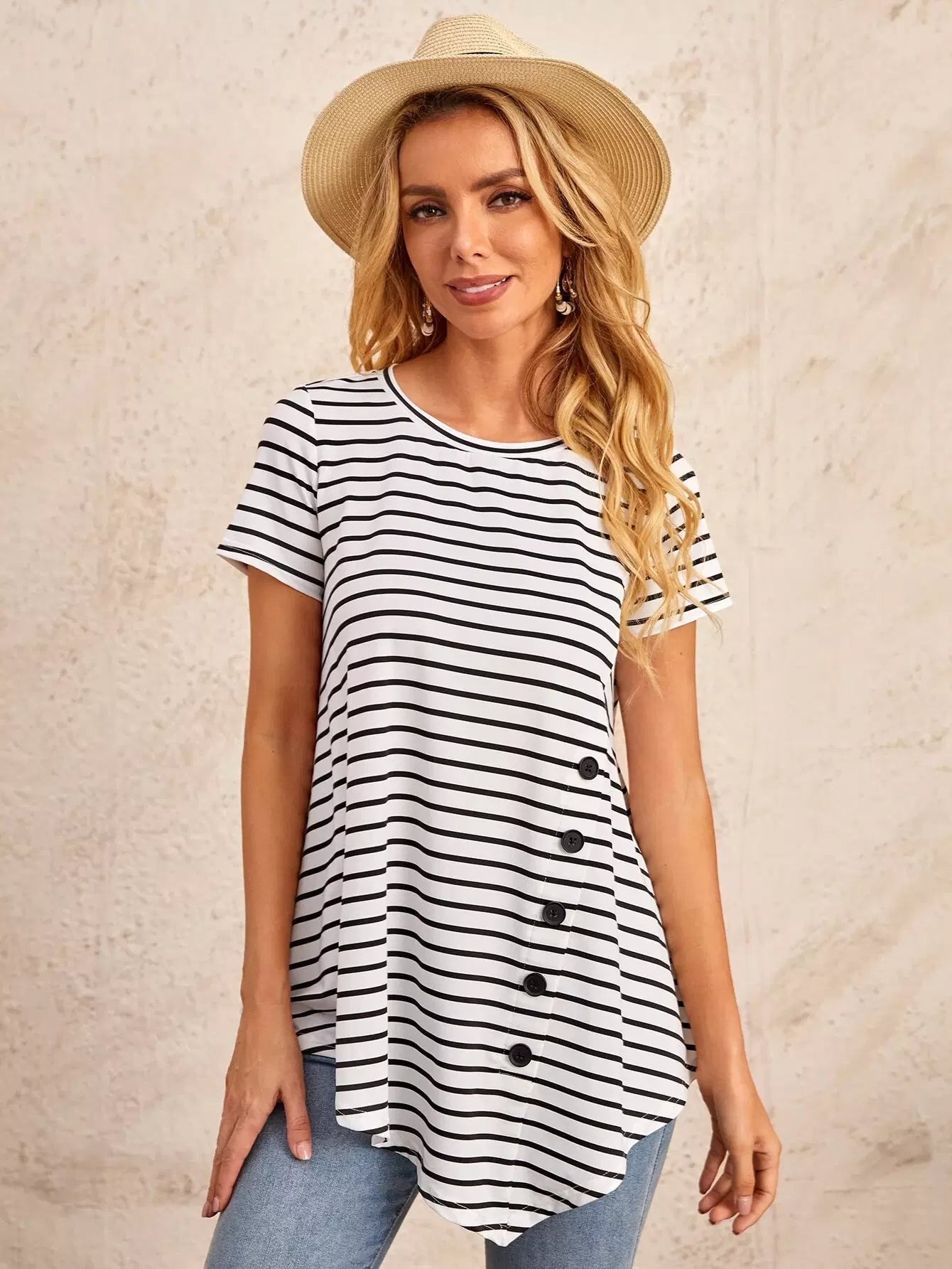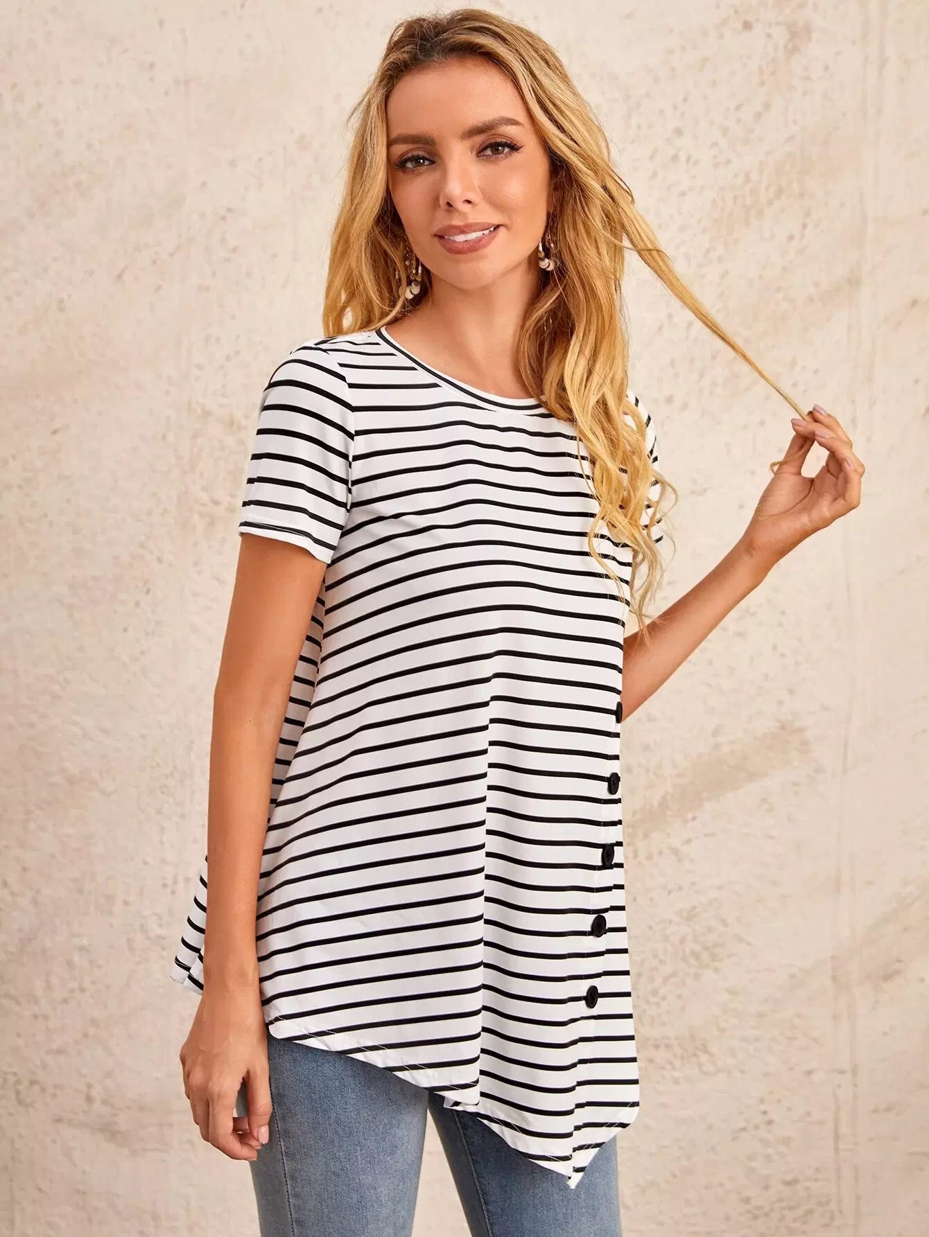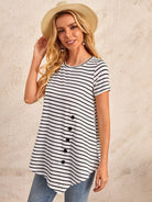 تي شيرت مخطط بأزرار أمامية
