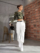 تي شيرت شبكي بطبعة كامو بدون حمالة صدر