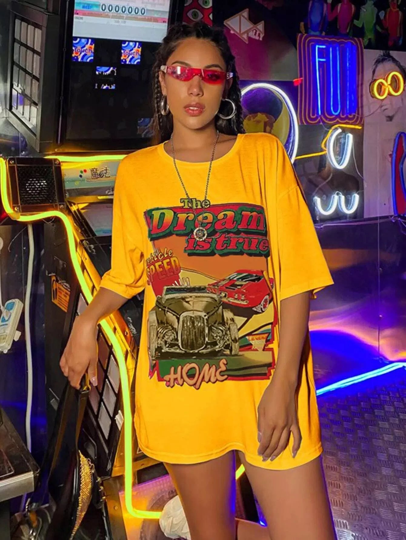 تي شيرت برسومات سيارات ورسومات حروف كبيرة الحجم