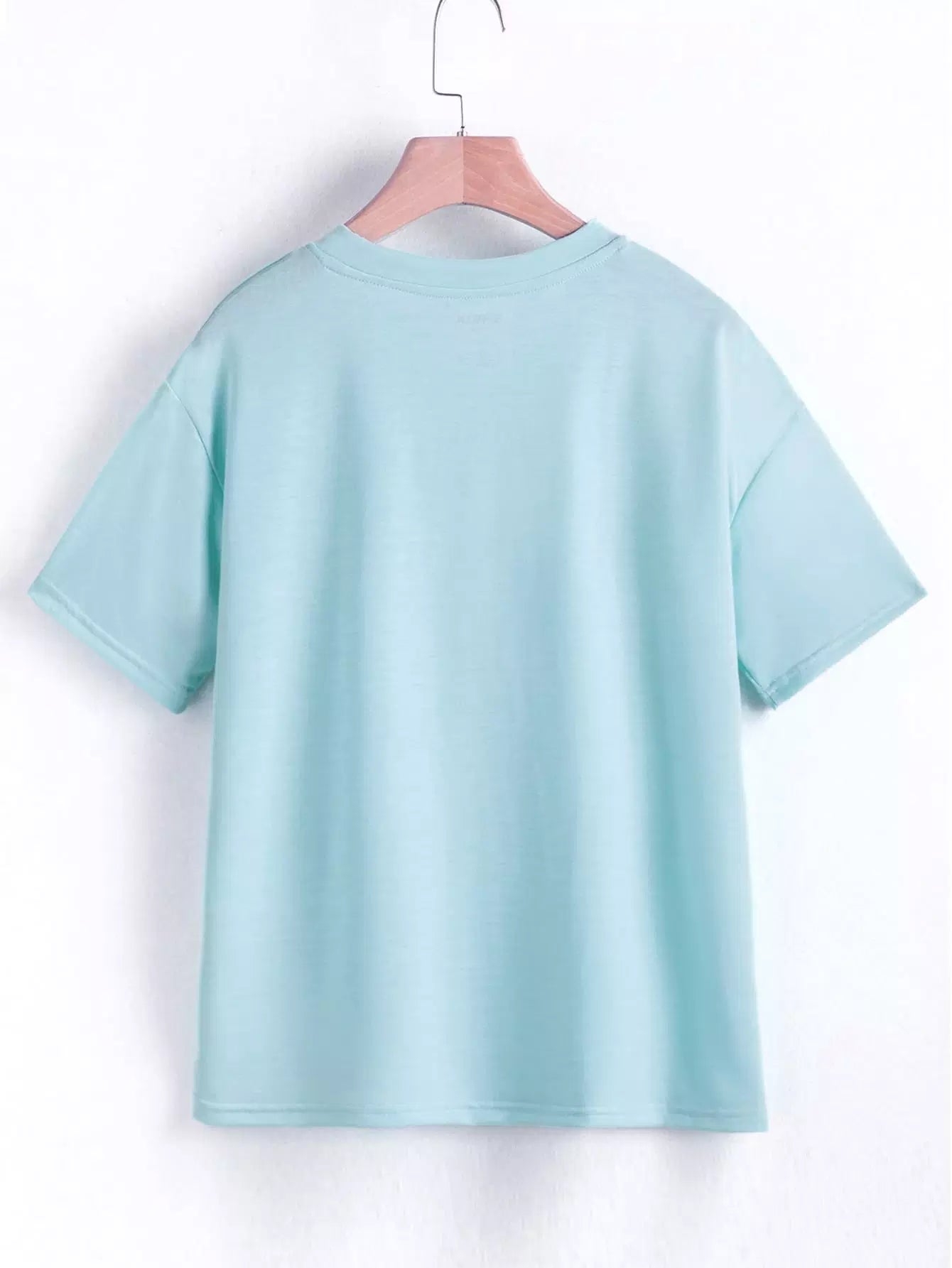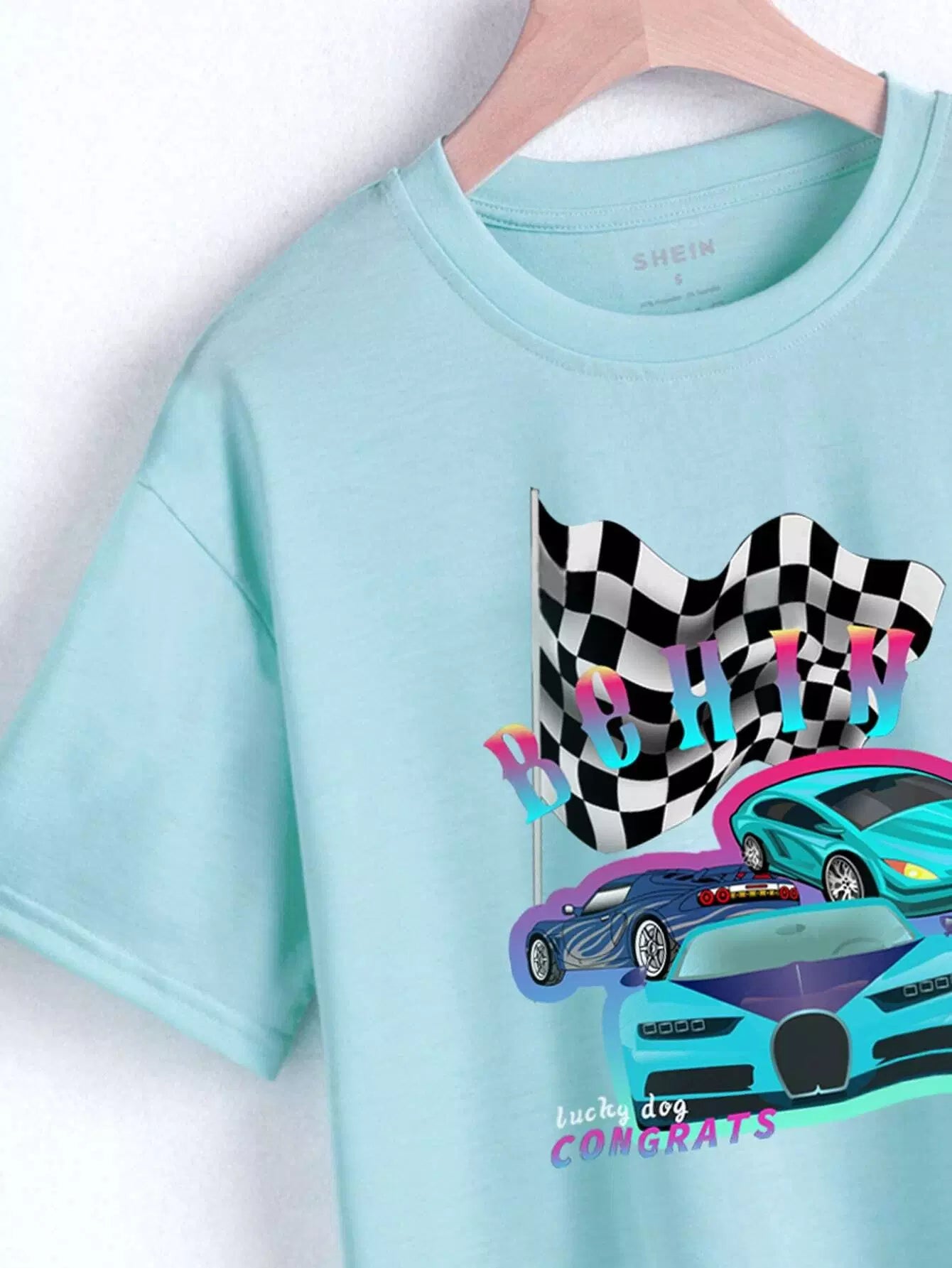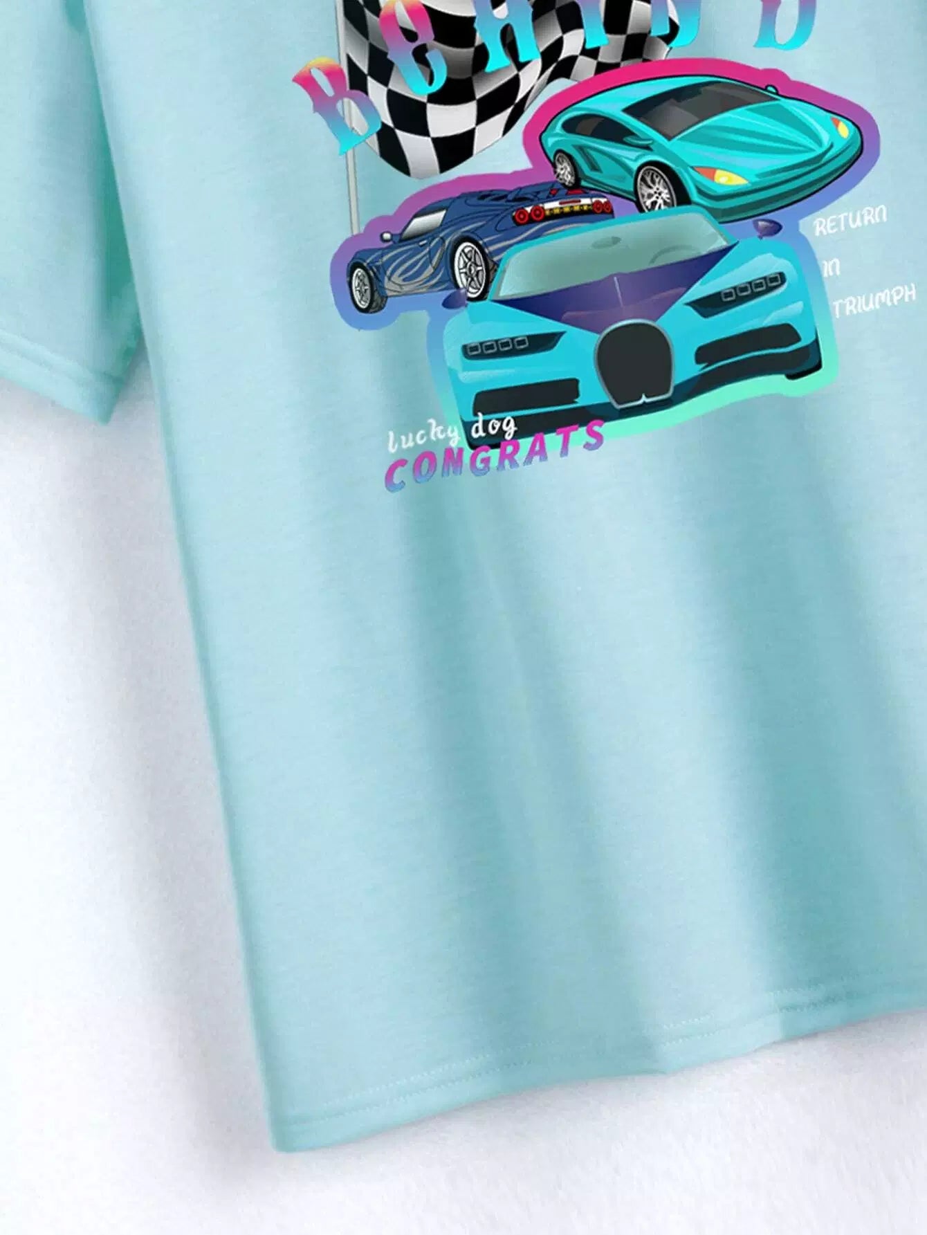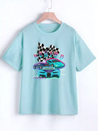 تي شيرت منسدل الكتف برسمة سيارة وحرف