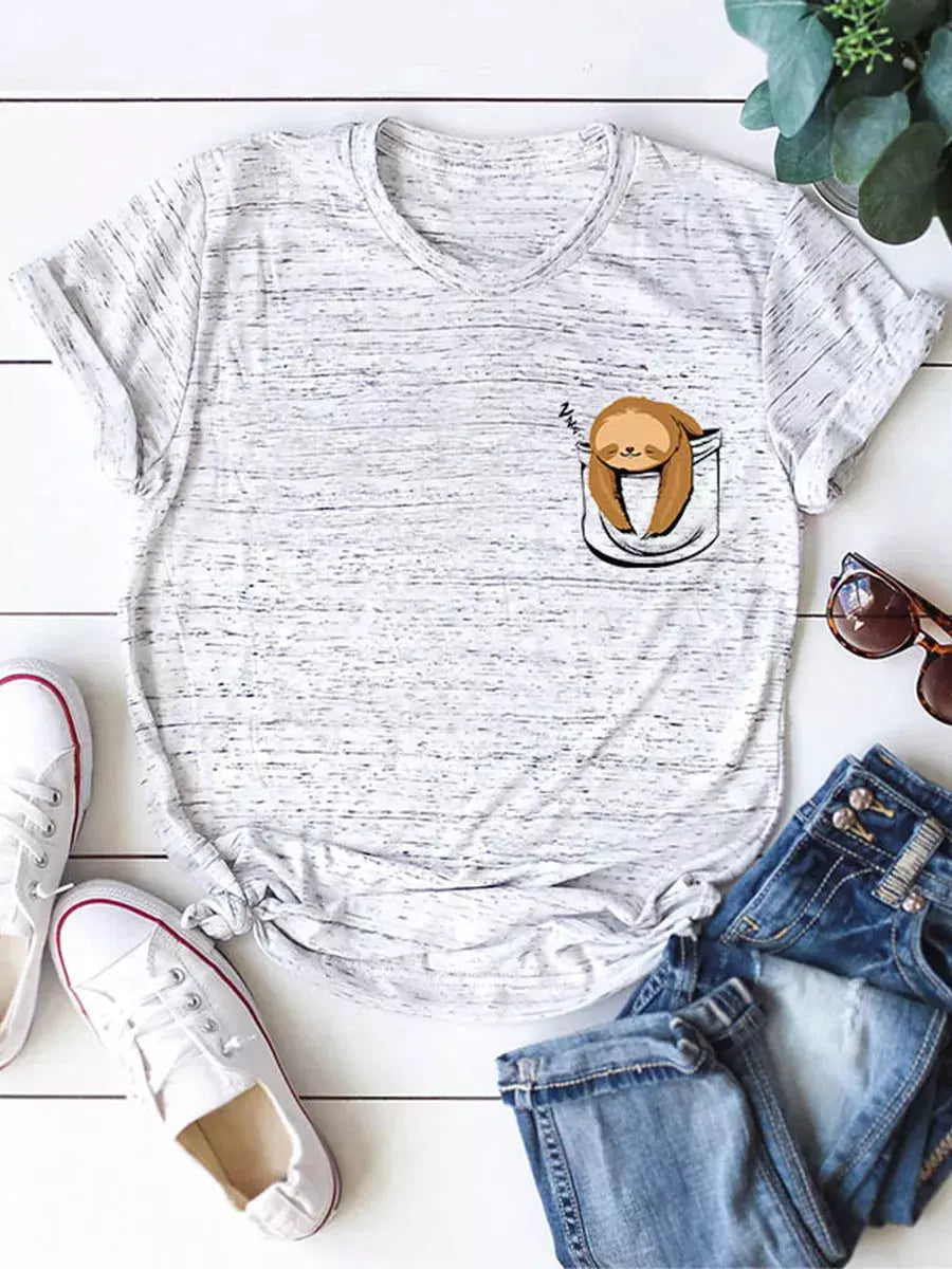للنساء - تي شيرت Marled بطباعة كارتونية