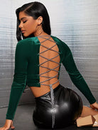 تي شيرت مخملي قصير بدون أكمام بأربطة منسدلة من الخلف