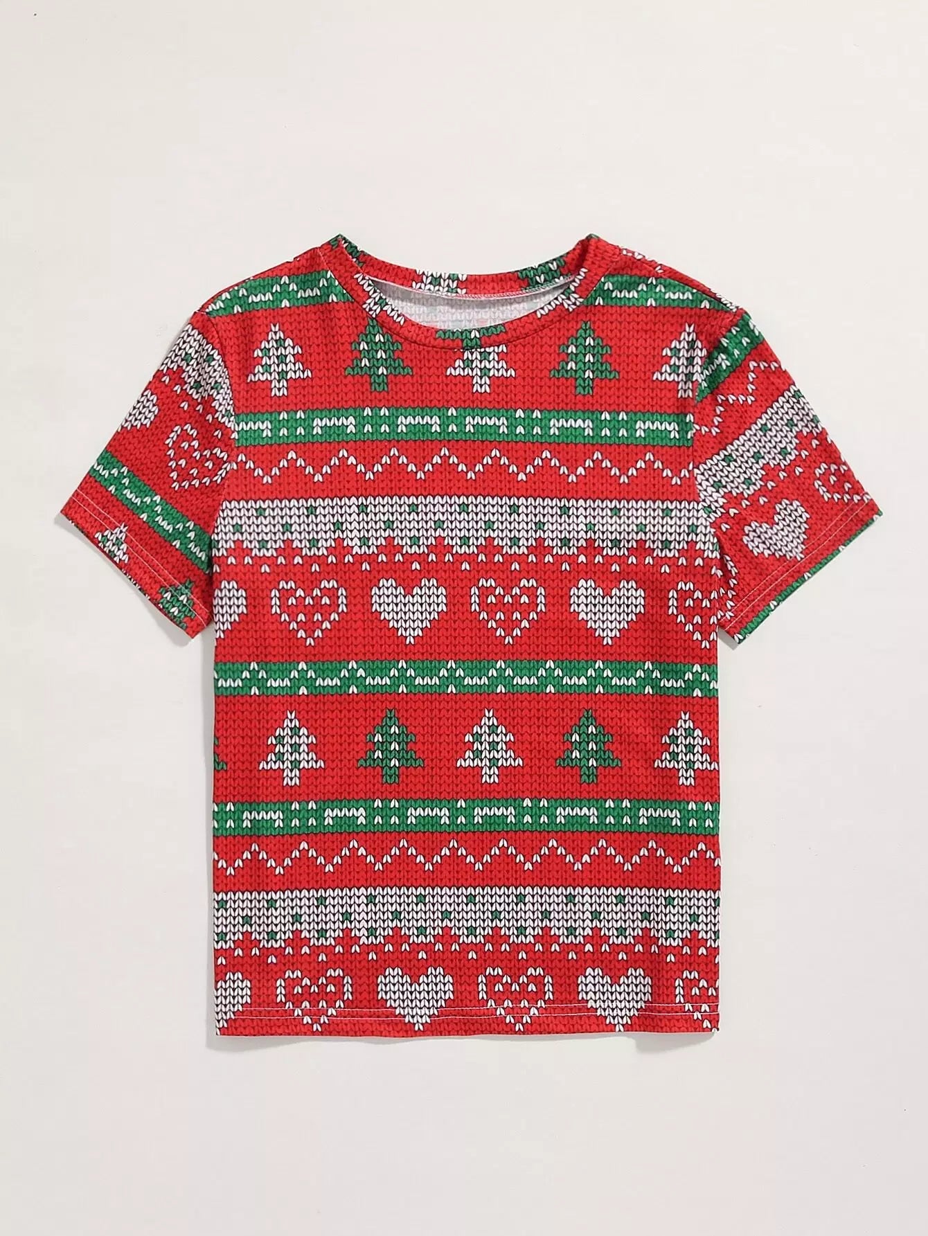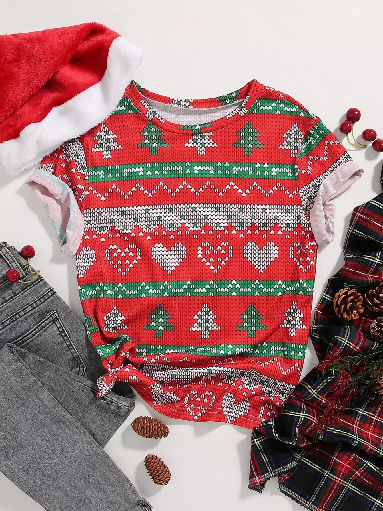 تي شيرت برقبة دائرية بنقشة عيد الميلاد