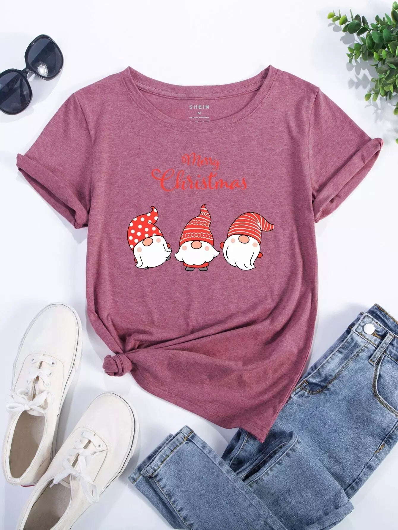 تي شيرت برقبة مستديرة مطبوع عليه طبعة عيد الميلاد