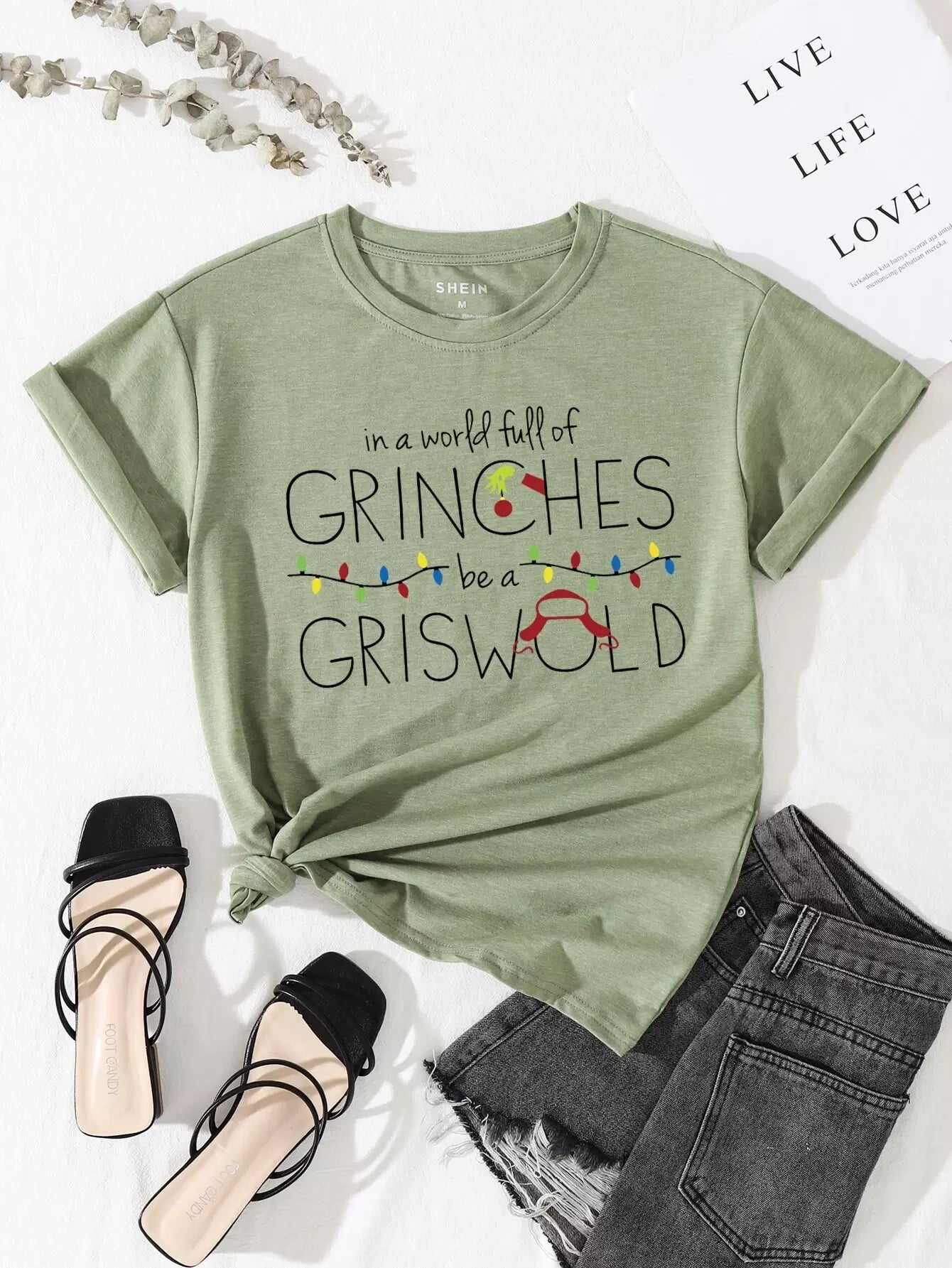 للنساء - تي شيرت برسومات عيد الميلاد والشعار