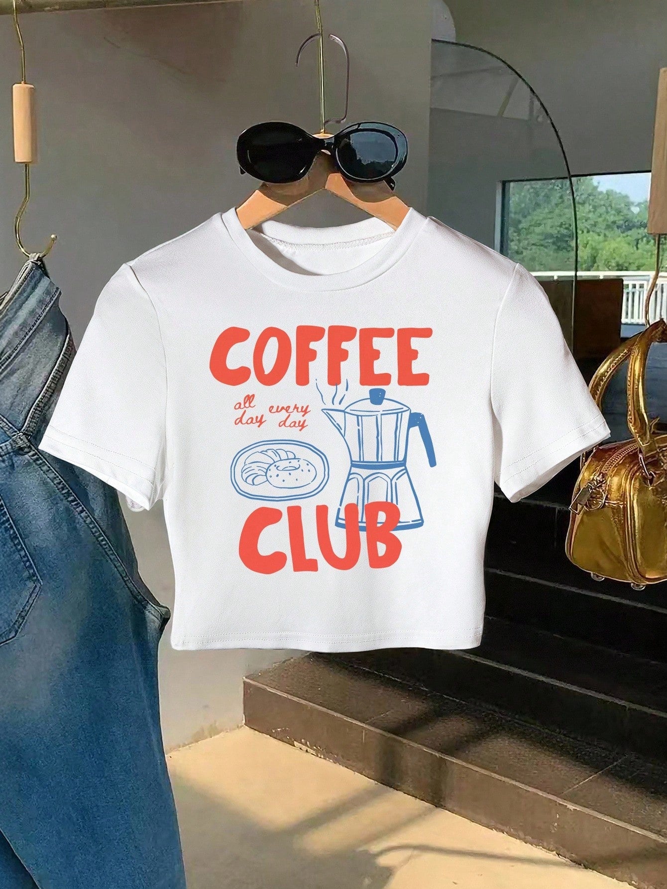 Coffee Lover Coffee Club Foodie Aesthetic Crop Slim Fit Short Sleeve Women T-Shirt