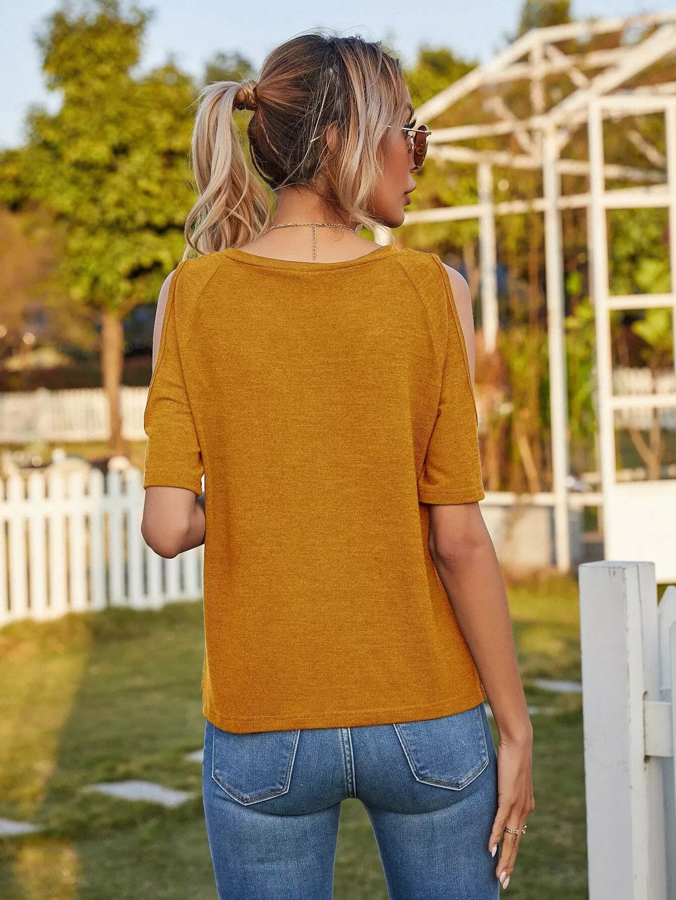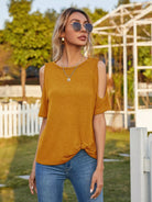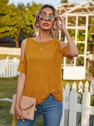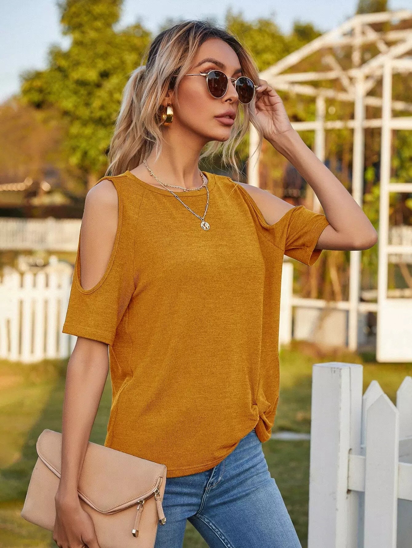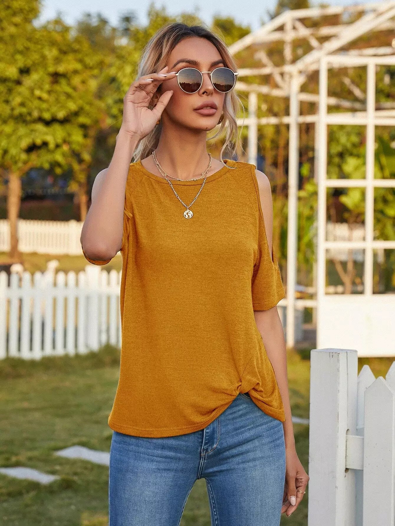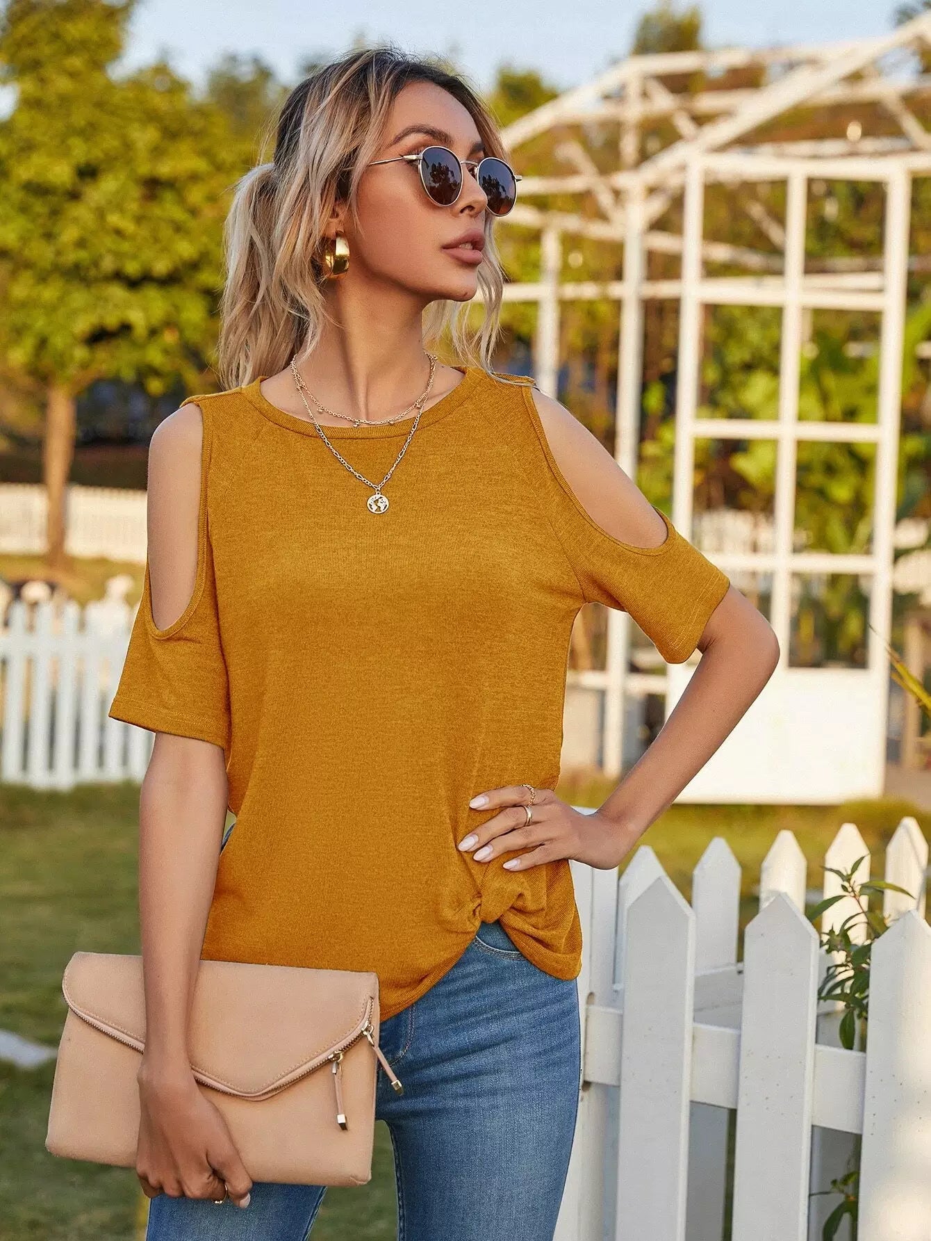 تي شيرت بقصّة ذات أكتاف باردة ملتوية