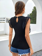 تي شيرت بلون مغاير من الدانتيل المزين بالزهور