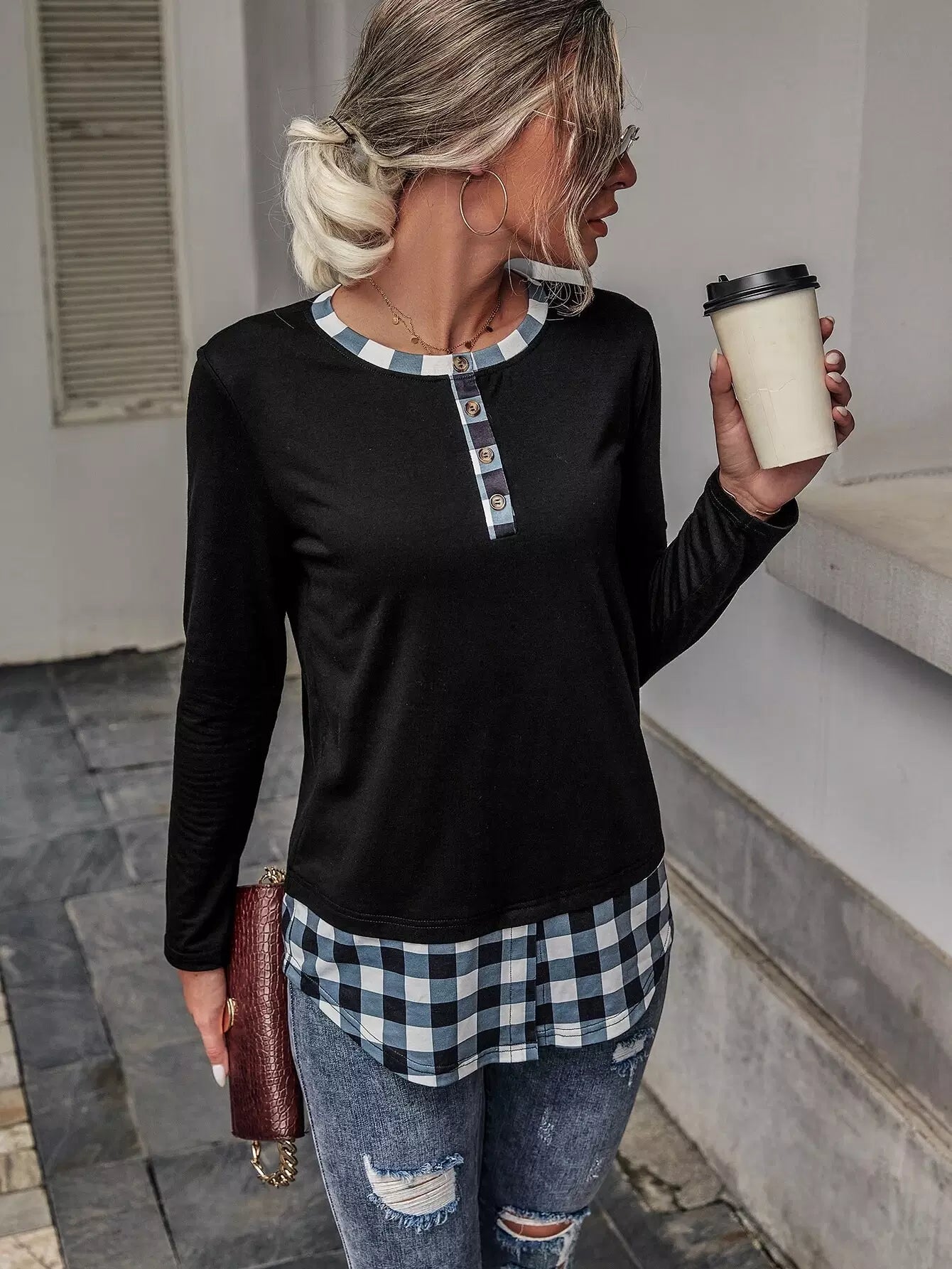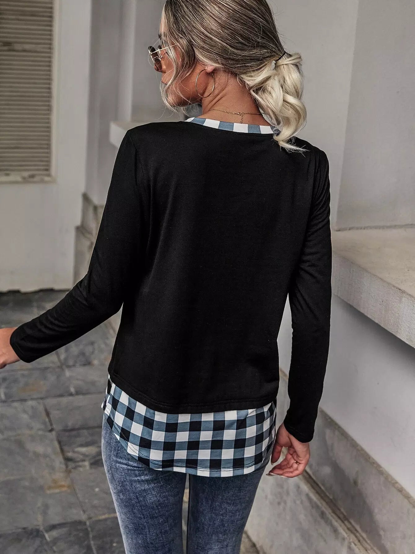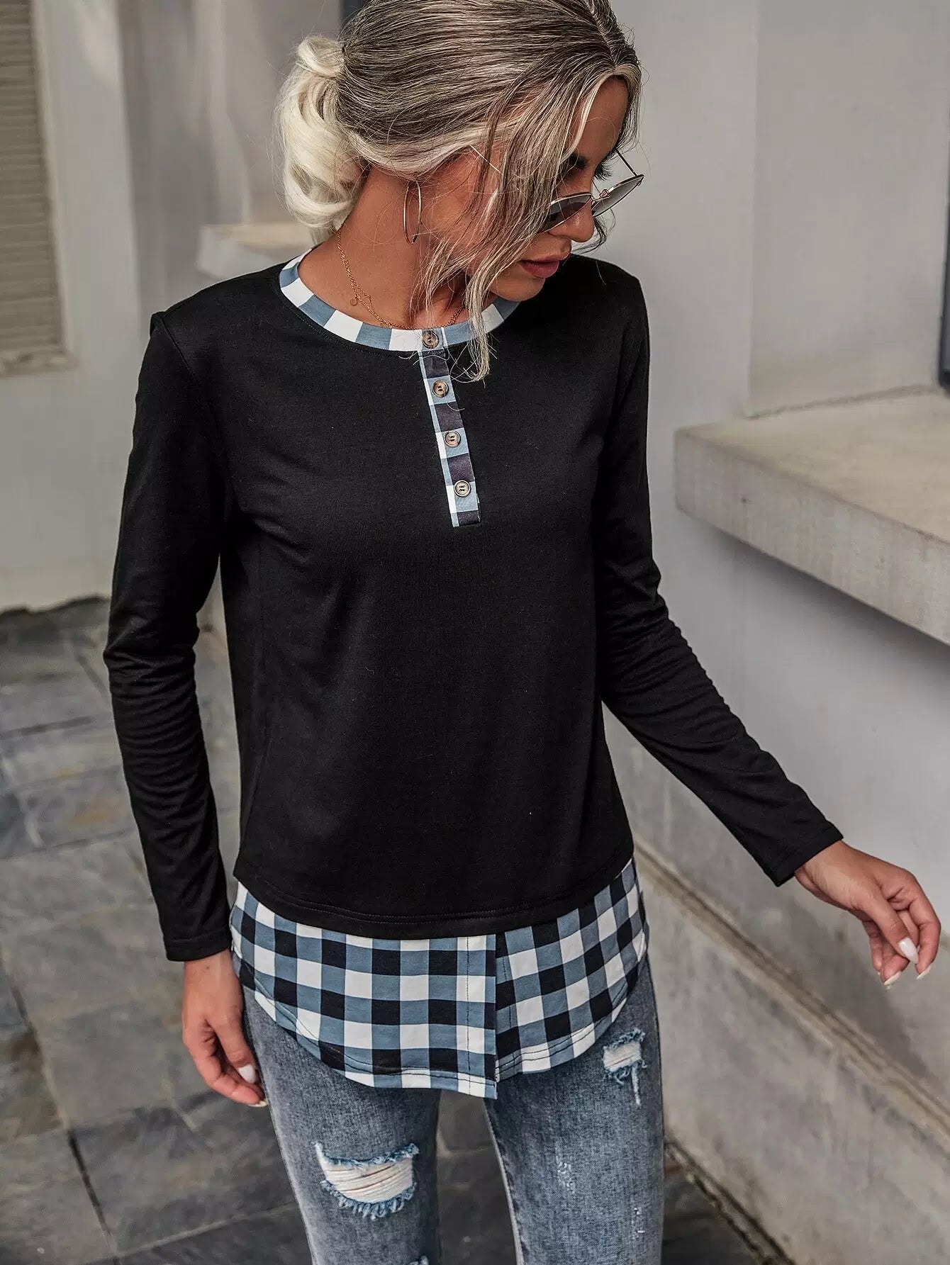 تي شيرت بلوحة مربعات متباينة الألوان