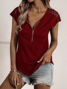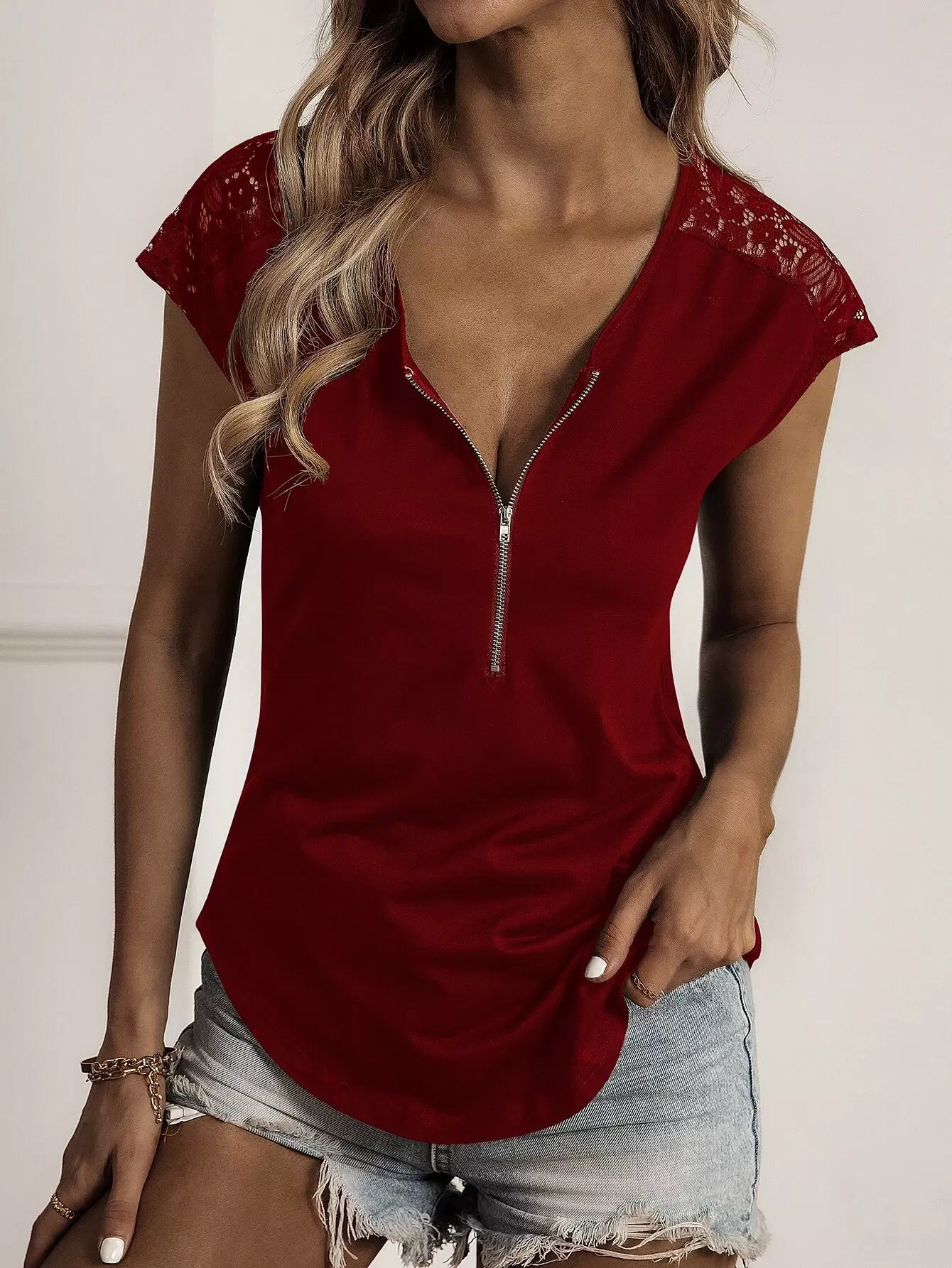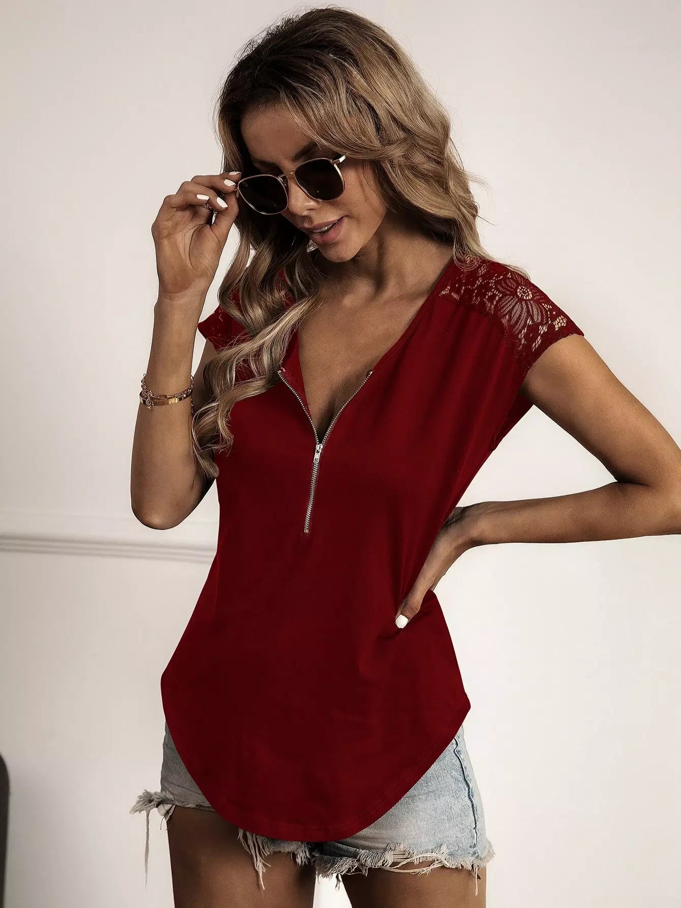 - تي شيرت نصف سحاب من الدانتيل المتباين