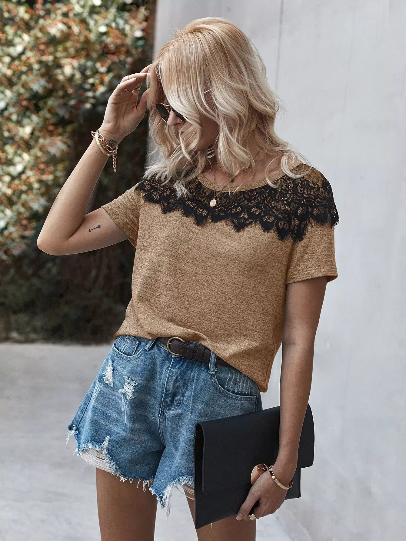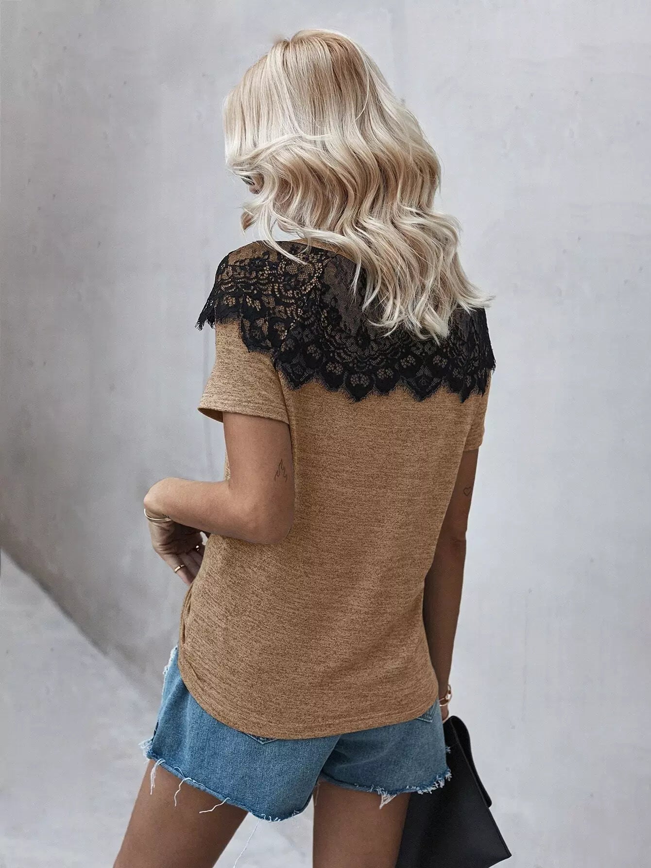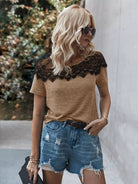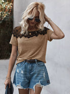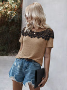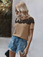 تي شيرت بأكمام قصيرة من الدانتيل المتباين