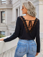 تي شيرت من الدانتيل بلون مغاير برباط من الخلف