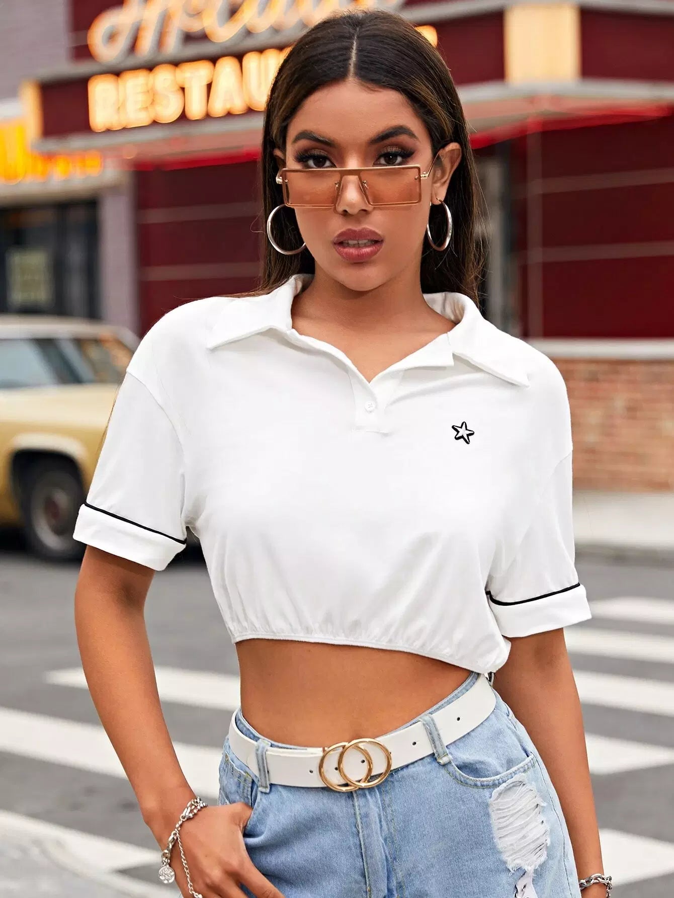 تي شيرت قصير مرقع بنقوش على شكل نجمة متباينة