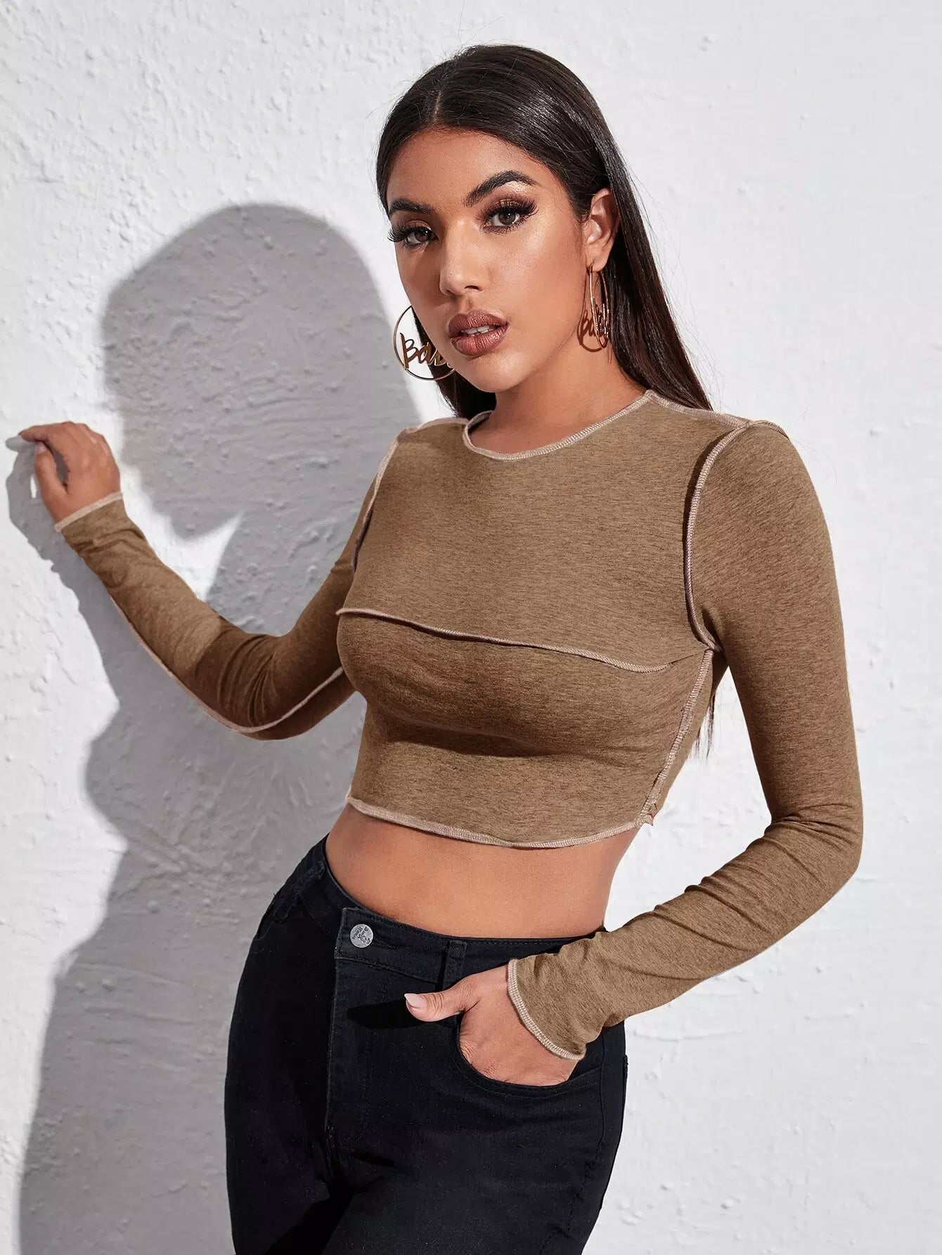 النساء - تي شيرت قصير بخياطة علوية متباينة