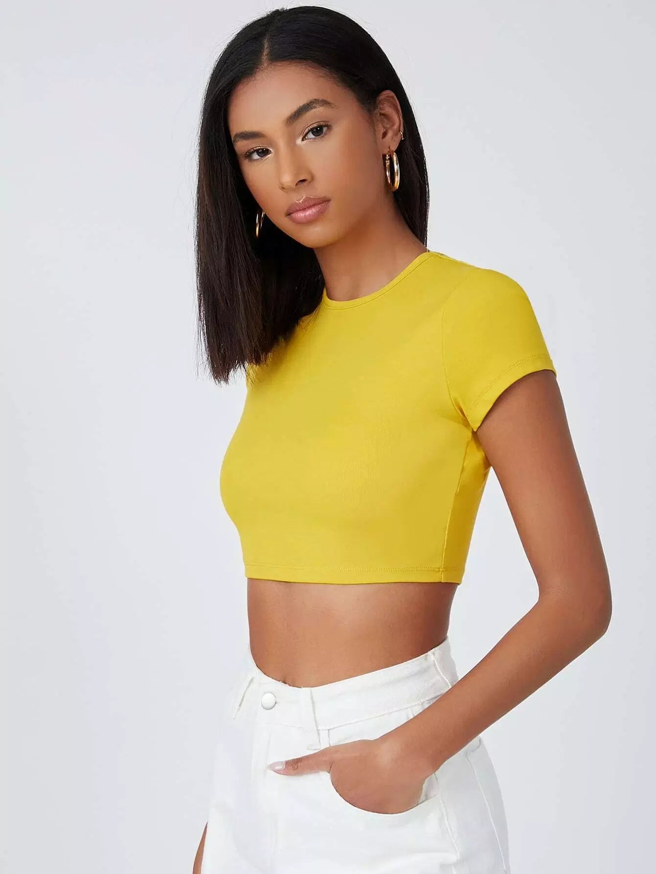 بلوزة قطنية قصيرة قصيرة ضيقة على شكل قطن