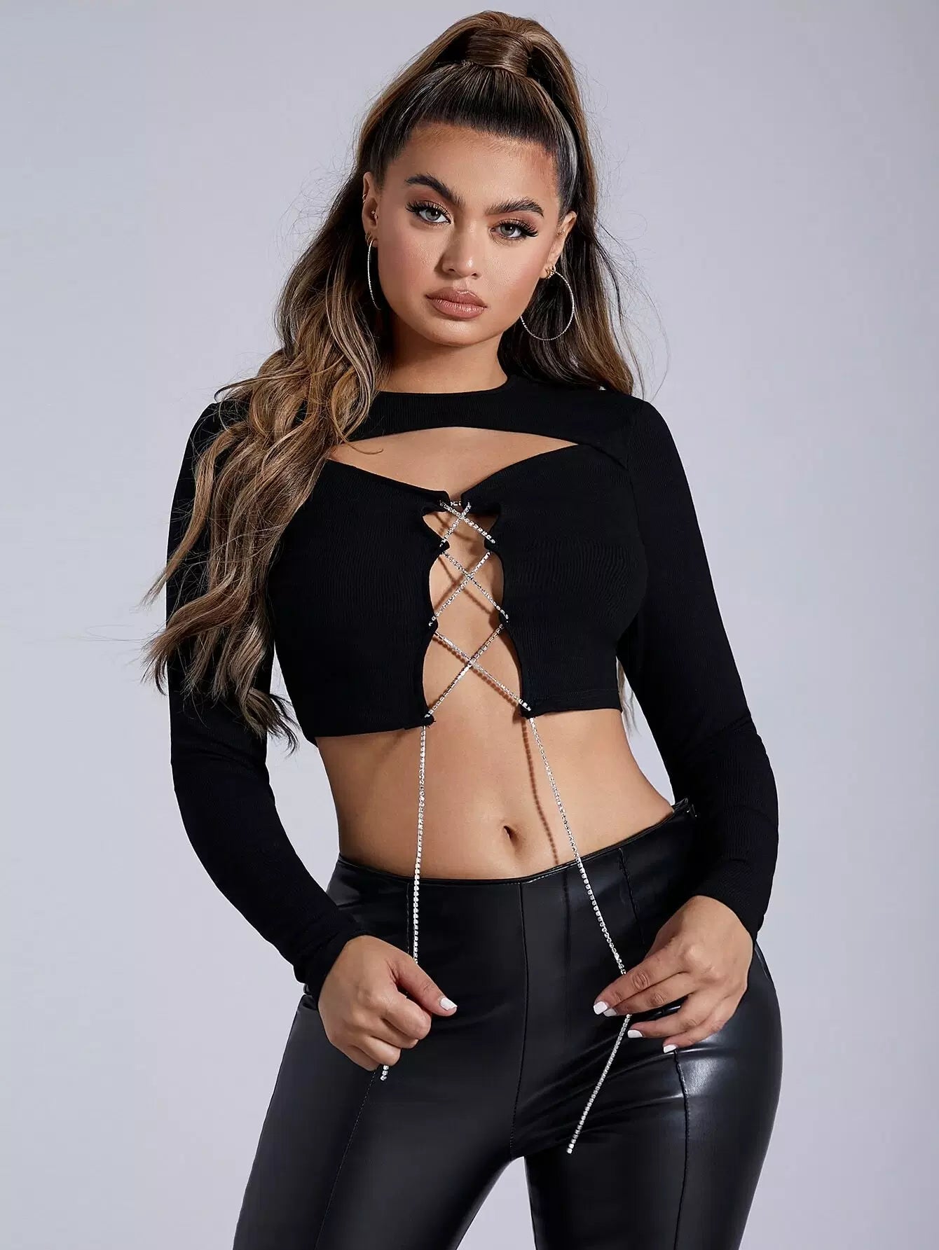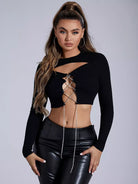 بلوزة قصيرة بفتحة أمامية وأربطة