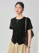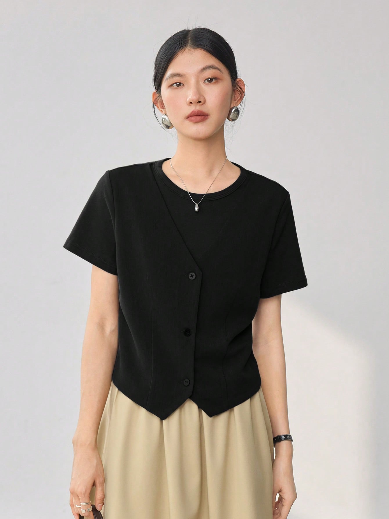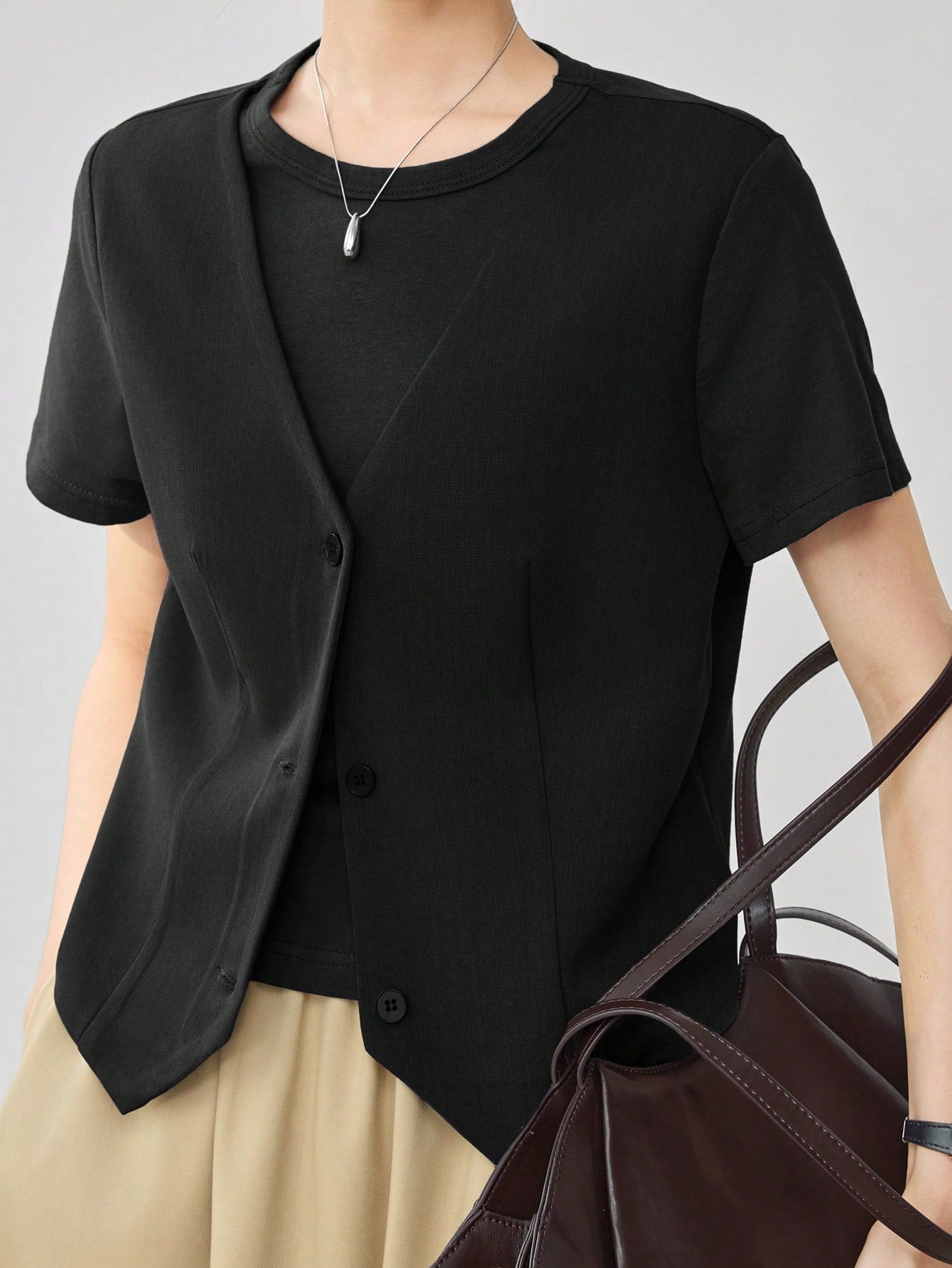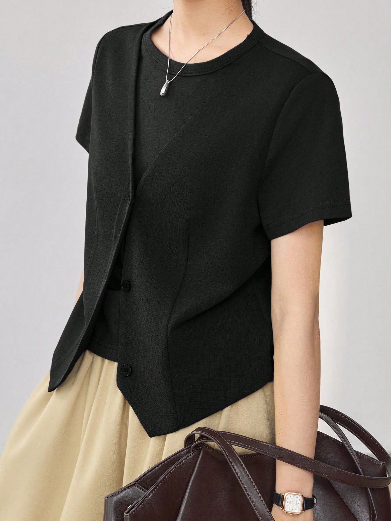 Dazy-Less Women's Summer Business Casual 2 In 1 Vest Splice Short Sleeve T-Shirt,Teacher Outfits