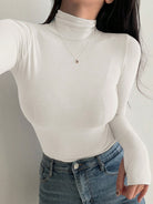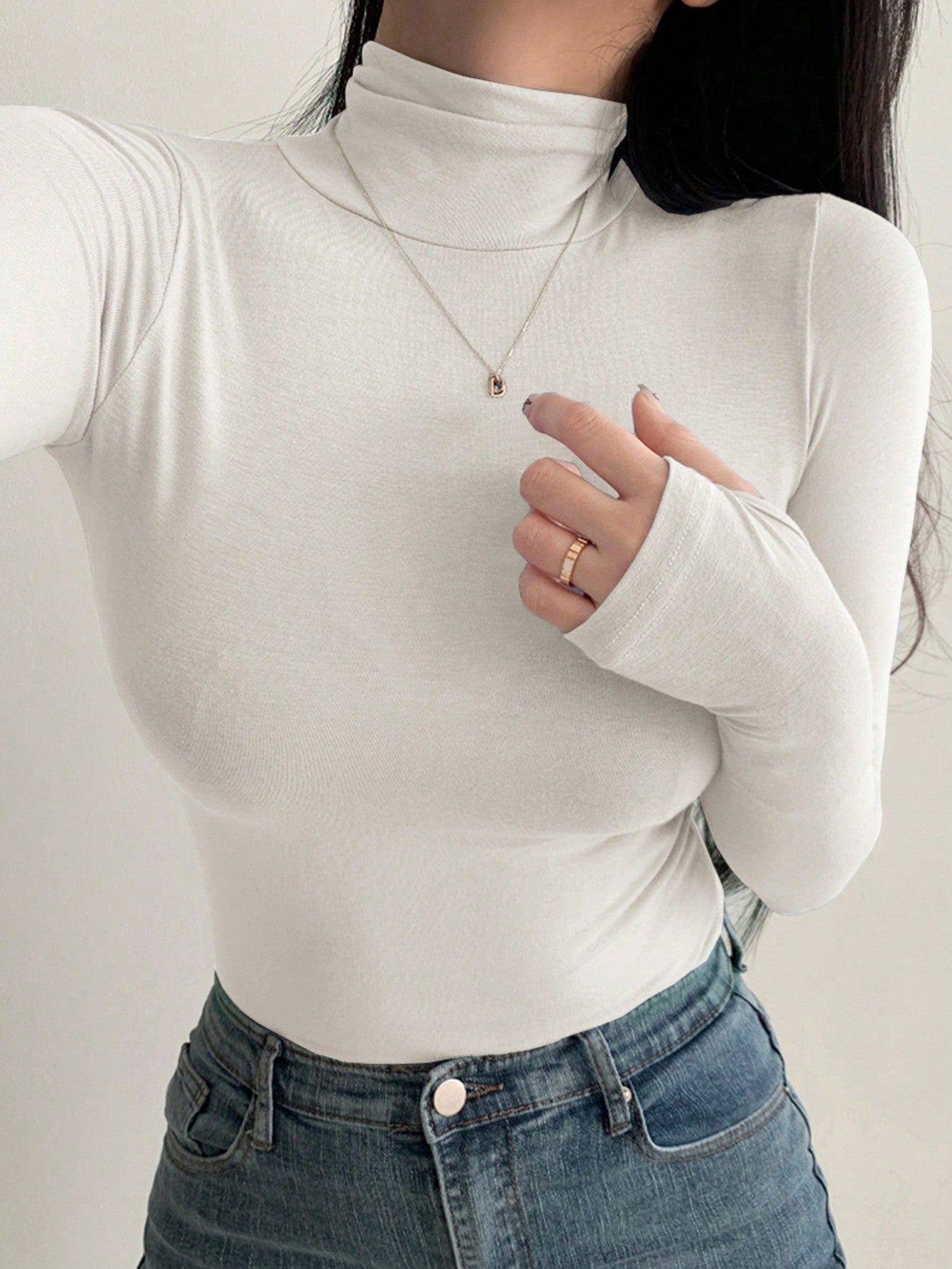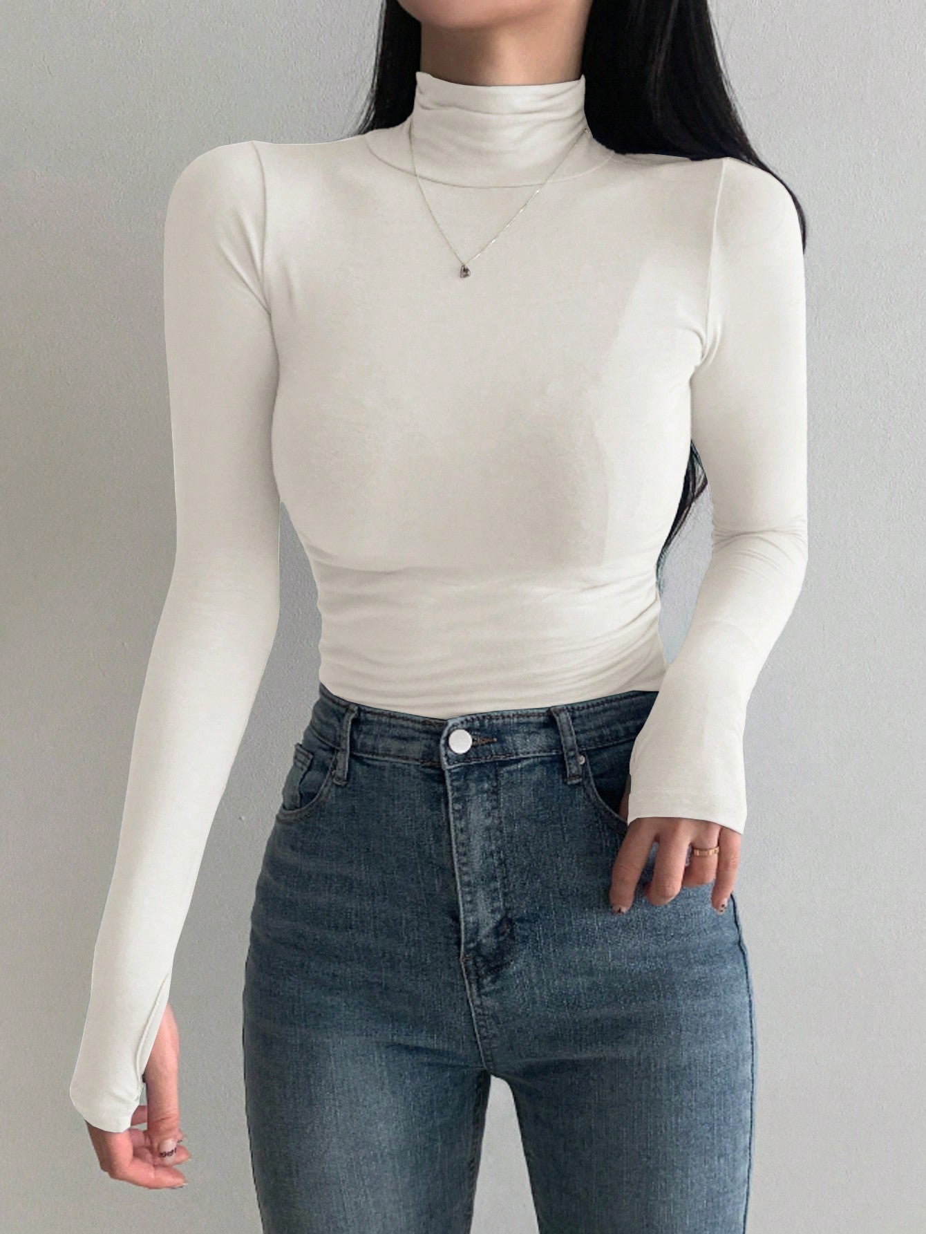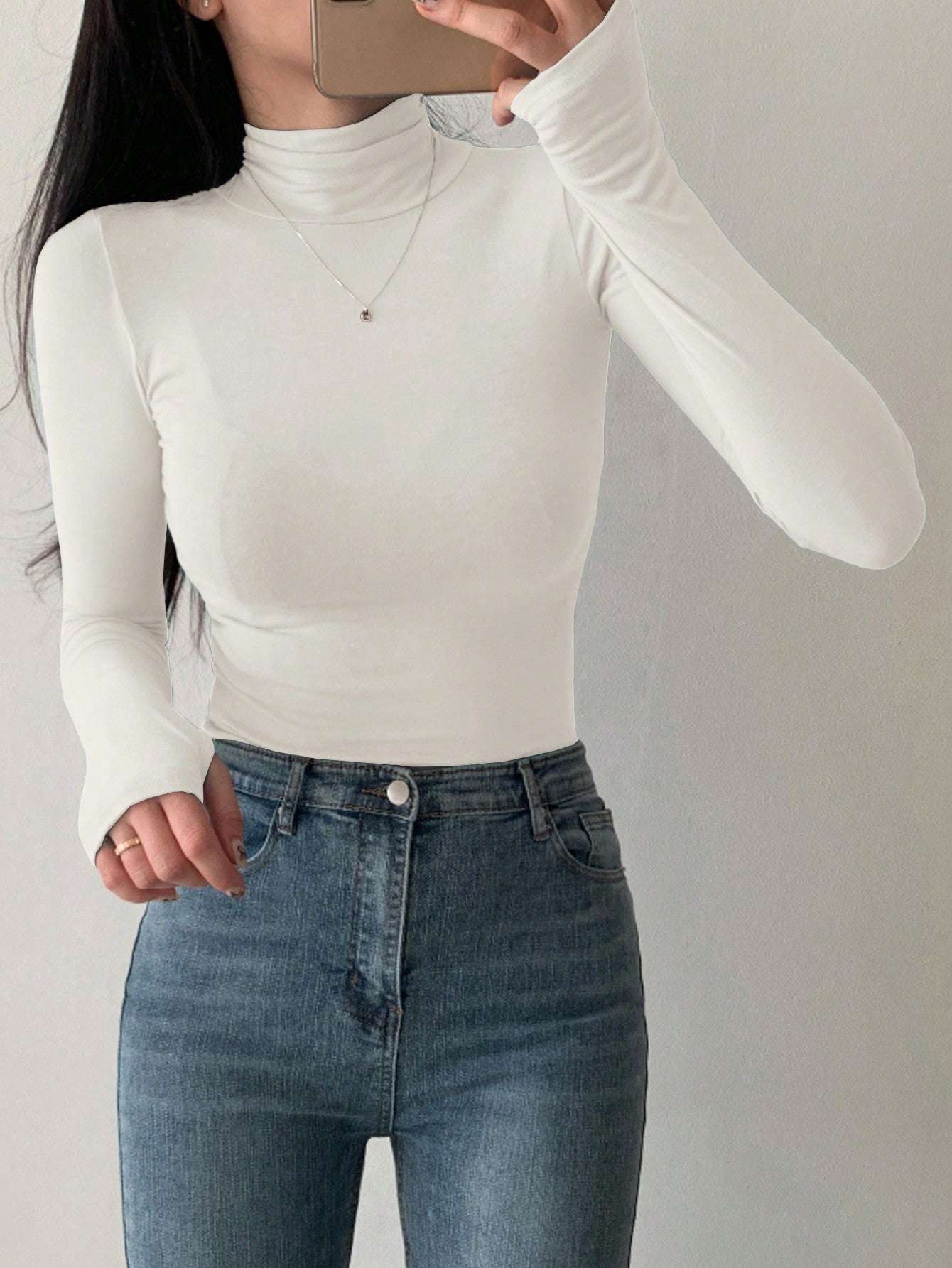 women DAZY Women High Neck Long Sleeve Basic T-Shirt