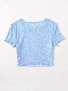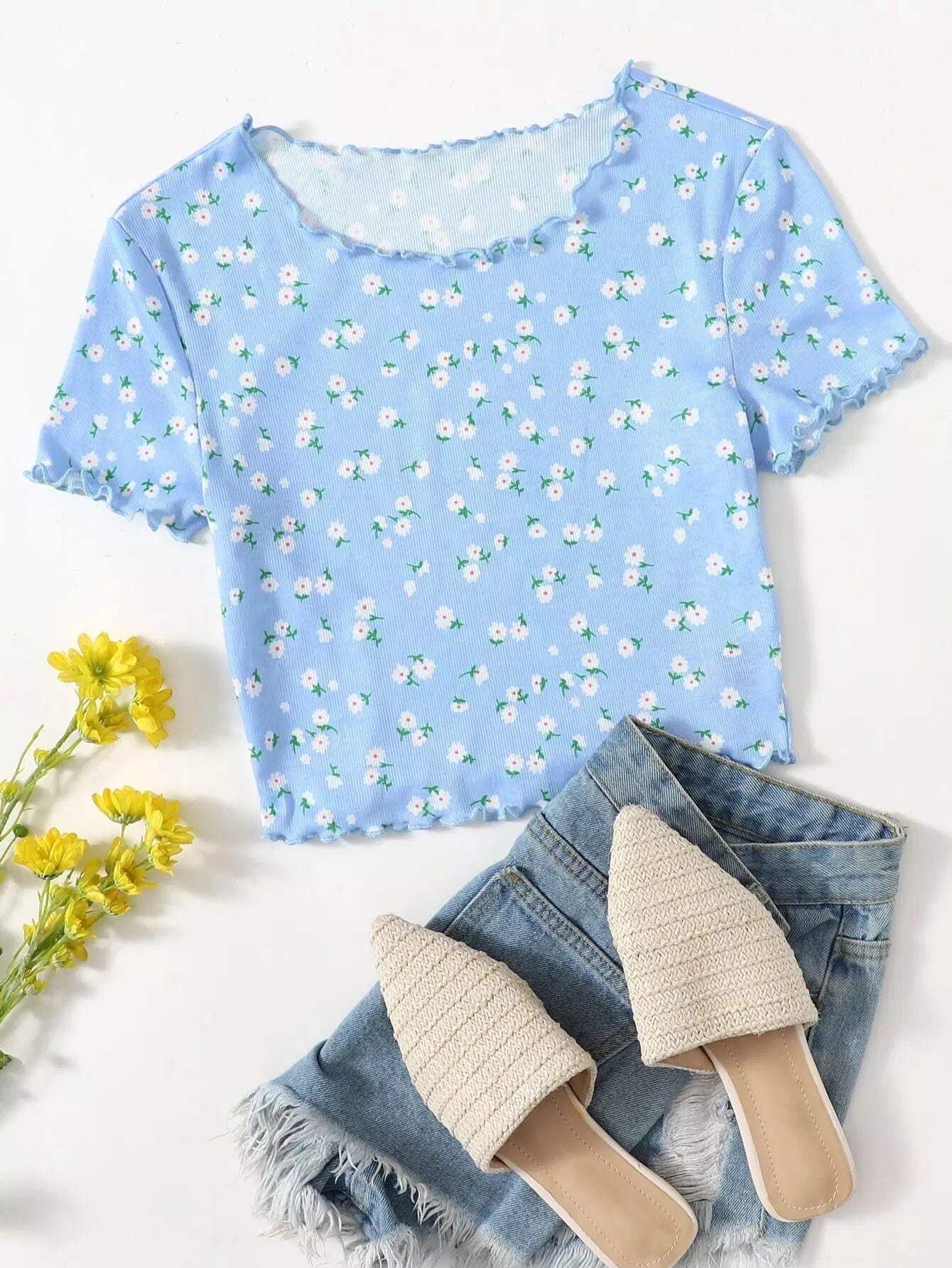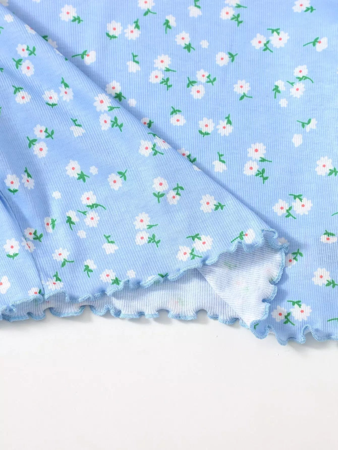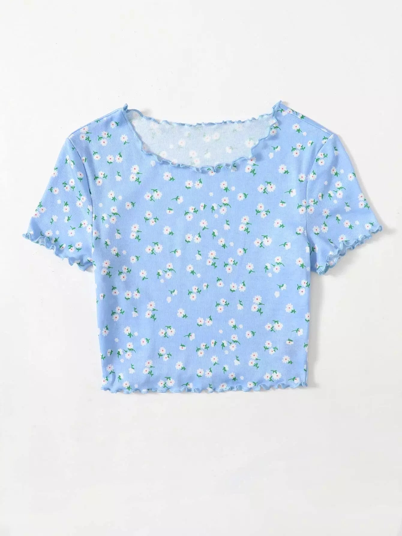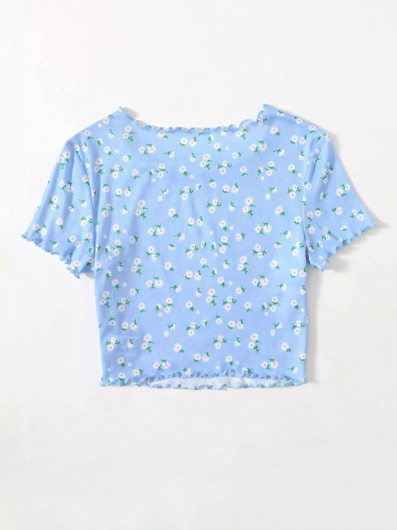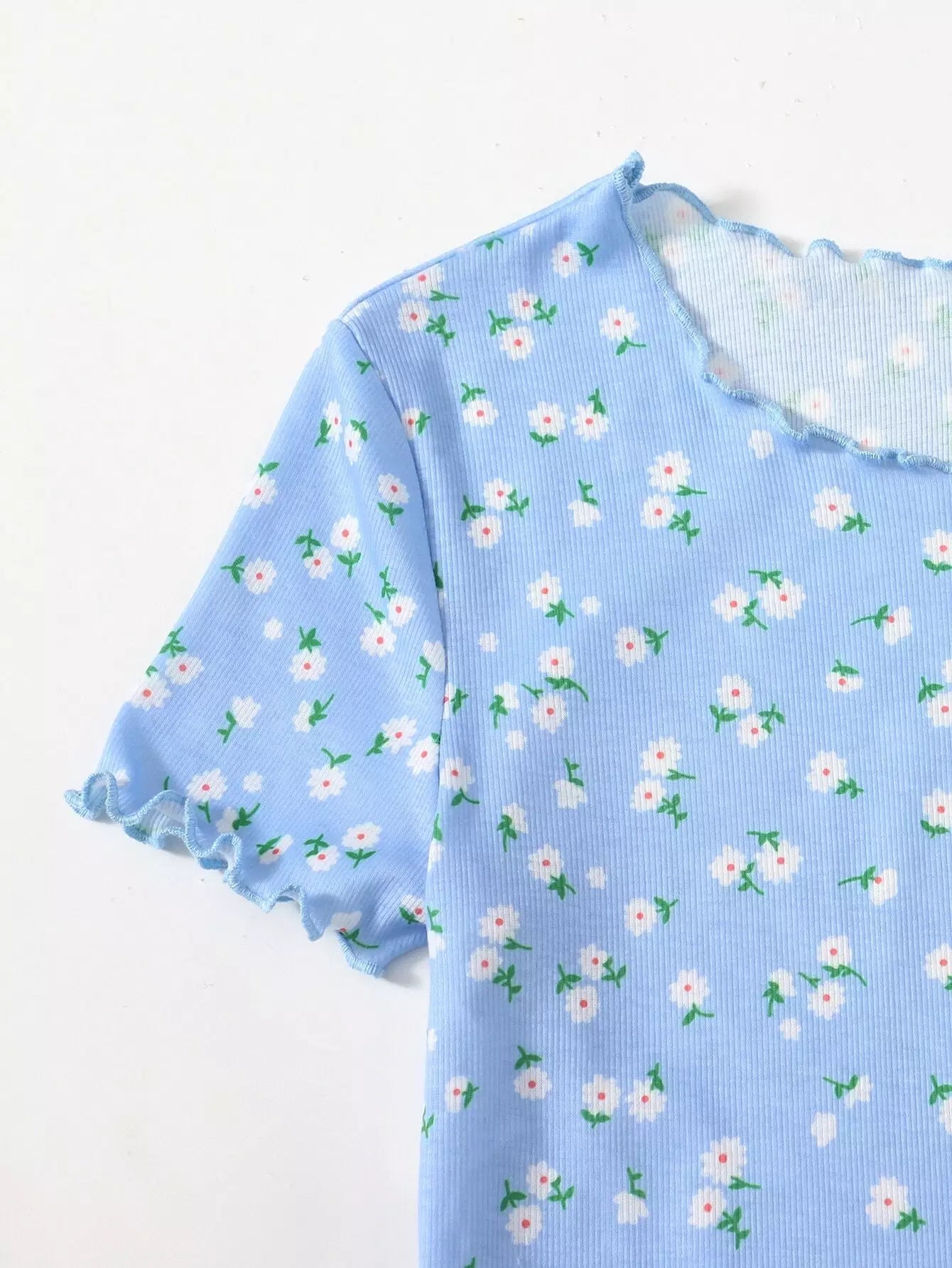 تي شيرت ديتسي مزين بنقشة زهور وخس محبوك على شكل ضلع