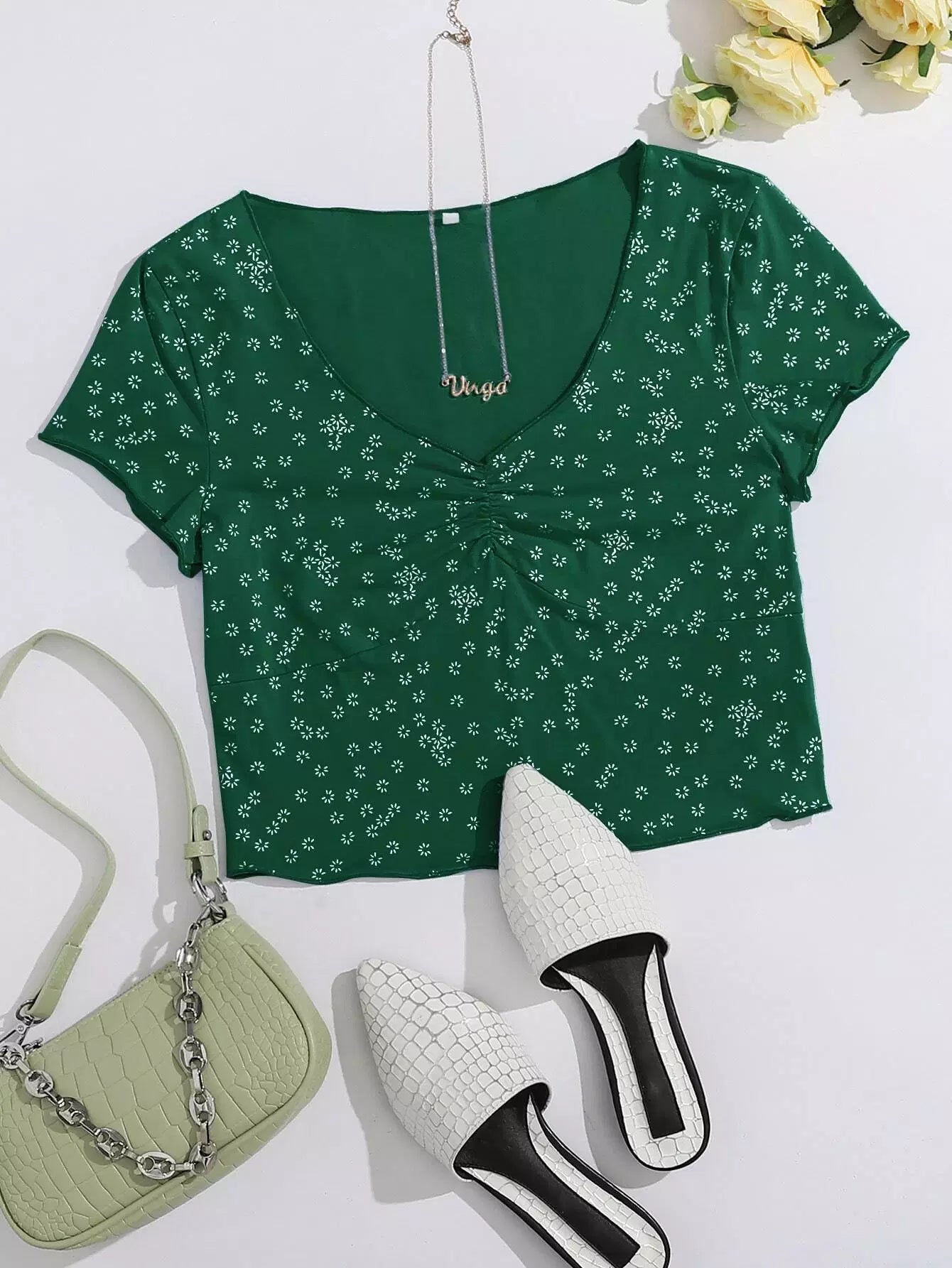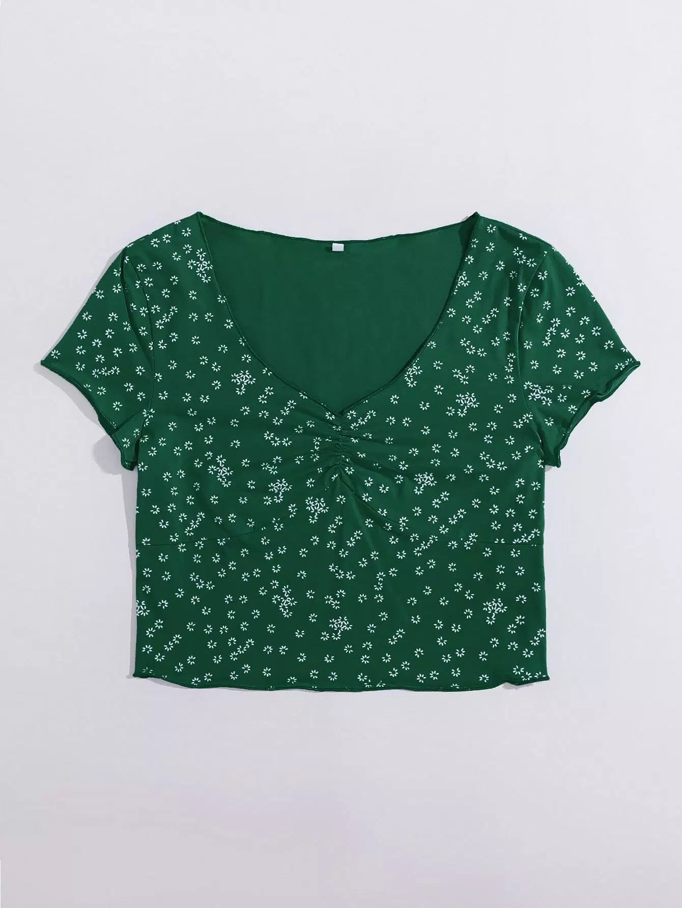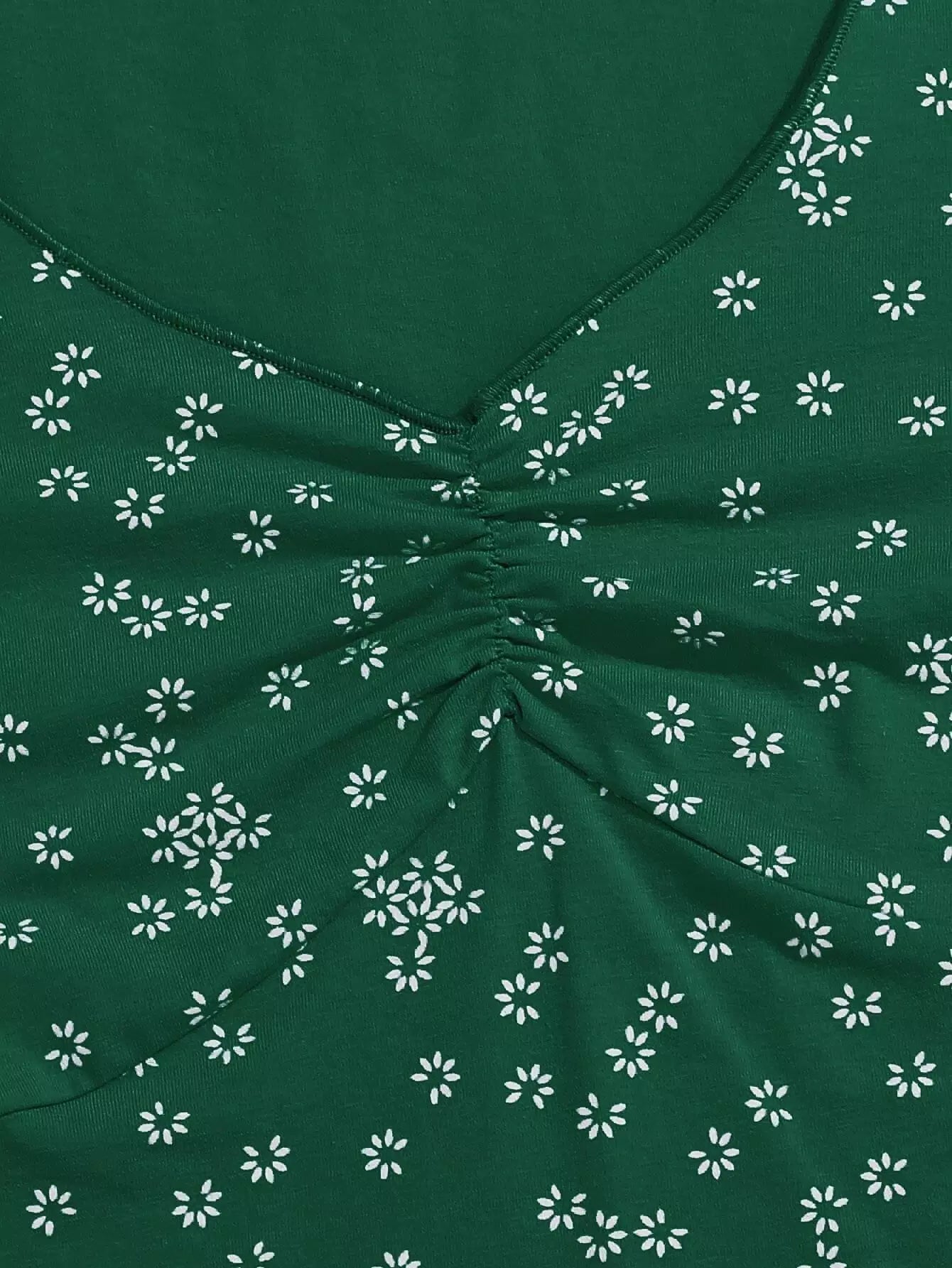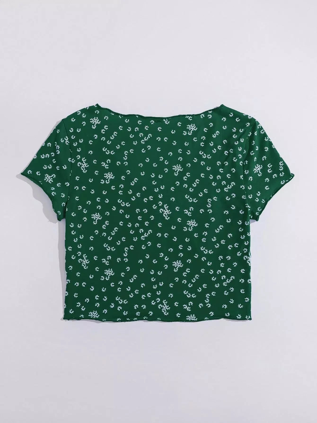 تي شيرت ديتسي مزين بنقشة زهور مكشكشة من الأمام