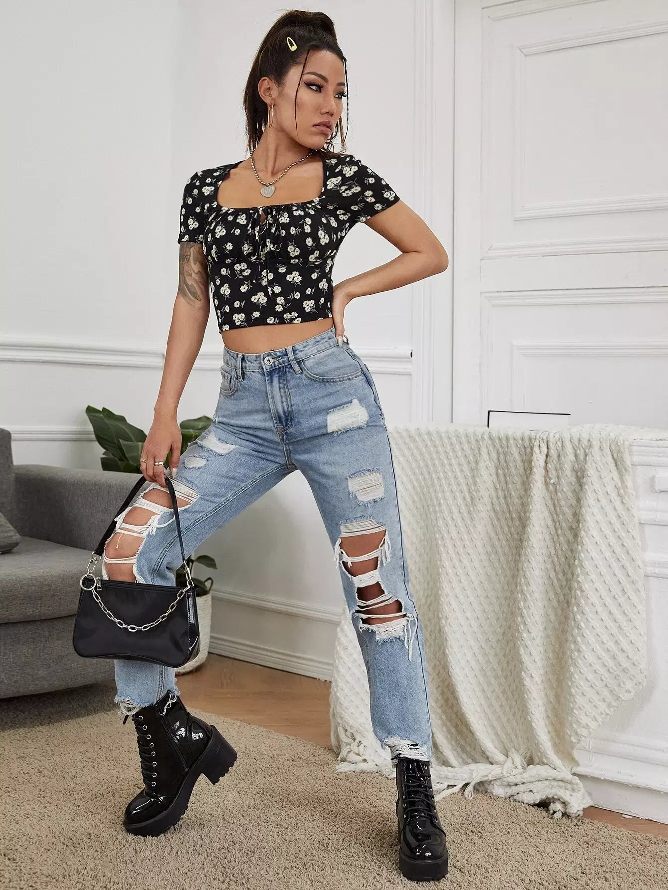 توب قصير مزين برباط أمامي مزين برباط أمامي مزين برباط أمامي