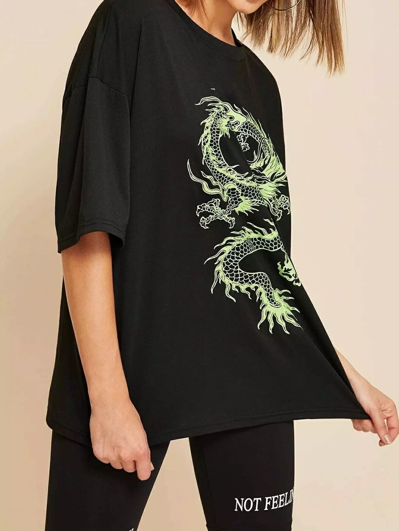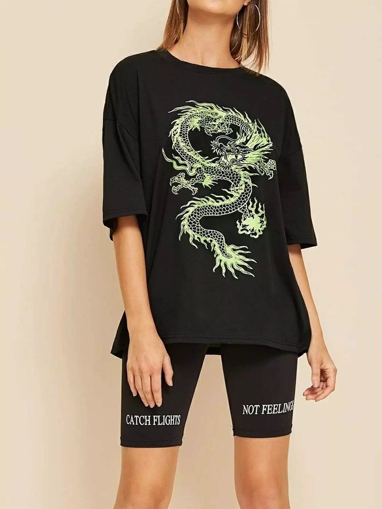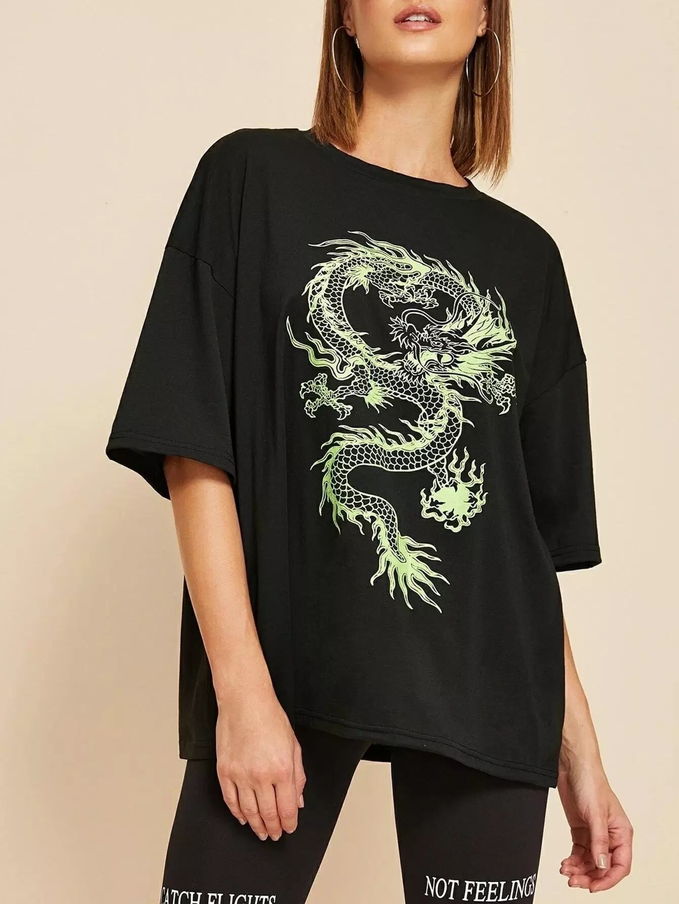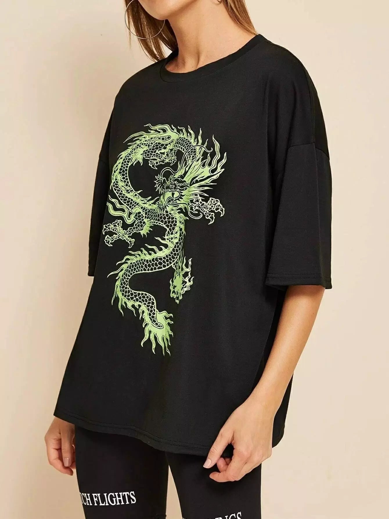 للنساء - تي شيرت كبير الحجم برسومات التنين