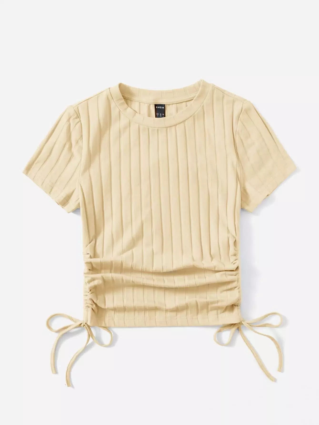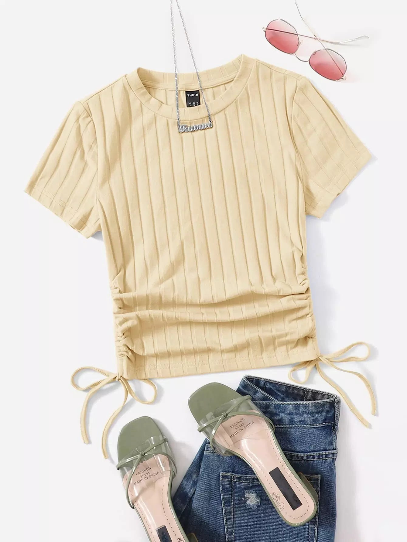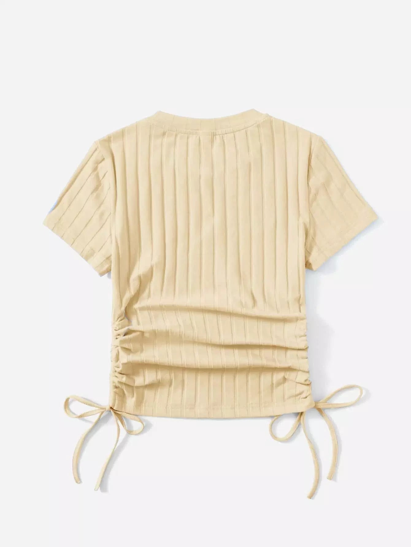 تي شيرت برباط رباط مضلع جانبي محبوك بأربطة