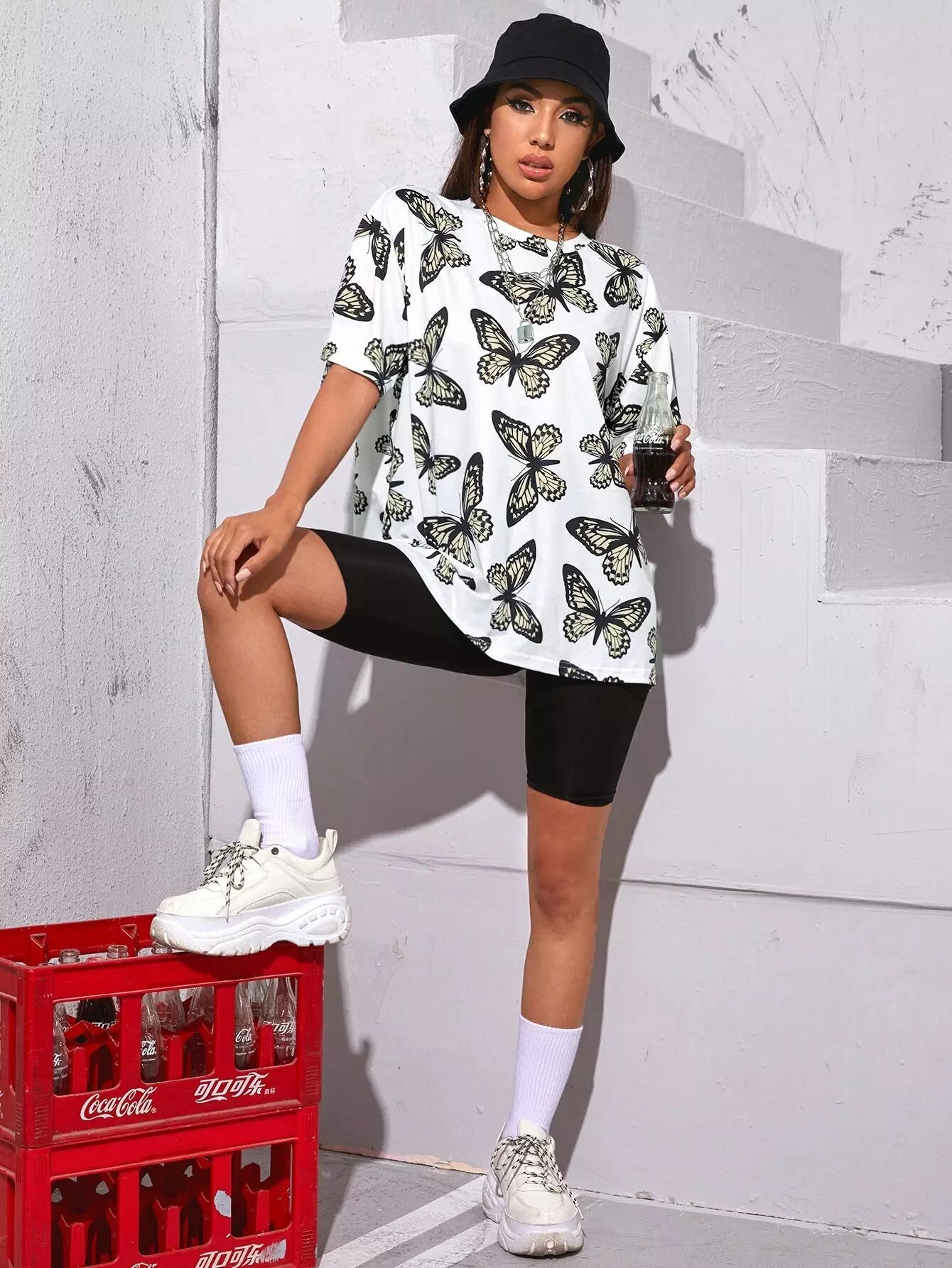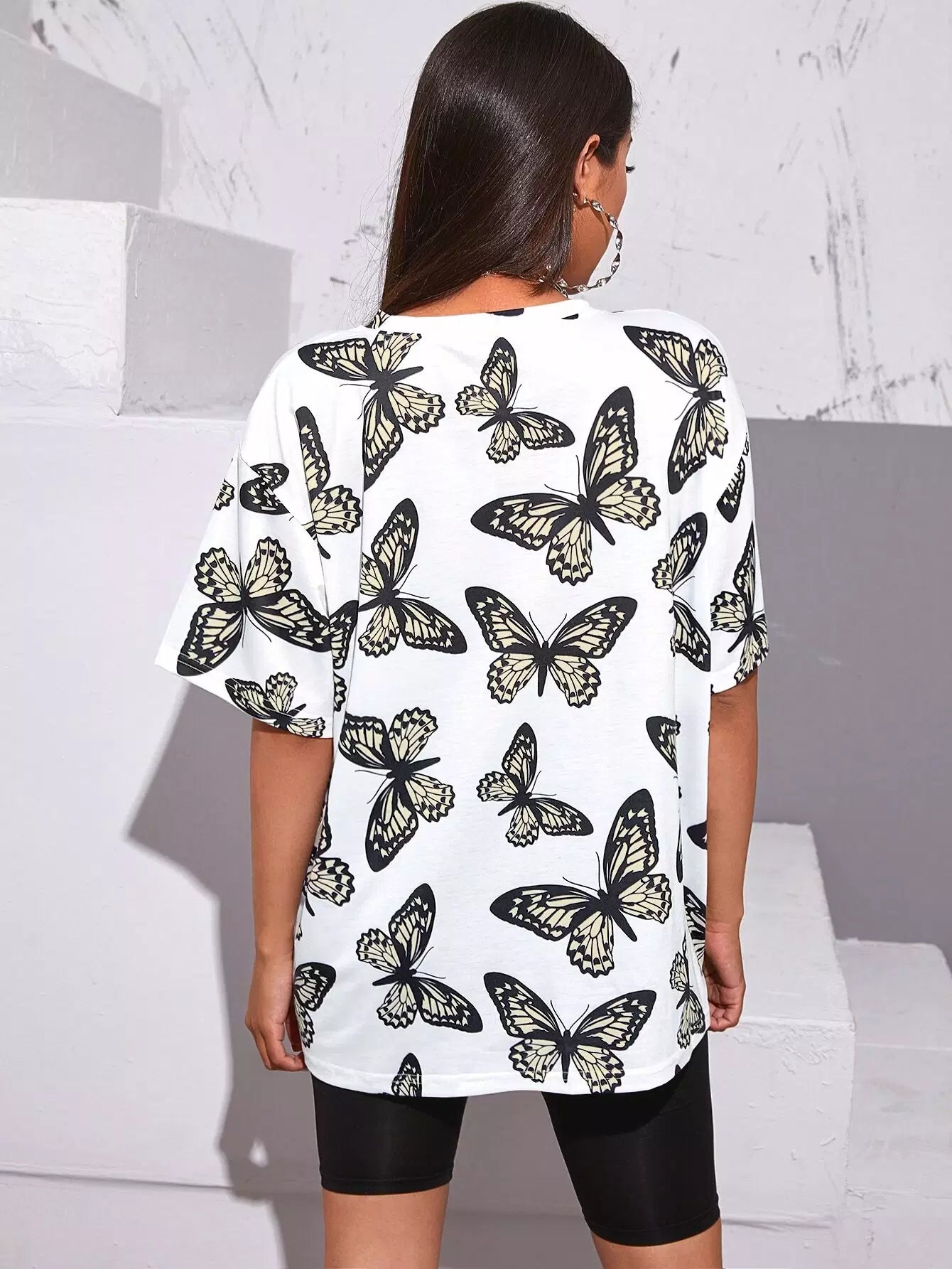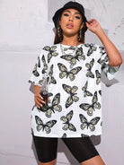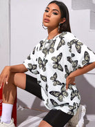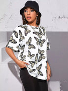 تي شيرت مطبوع عليه أكتاف منسدلة بطبعة فراشة