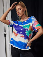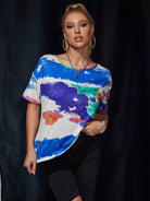 تي شيرت بقصّة كتف منسدلة بفتحة منسدلة بقصّة كتف بقصّة ملتوية من الخلف مصبوغ بربطة عنق
