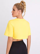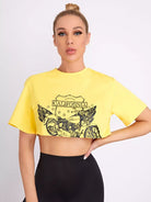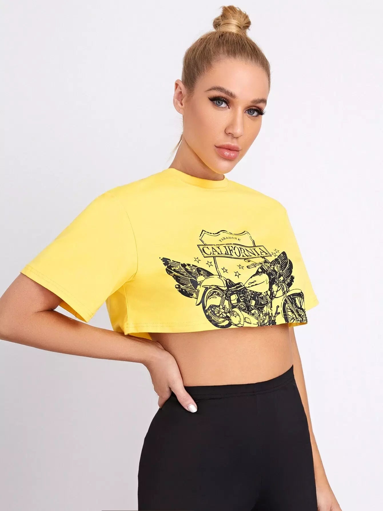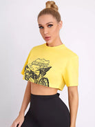 للنساء - تي شيرت قصير برسومات بأكتاف منسدلة