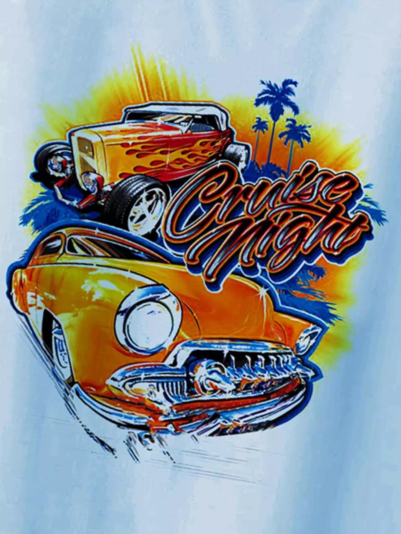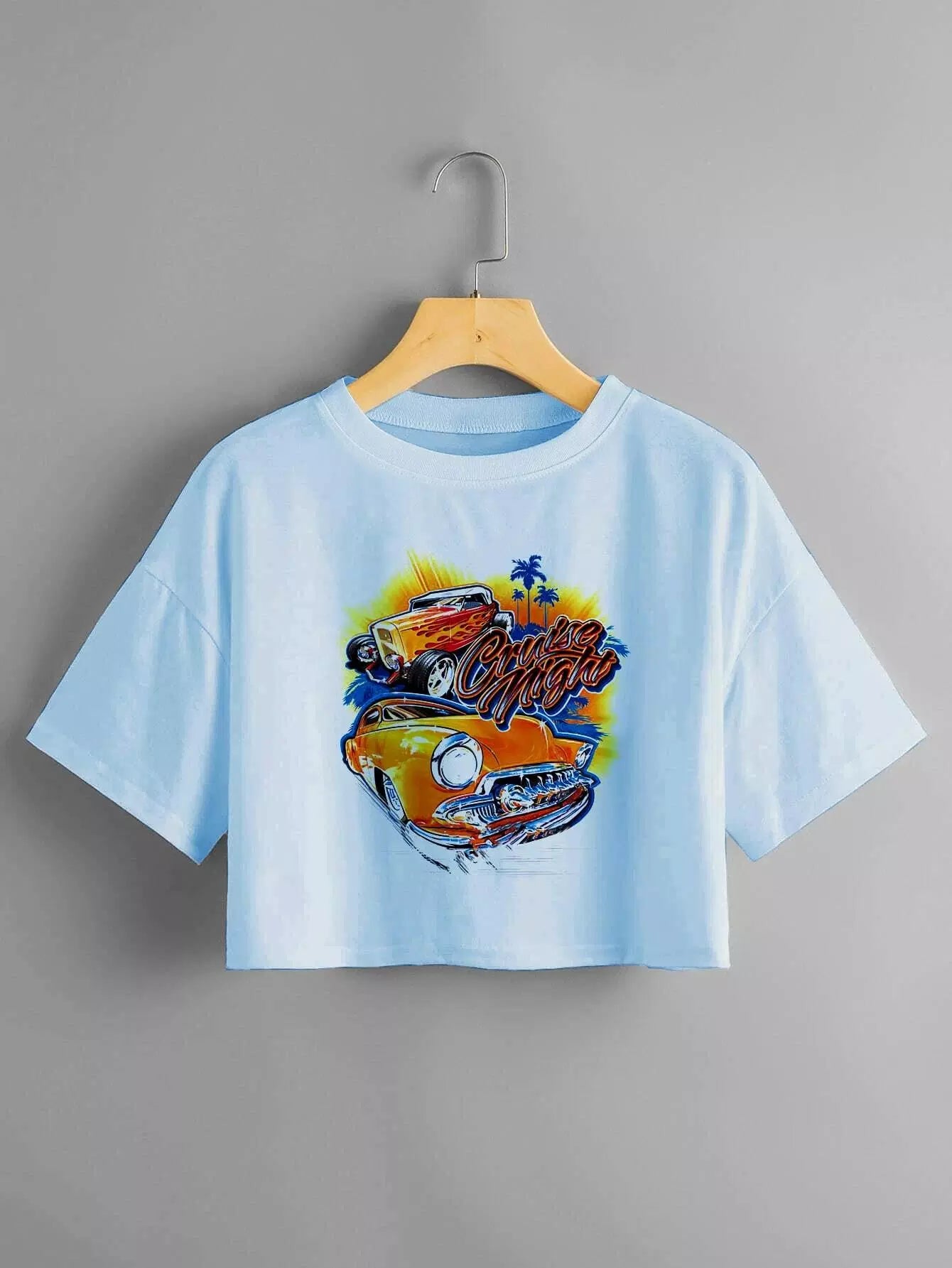 تي شيرت قصير منسدل الكتفين برسومات على الأكتاف منسدلة