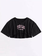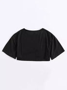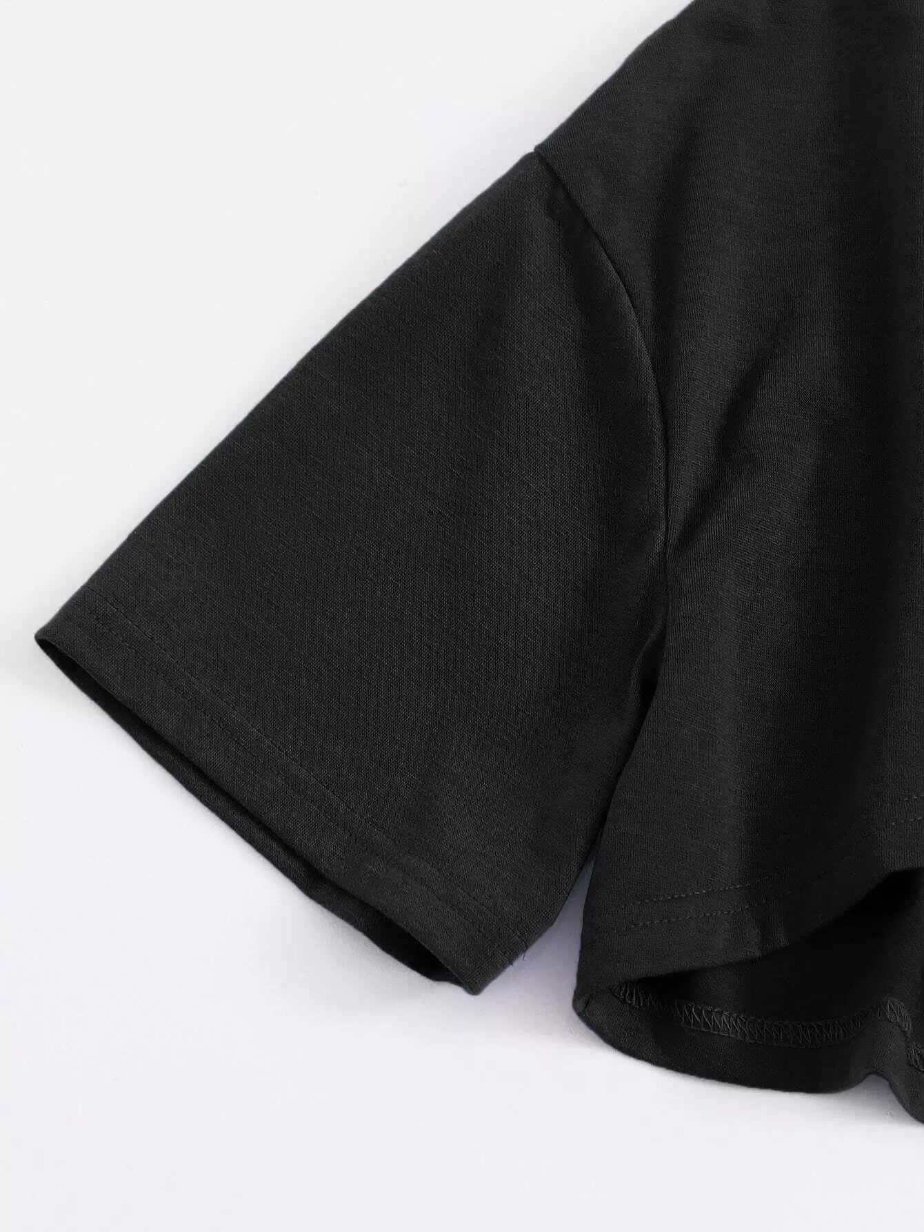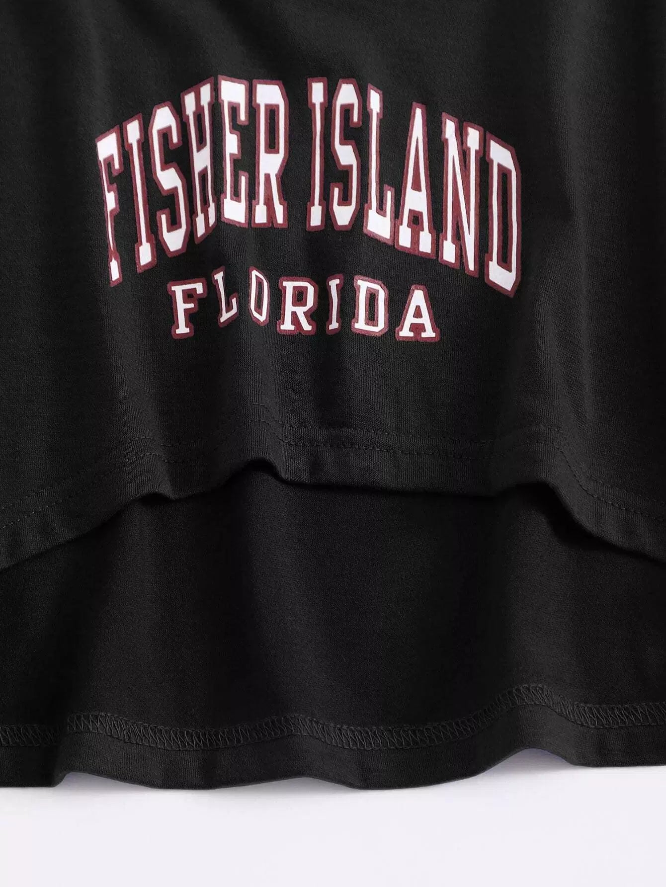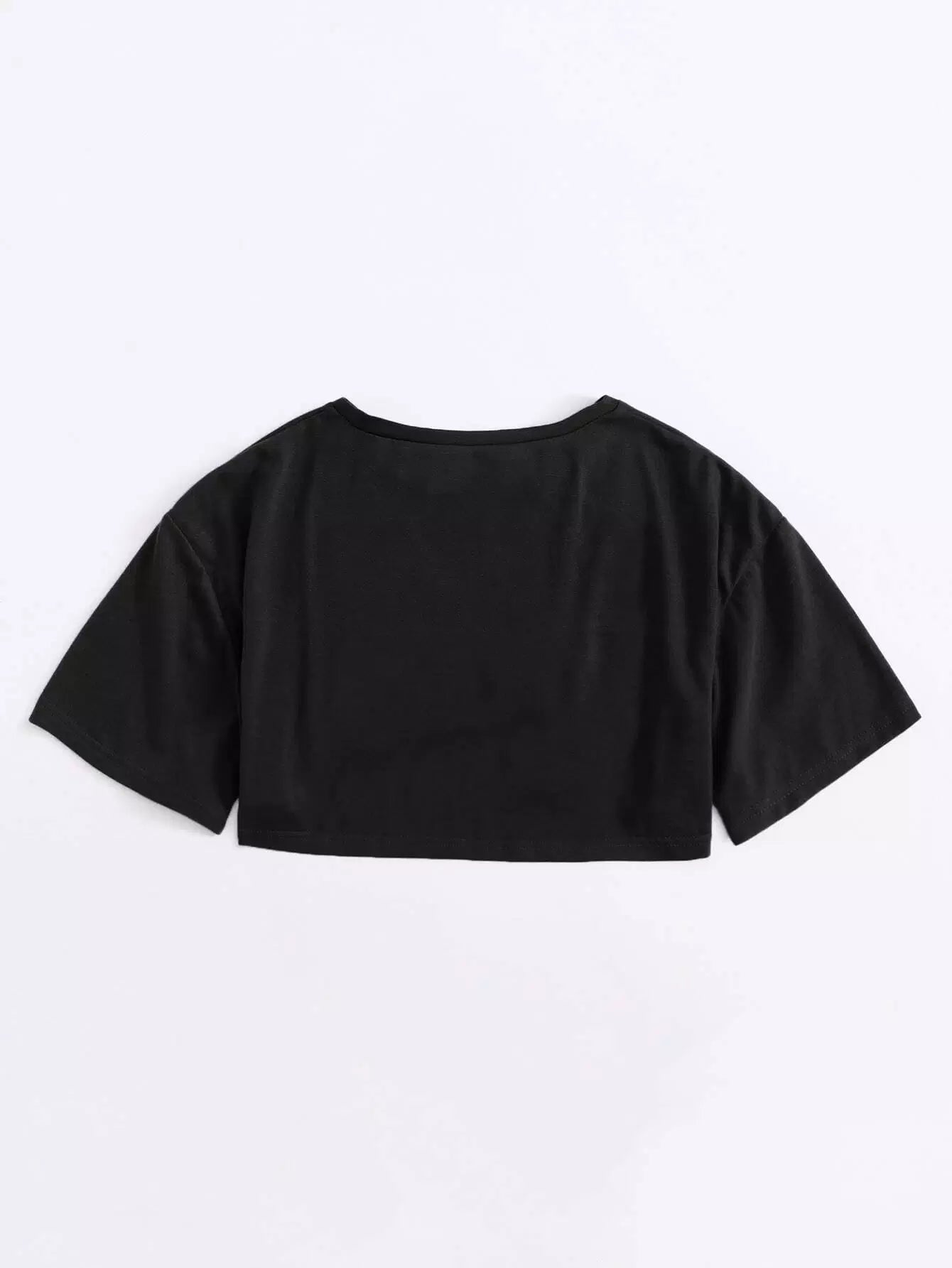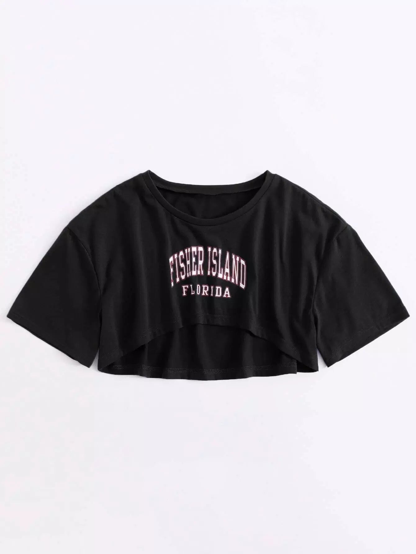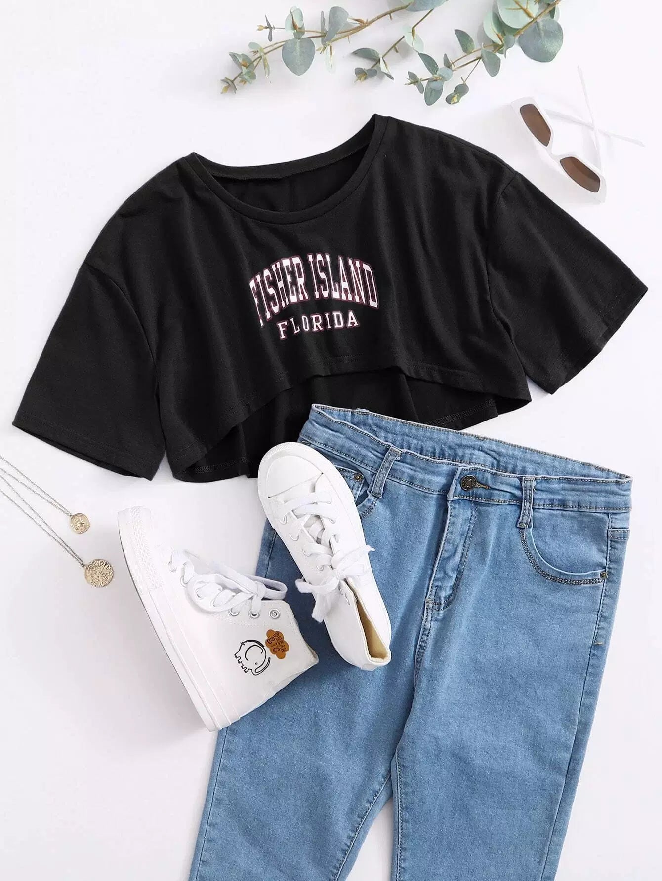 تي شيرت برسومات وأحرف منسدلة على الكتف