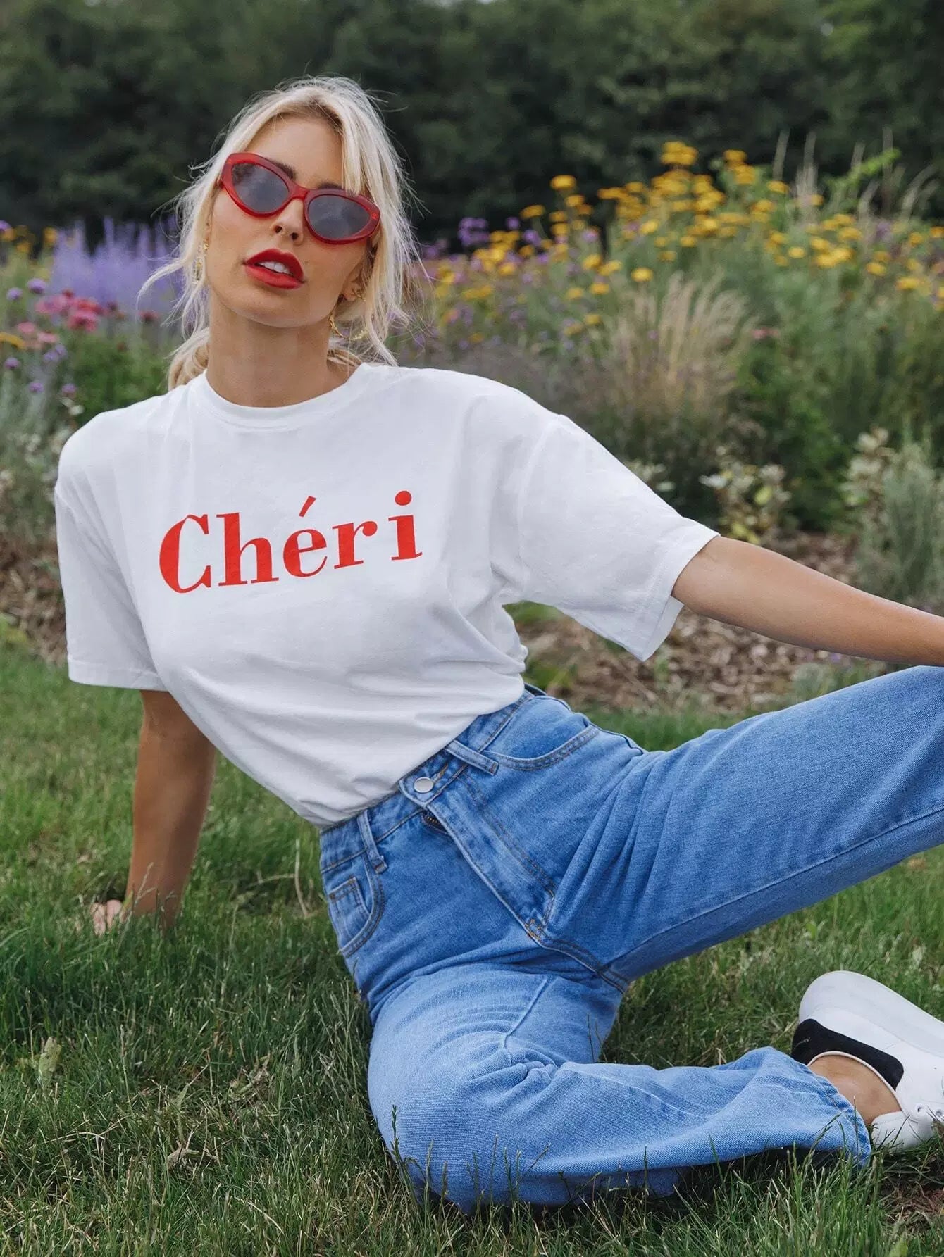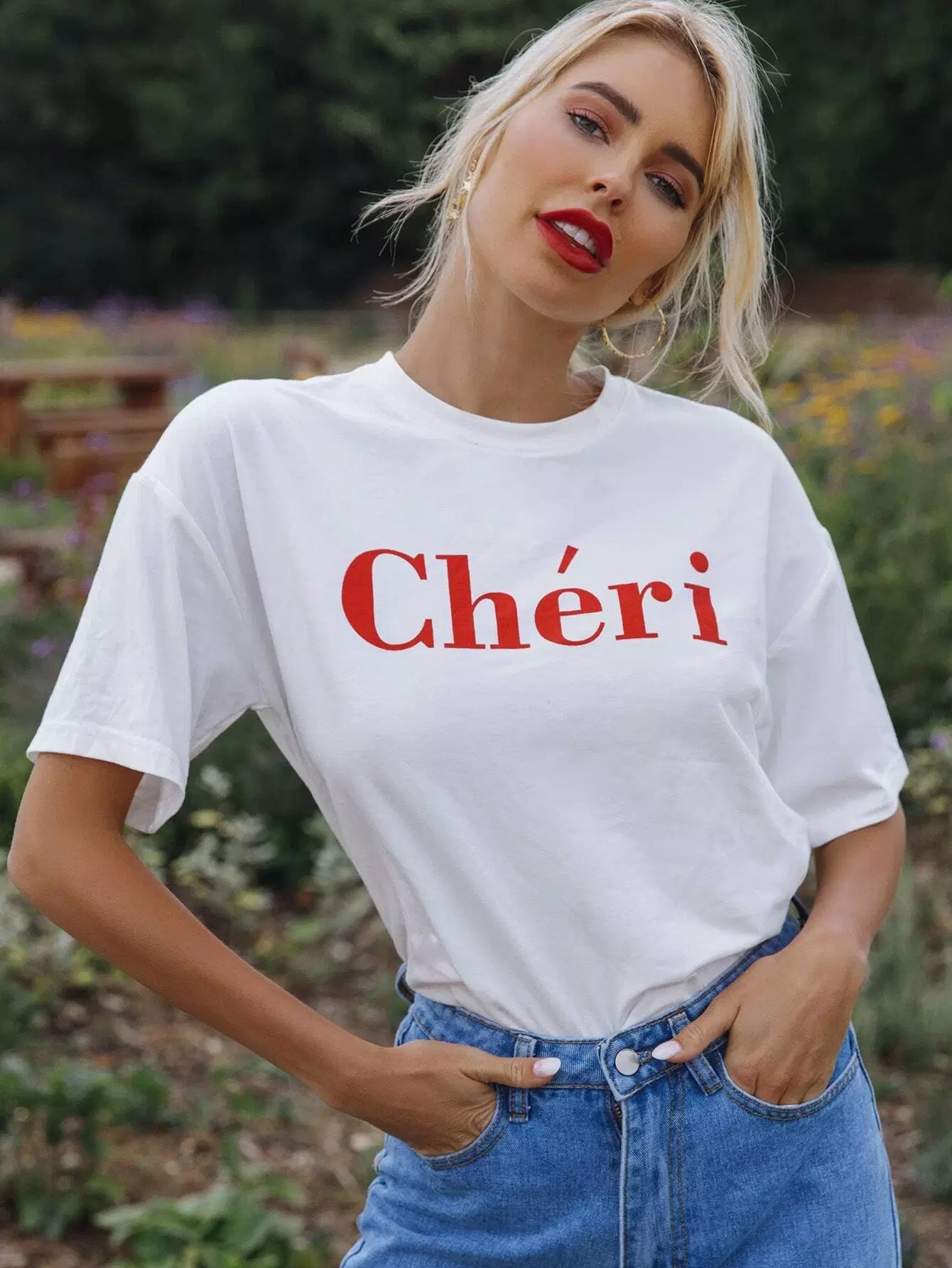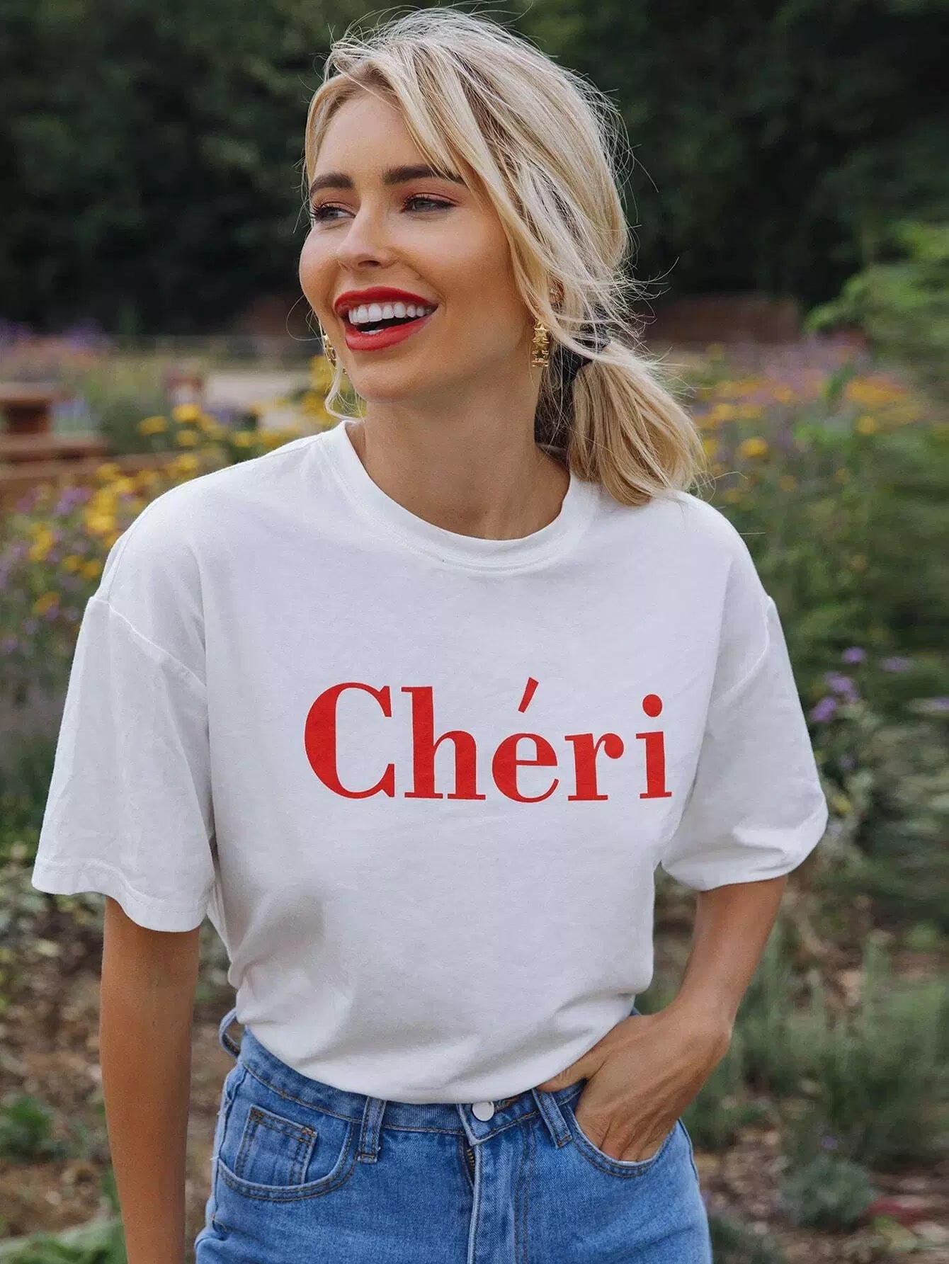 توب بدون أكتاف منسدل الكتف برسومات حروف منسدلة