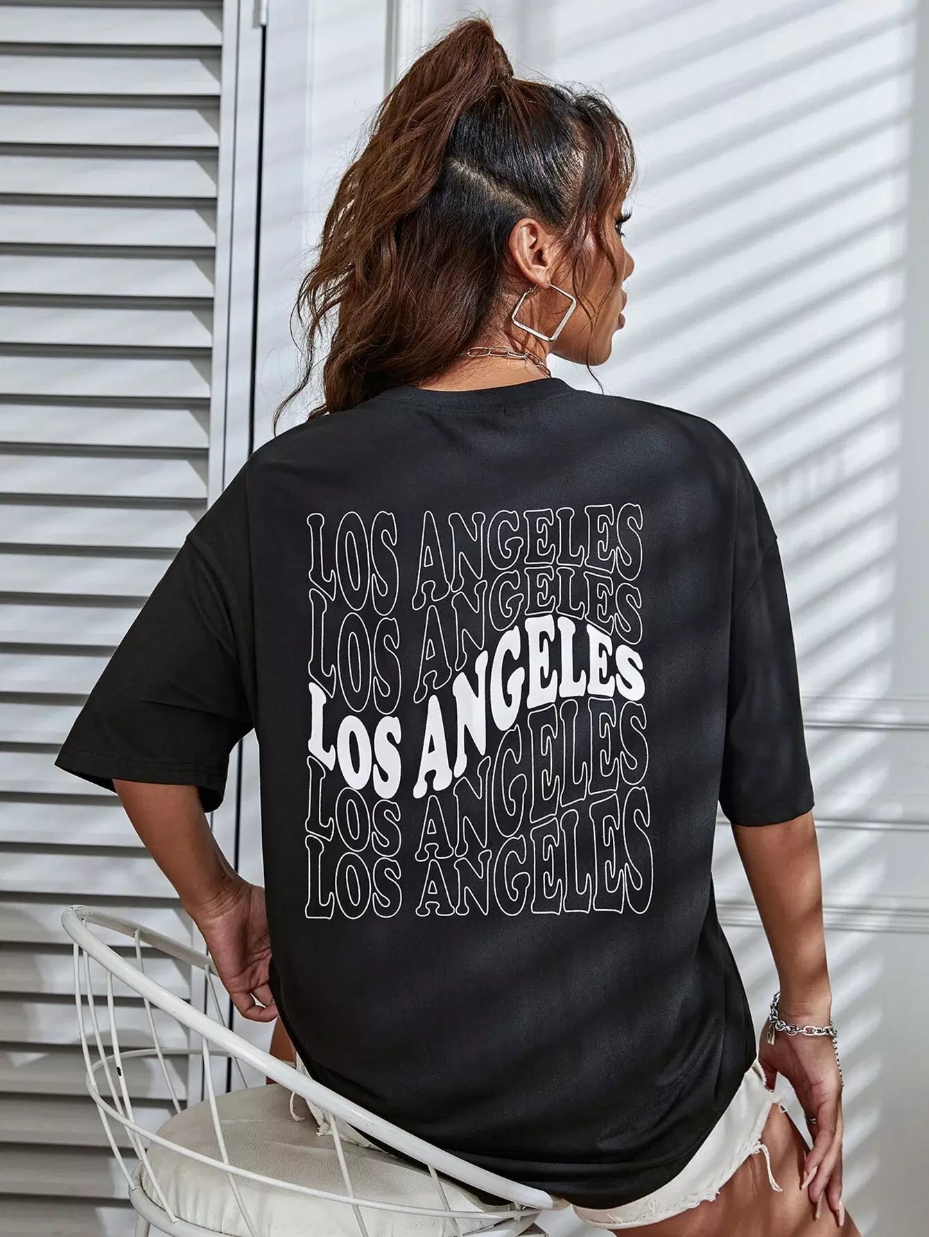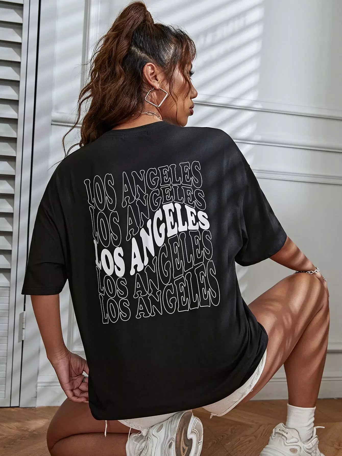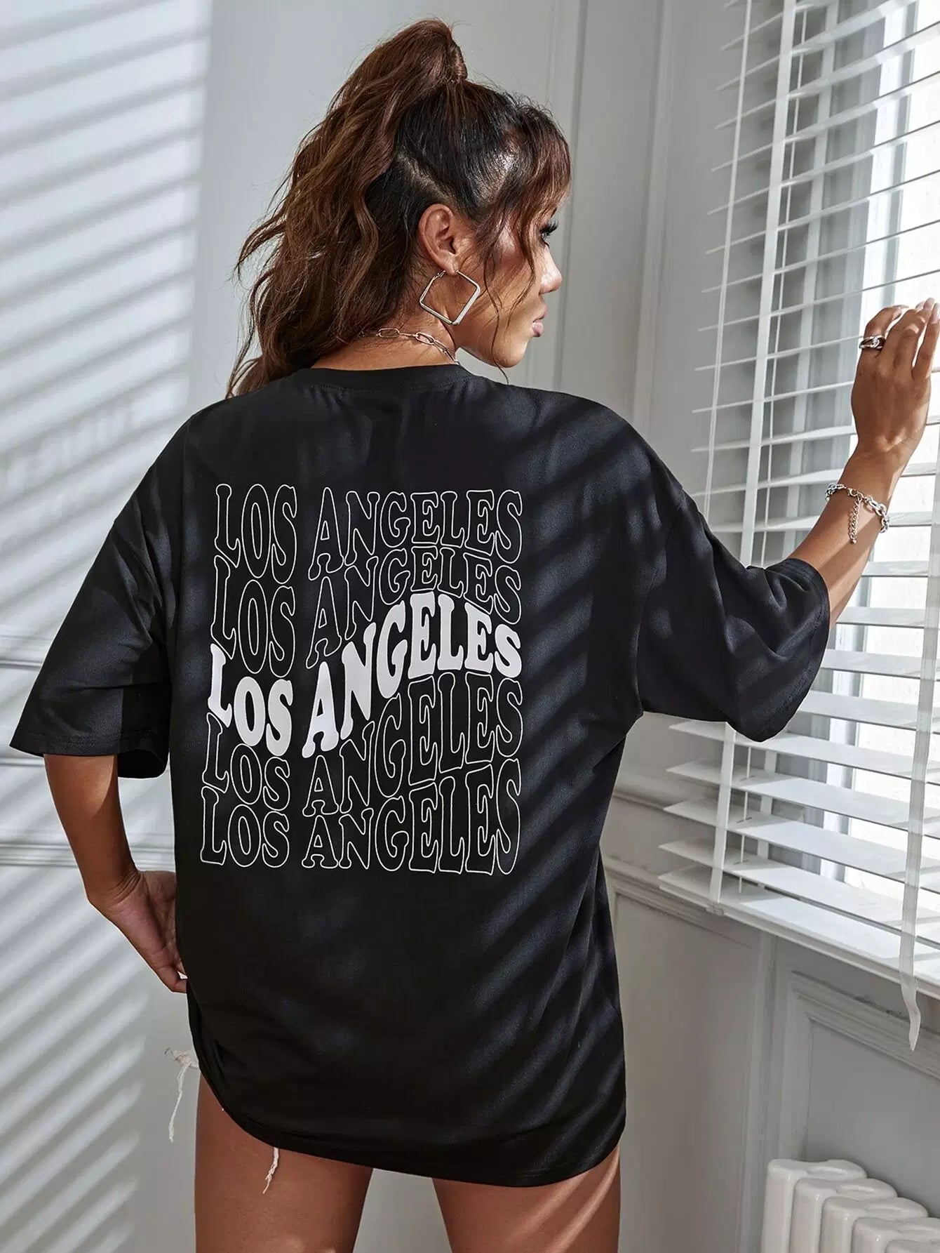 بلوزة برسومات وأحرف منسدلة على الكتف