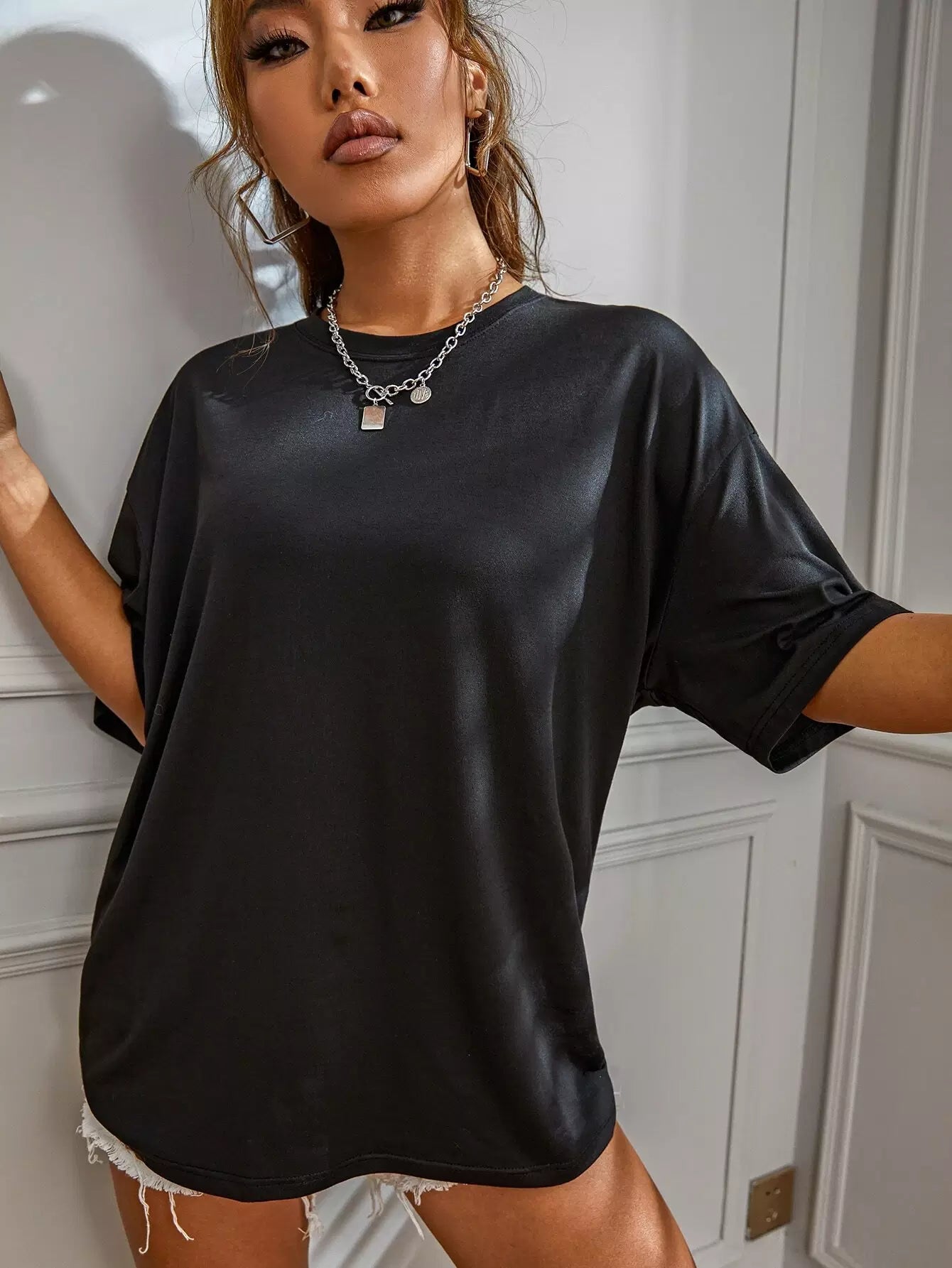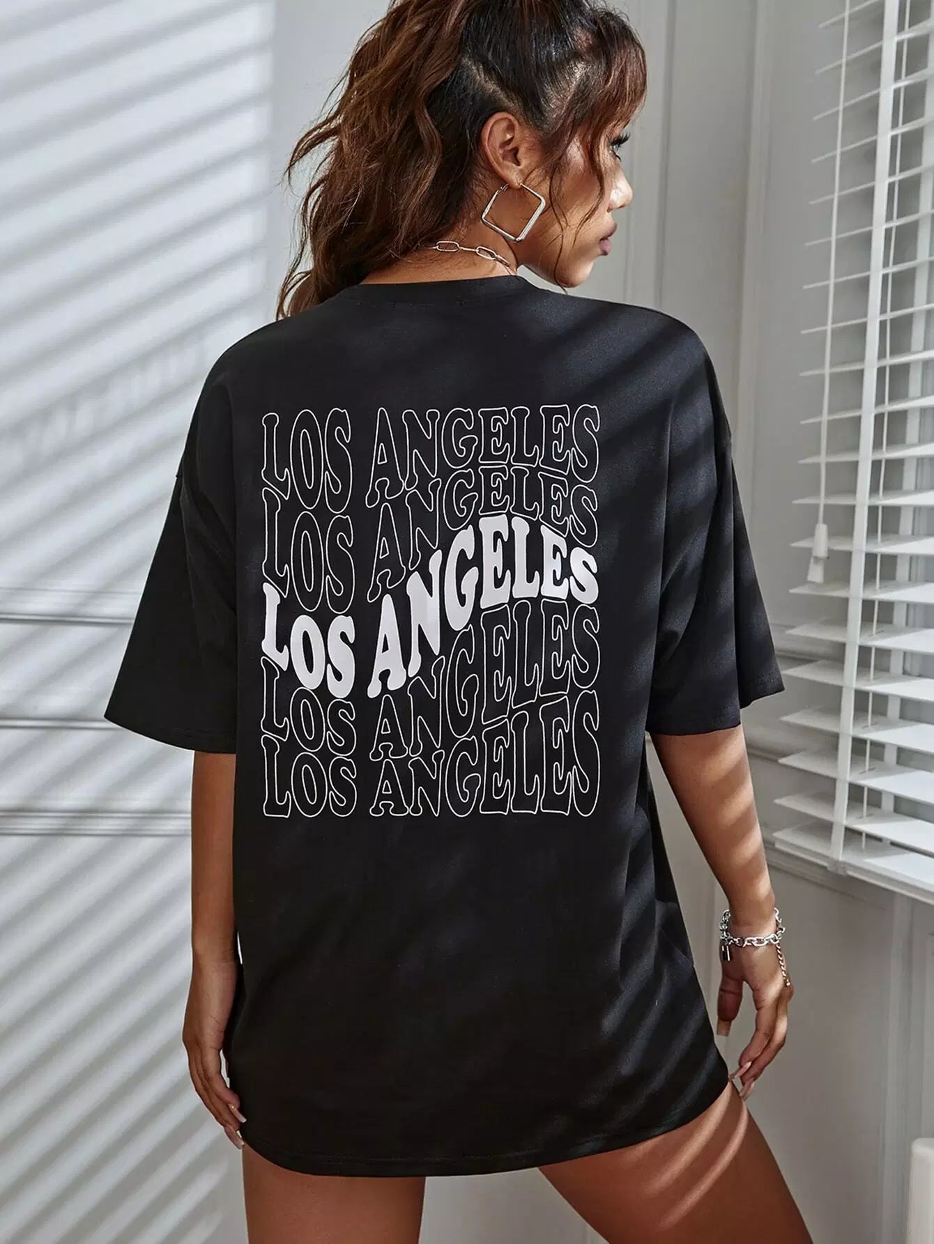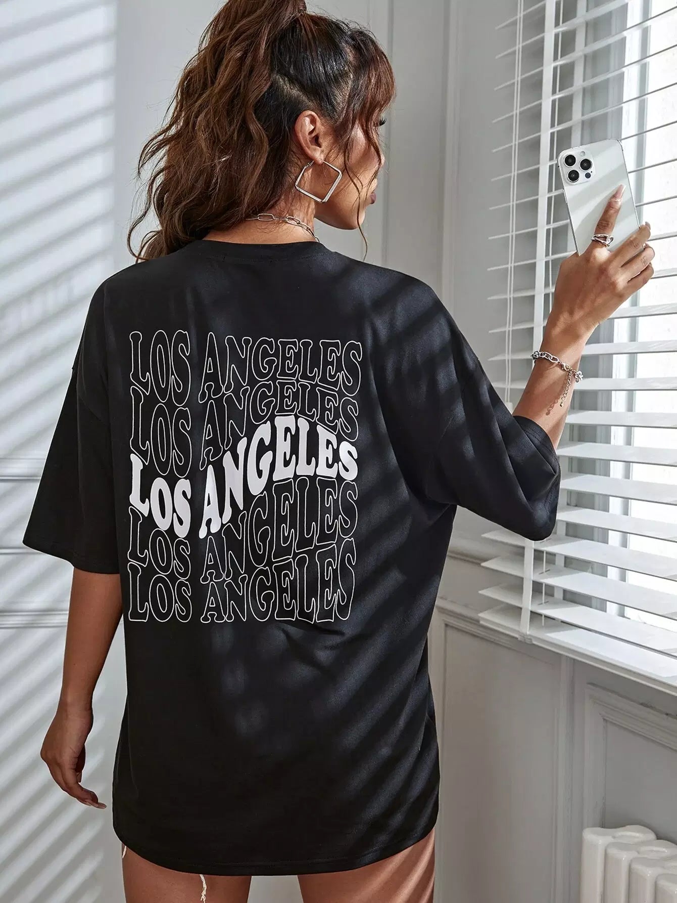 بلوزة برسومات وأحرف منسدلة على الكتف