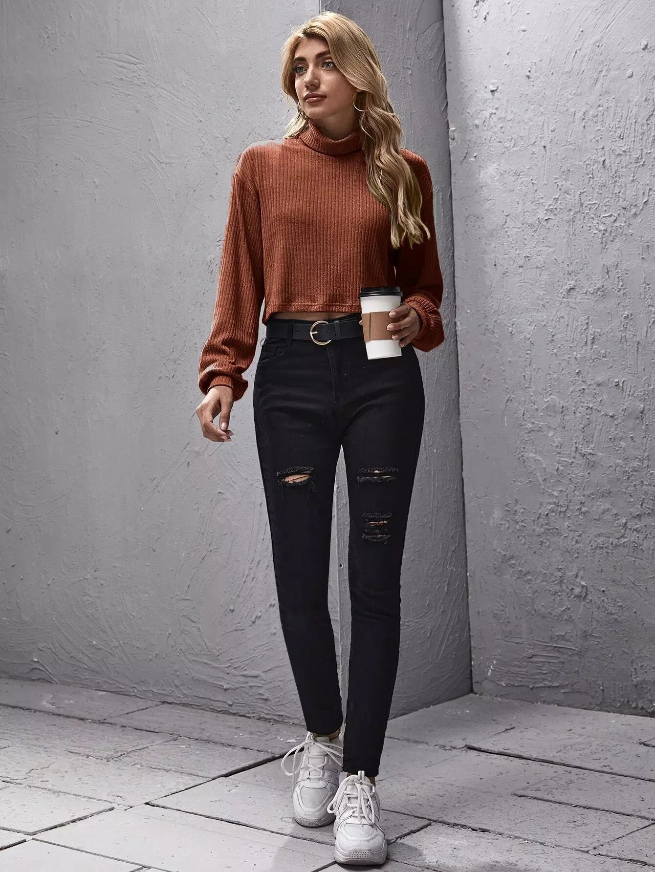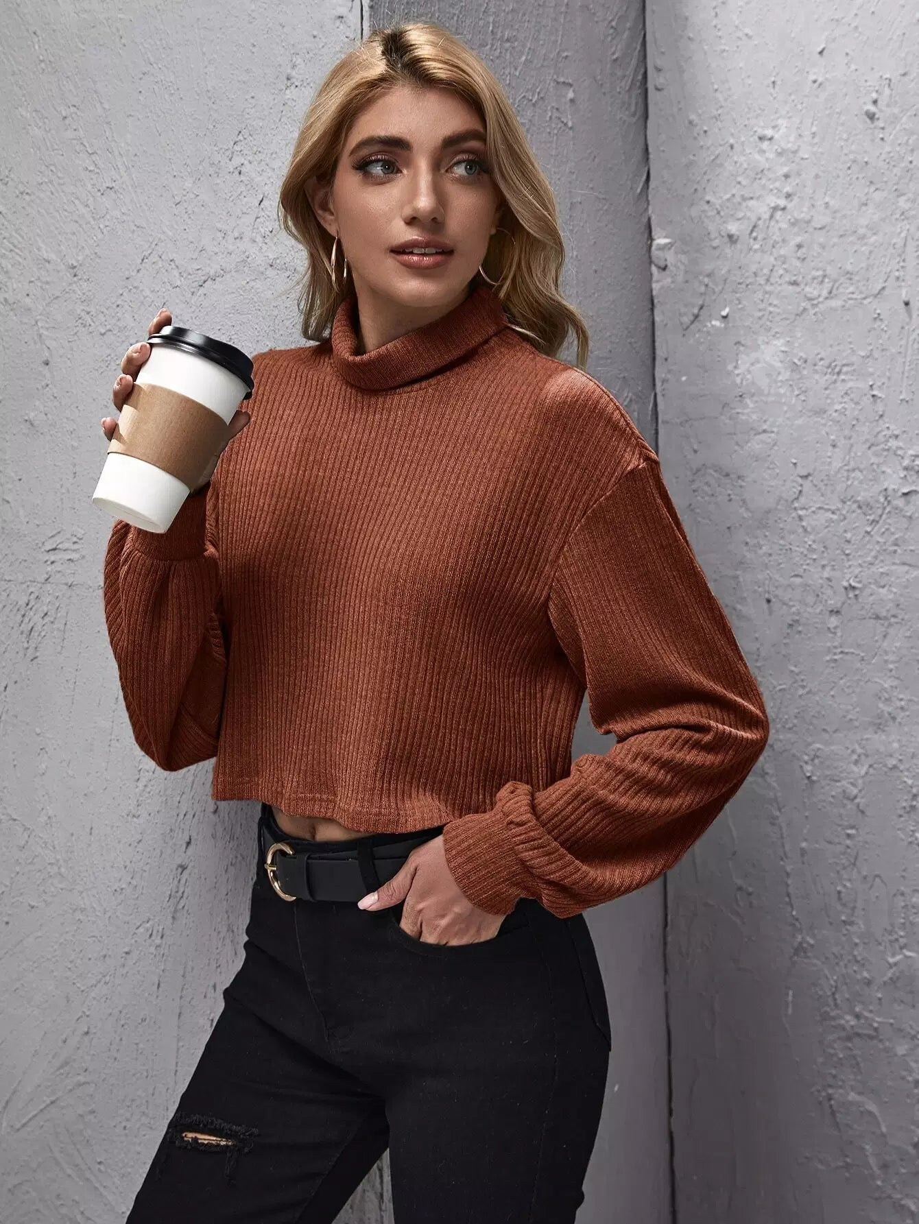 تي شيرت بأكتاف منسدلة على شكل ضلع محبوك