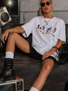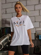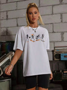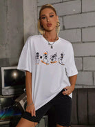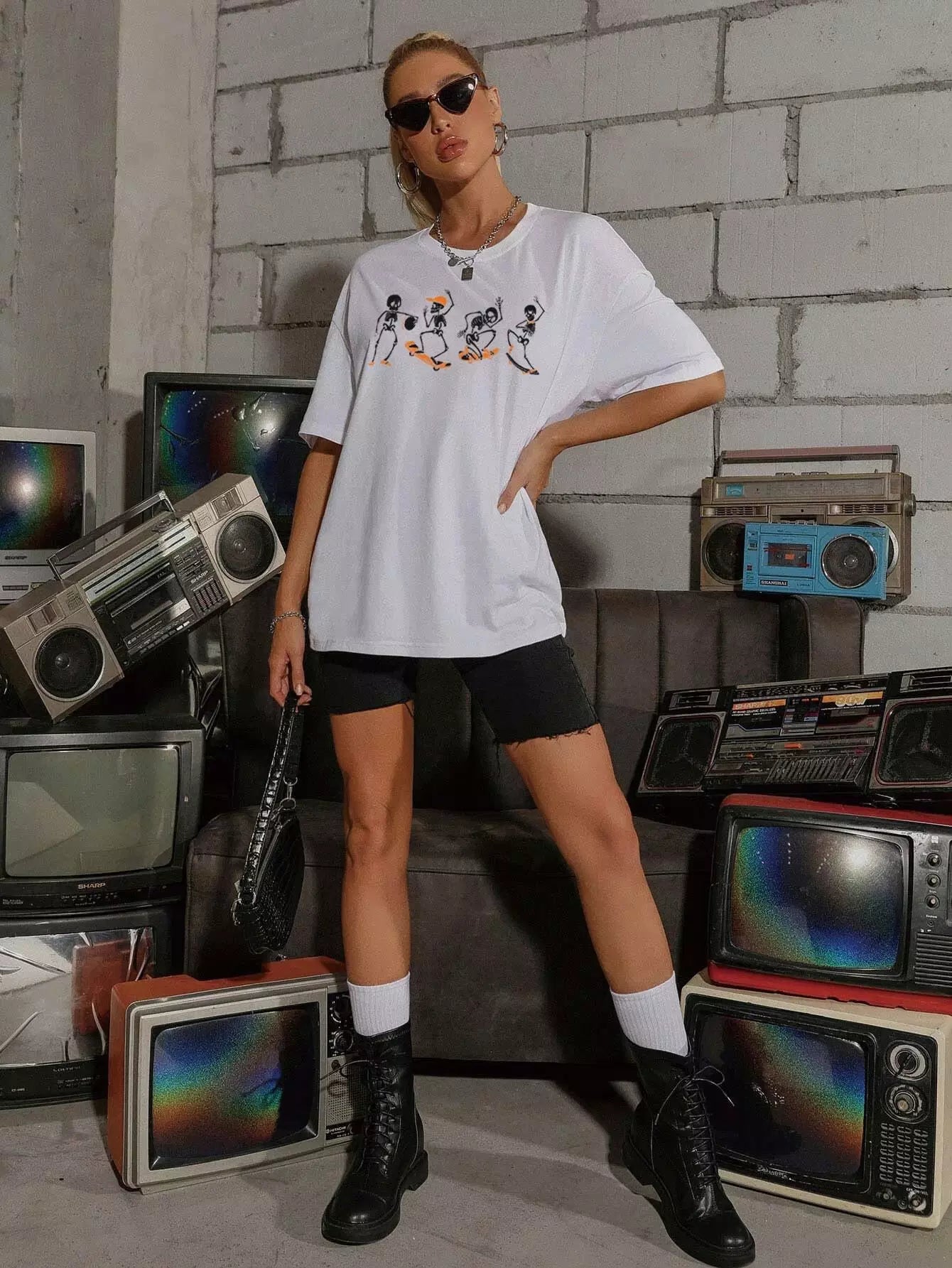 قميص بطبعة هيكل عظمي منسدل الكتفين