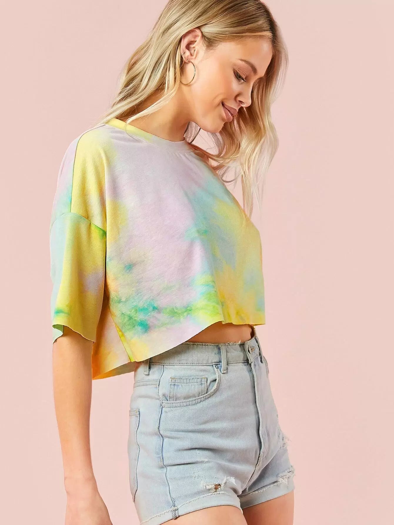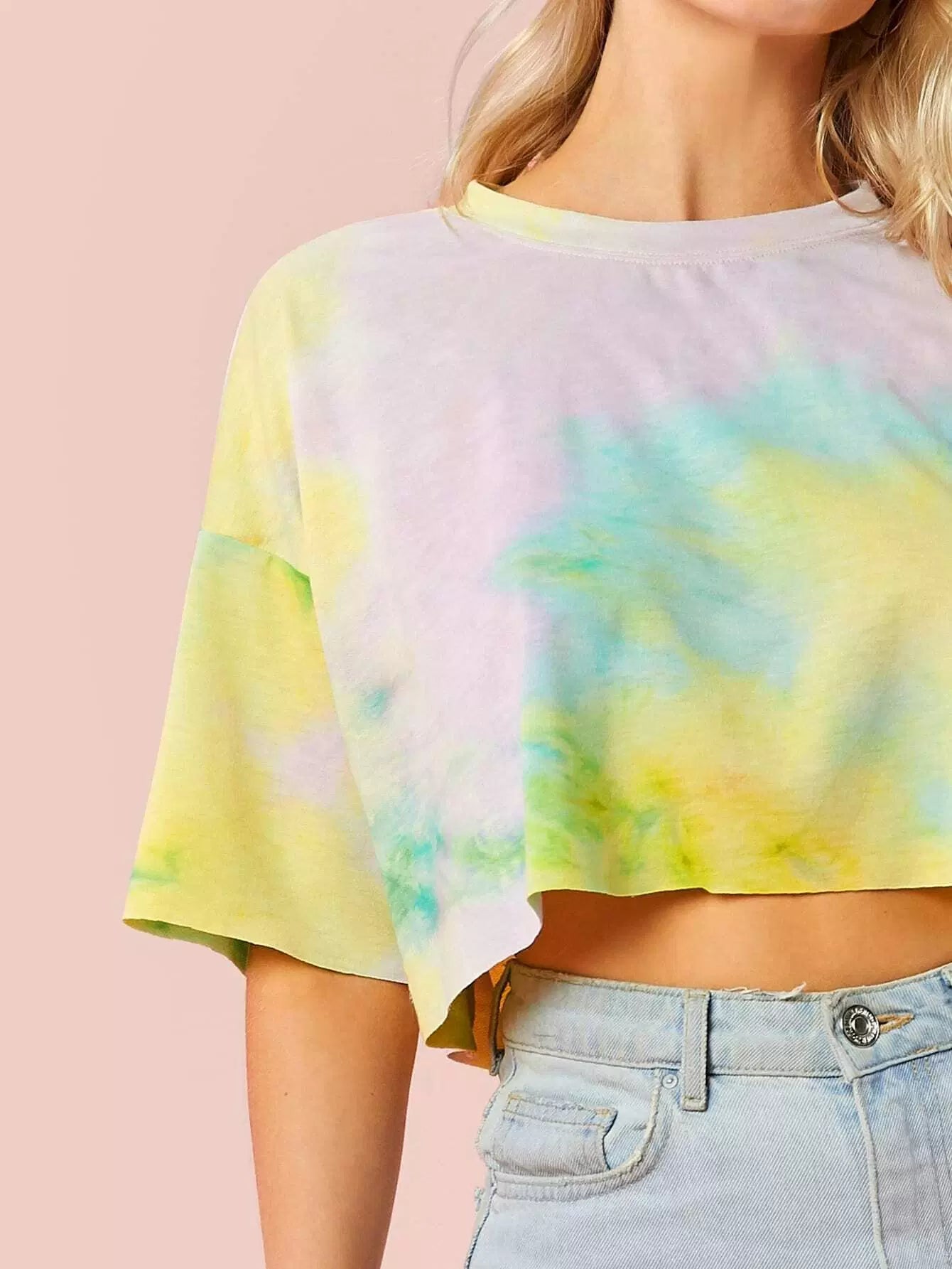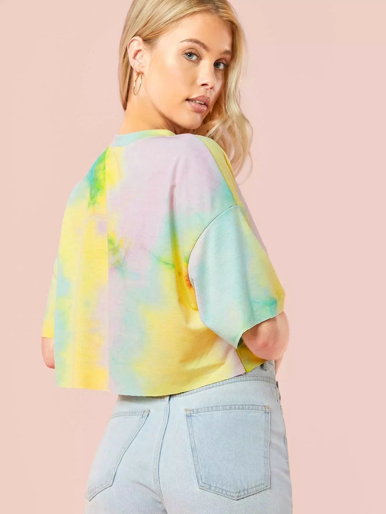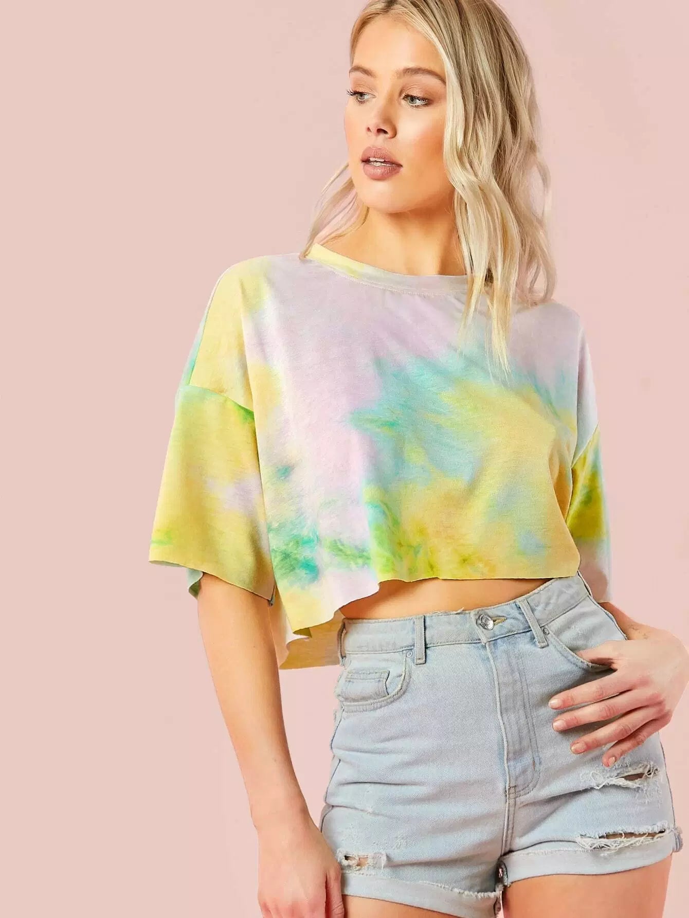 تي شيرت قصير منسدل الأكتاف مصبوغ بالصبغة المنسدلة