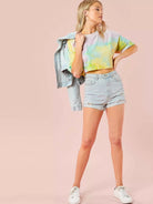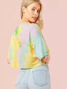 للنساء - تي شيرت قصير مصبوغ بأكتاف منسدلة