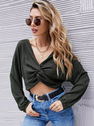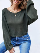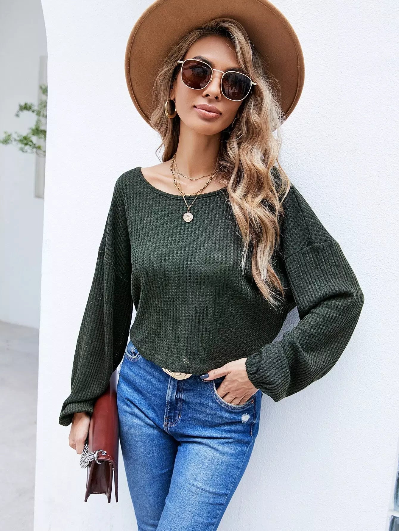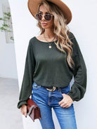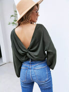 بلوزة بكتف منسدلة على الكتفين بفتحة منسدلة بظهر ملتف ومتماسك