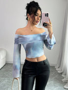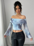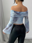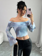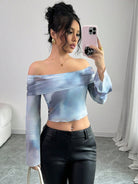 women Elenzga Net Yarn Off Shoulder Printed Elegant And Fashionable T-Shirt For Women Graphic Tees Women Tops