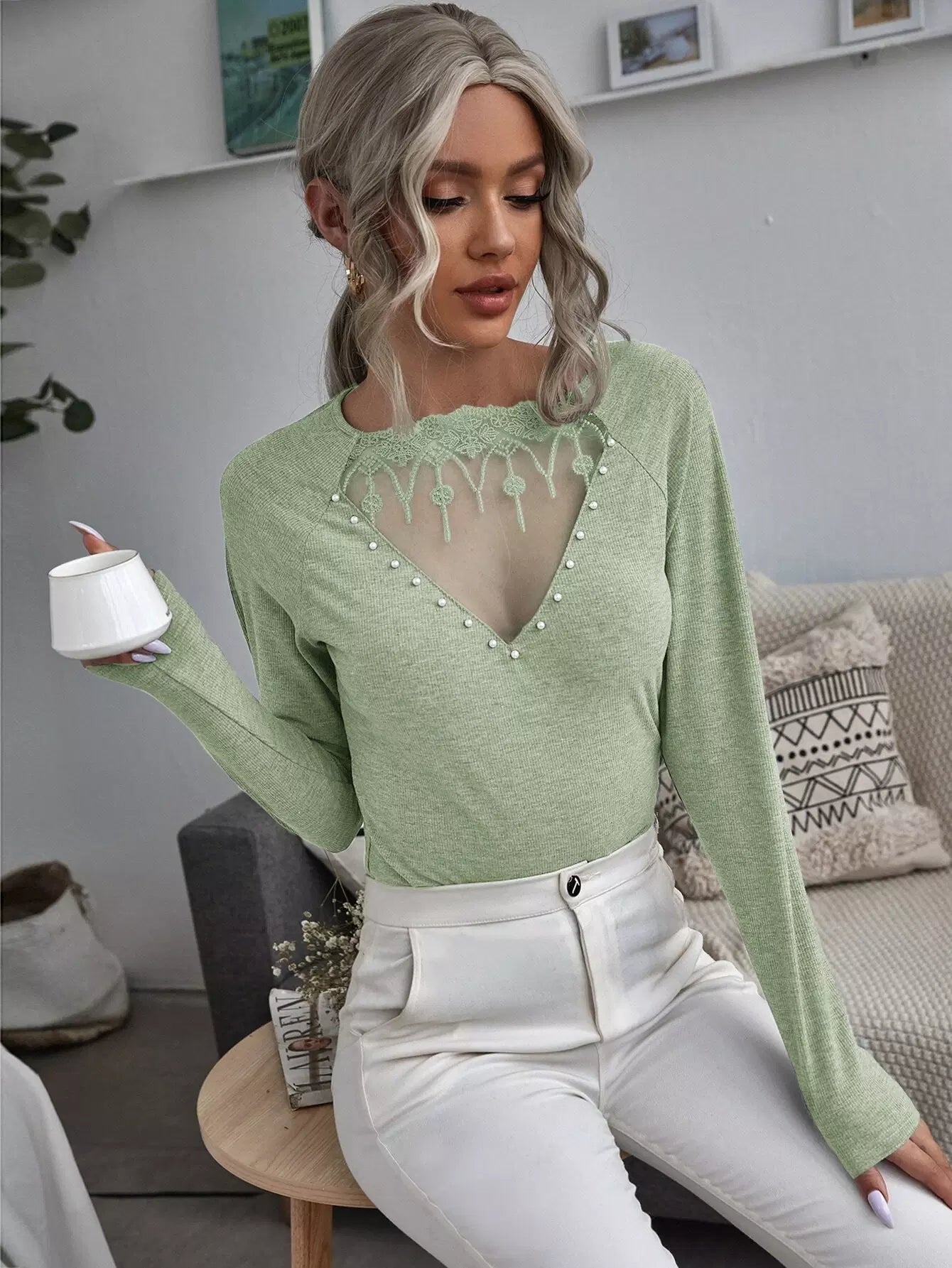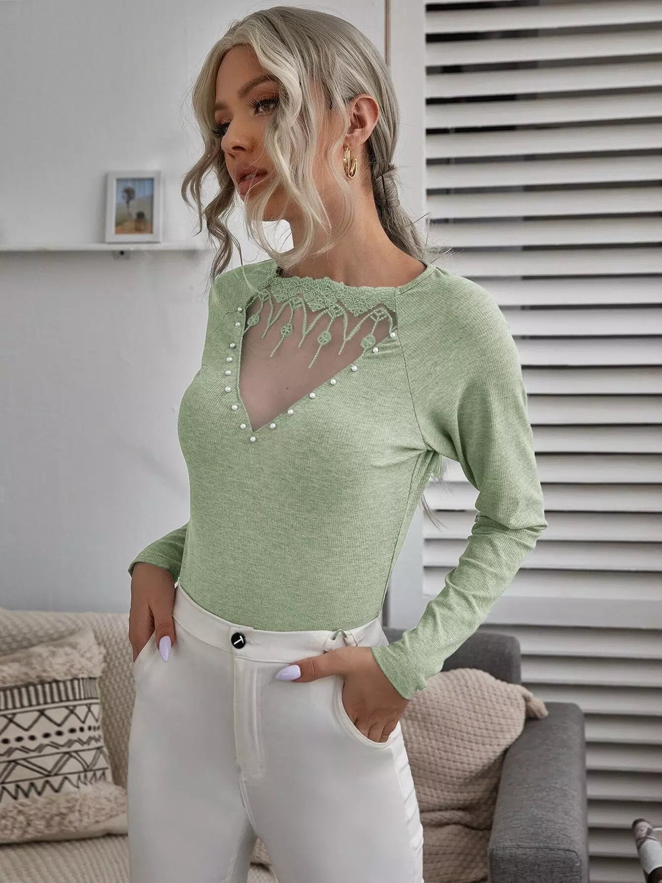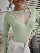 تي شيرت بتطريز شبكي مطرز باللؤلؤ والخرز