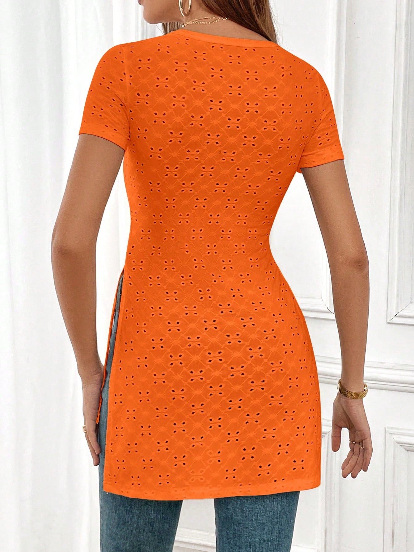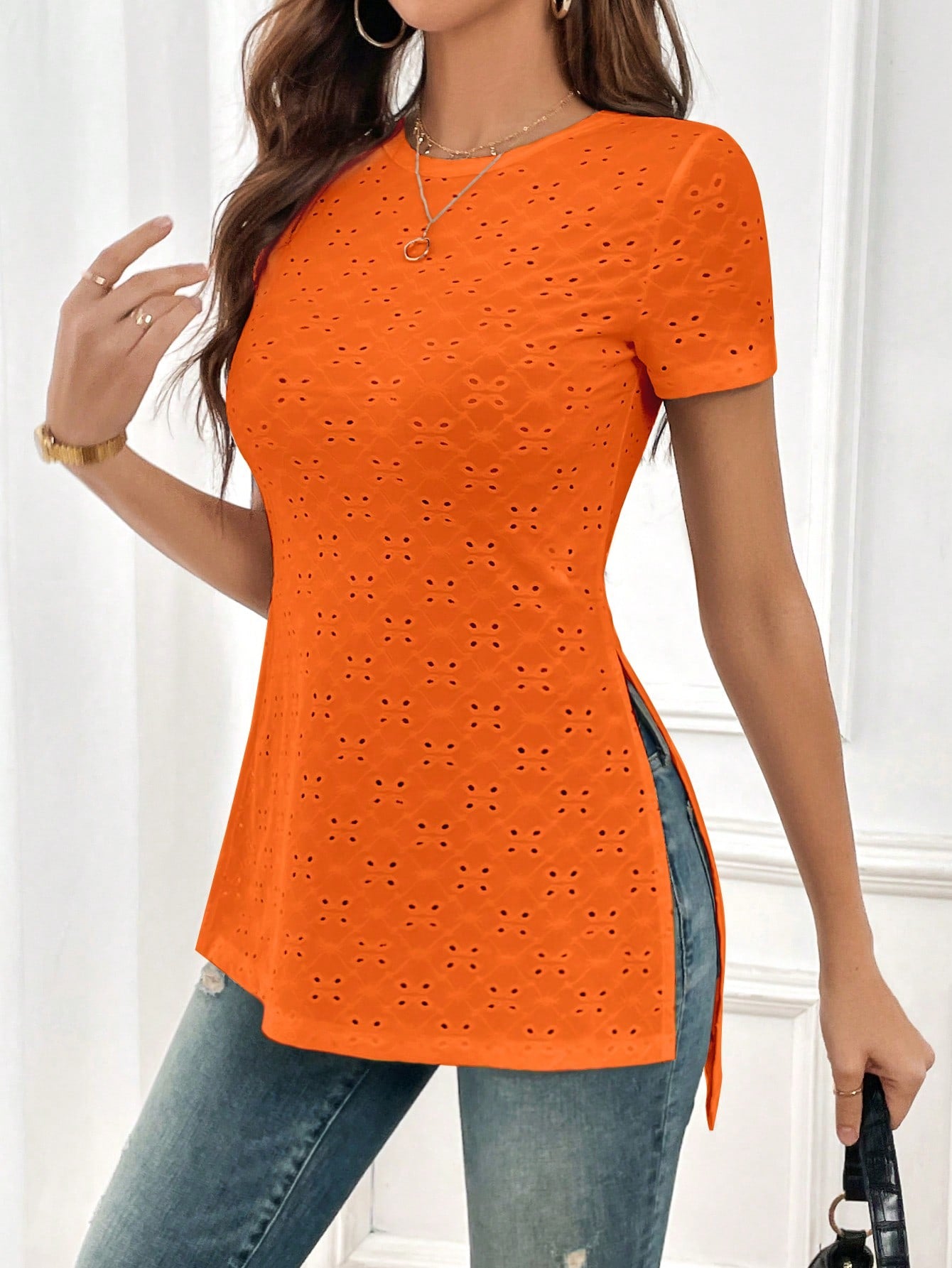 Essnce Eyelet Embroidery Split Hem Tee