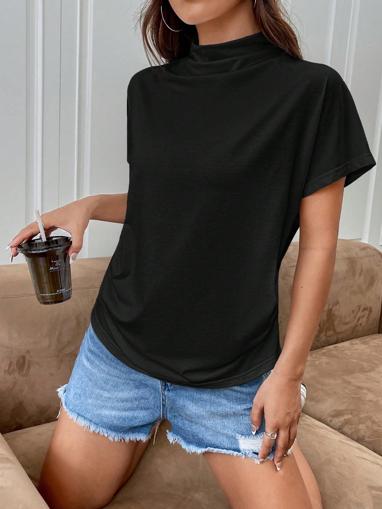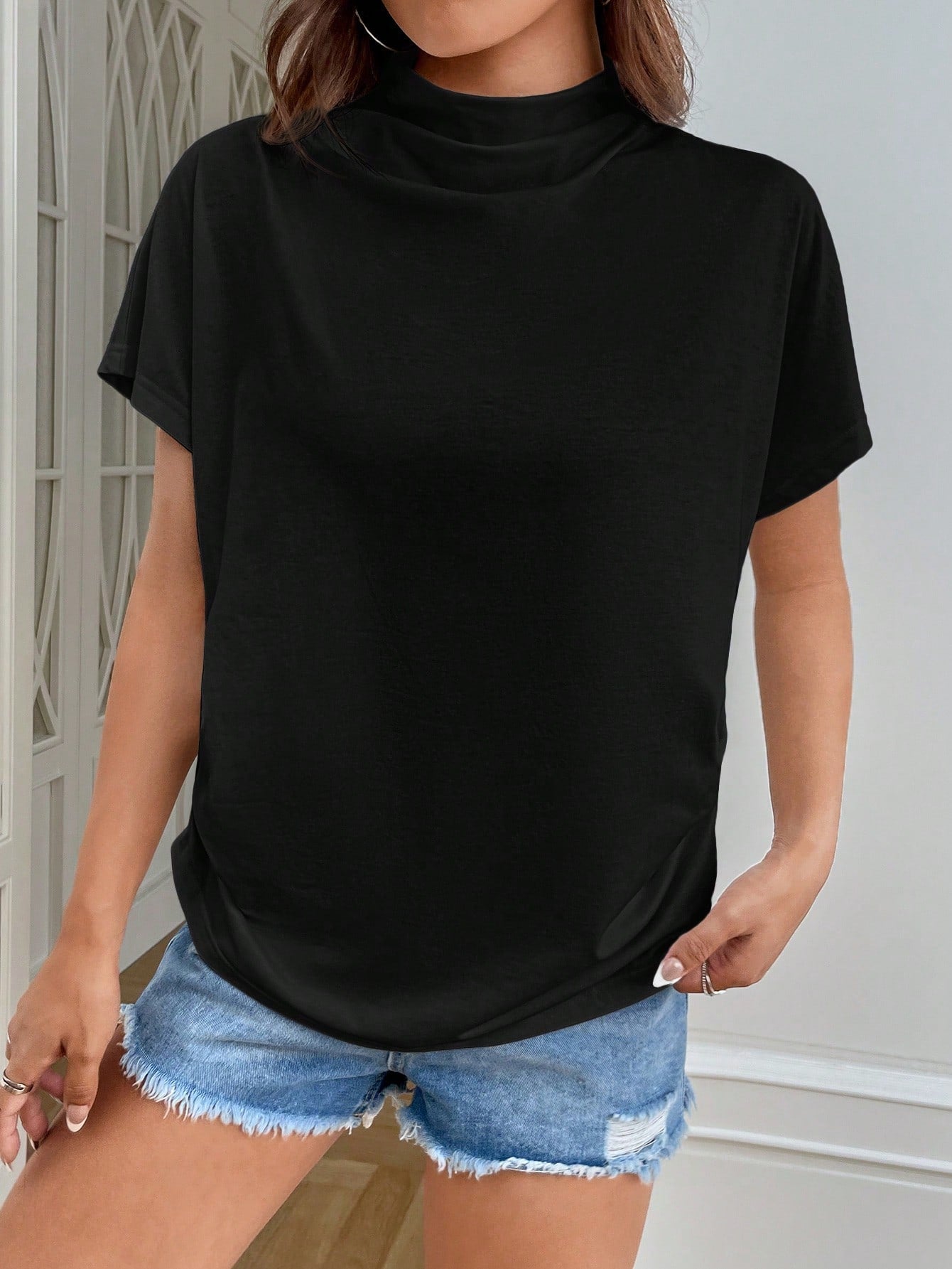 Essnce Women's Stand Collar Short Sleeve T-Shirt