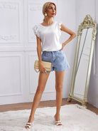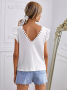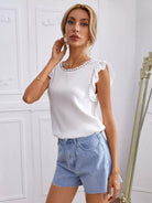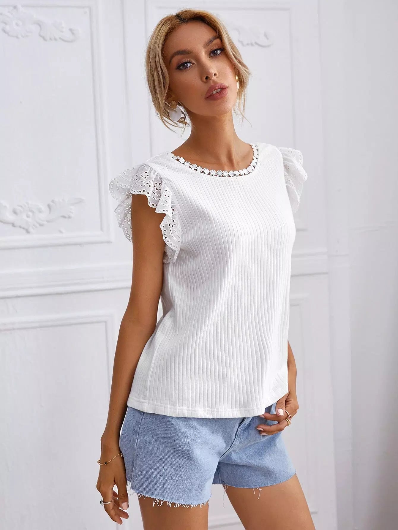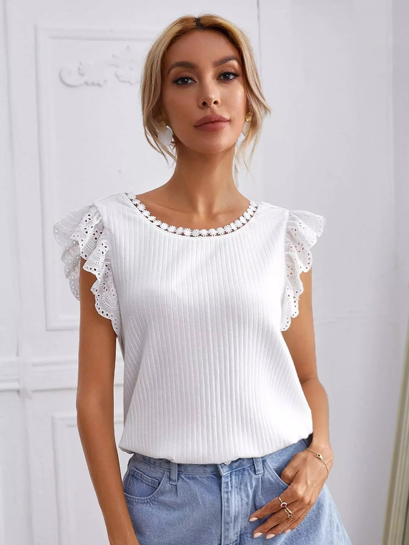 بلوزة بفتحة ذراع مطرزة بكشكش مطرز بالعقيق