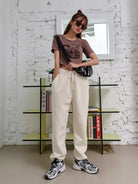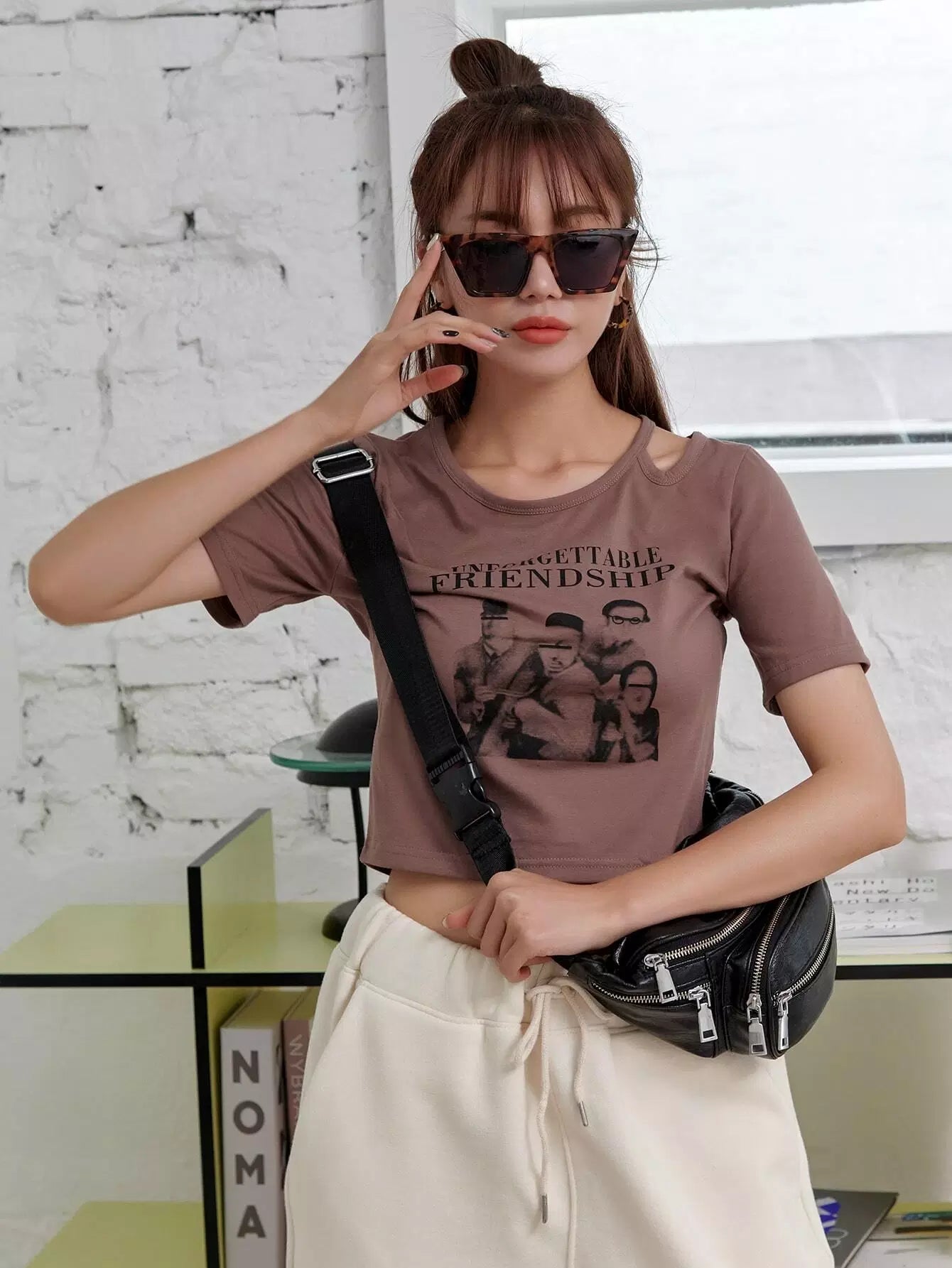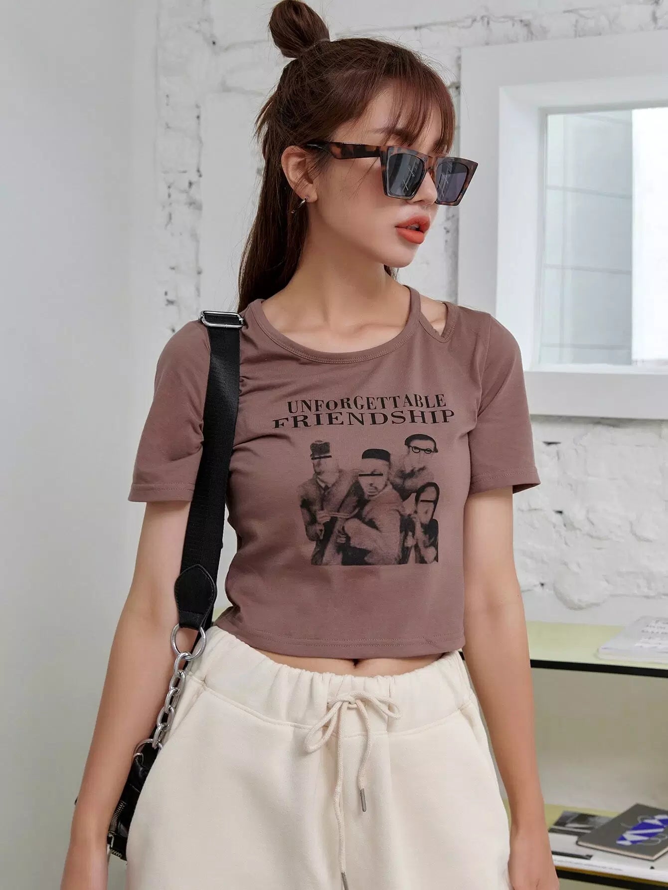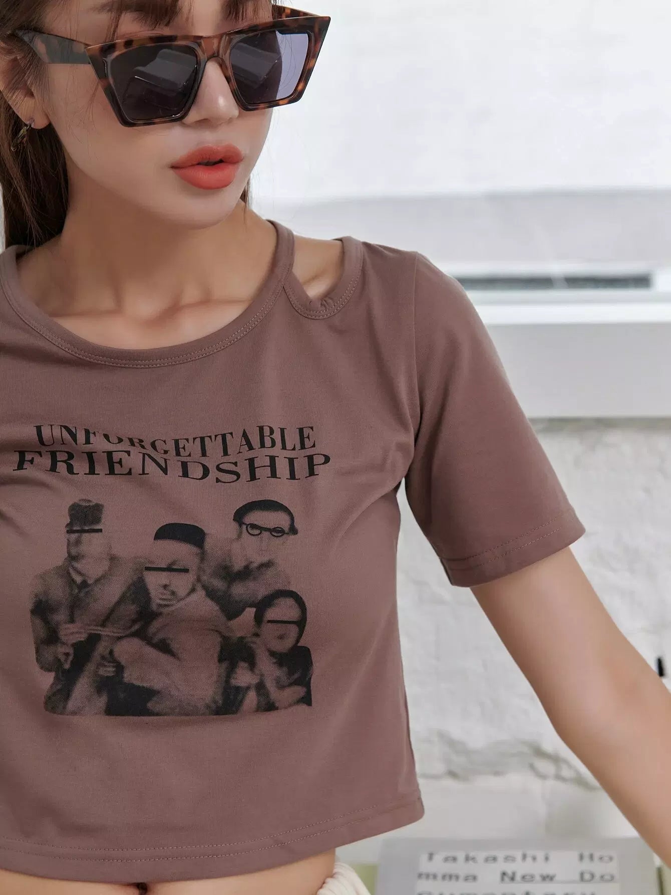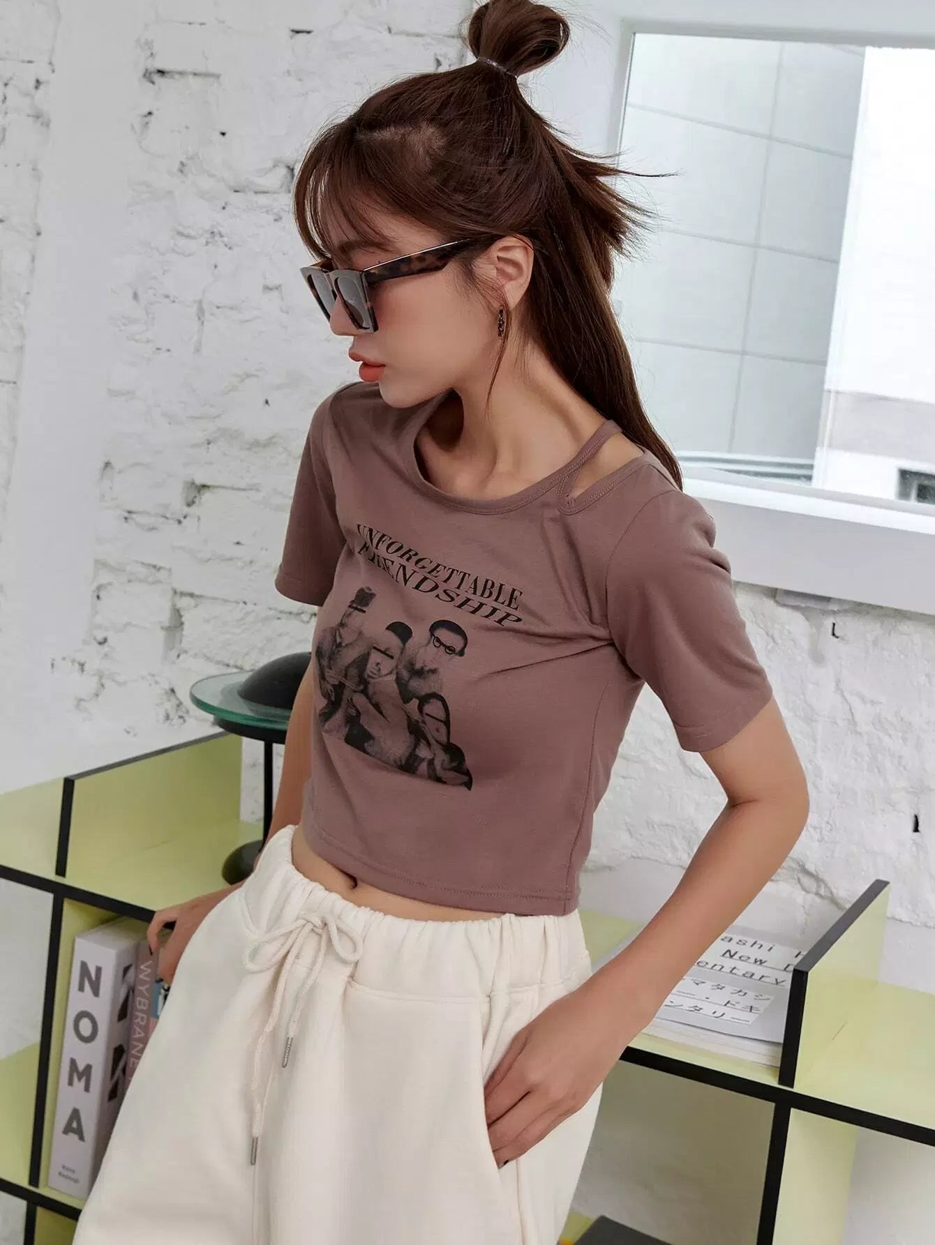 تي شيرت قصير مقصوص على شكل جرافيك