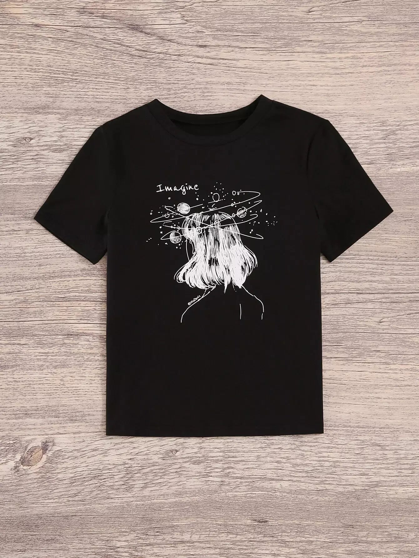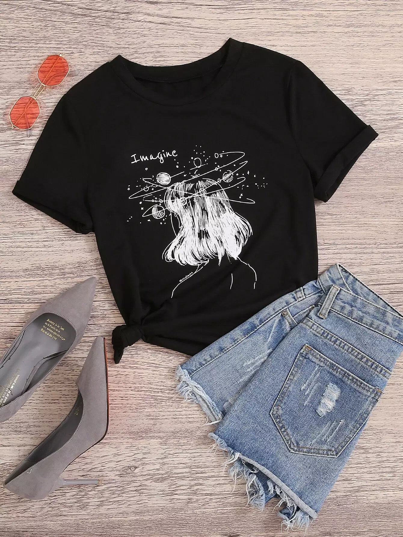 تي شيرت بأكمام قصيرة الأكمام على شكل جرافيك