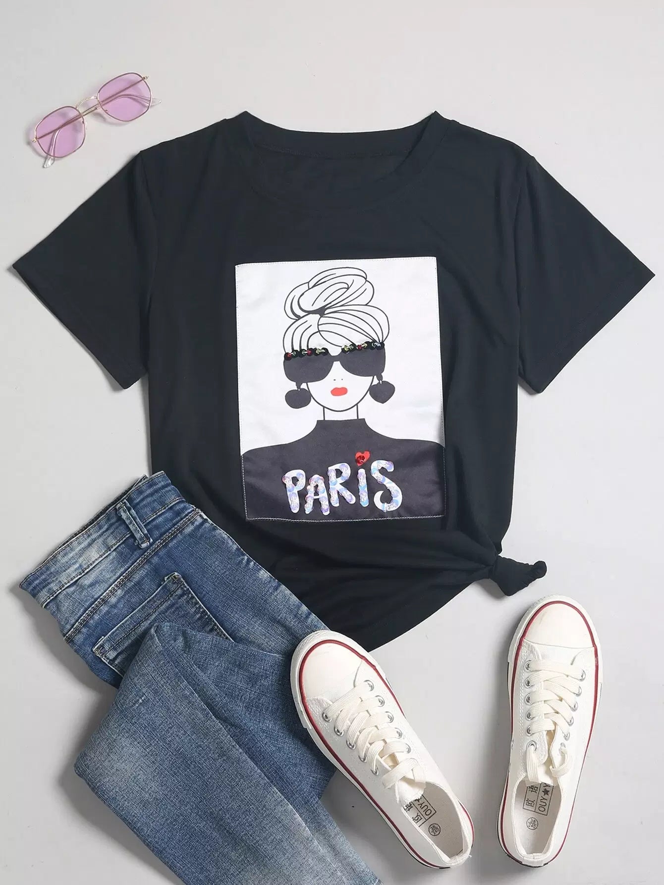 تي شيرت بتصميم على شكل وحرف