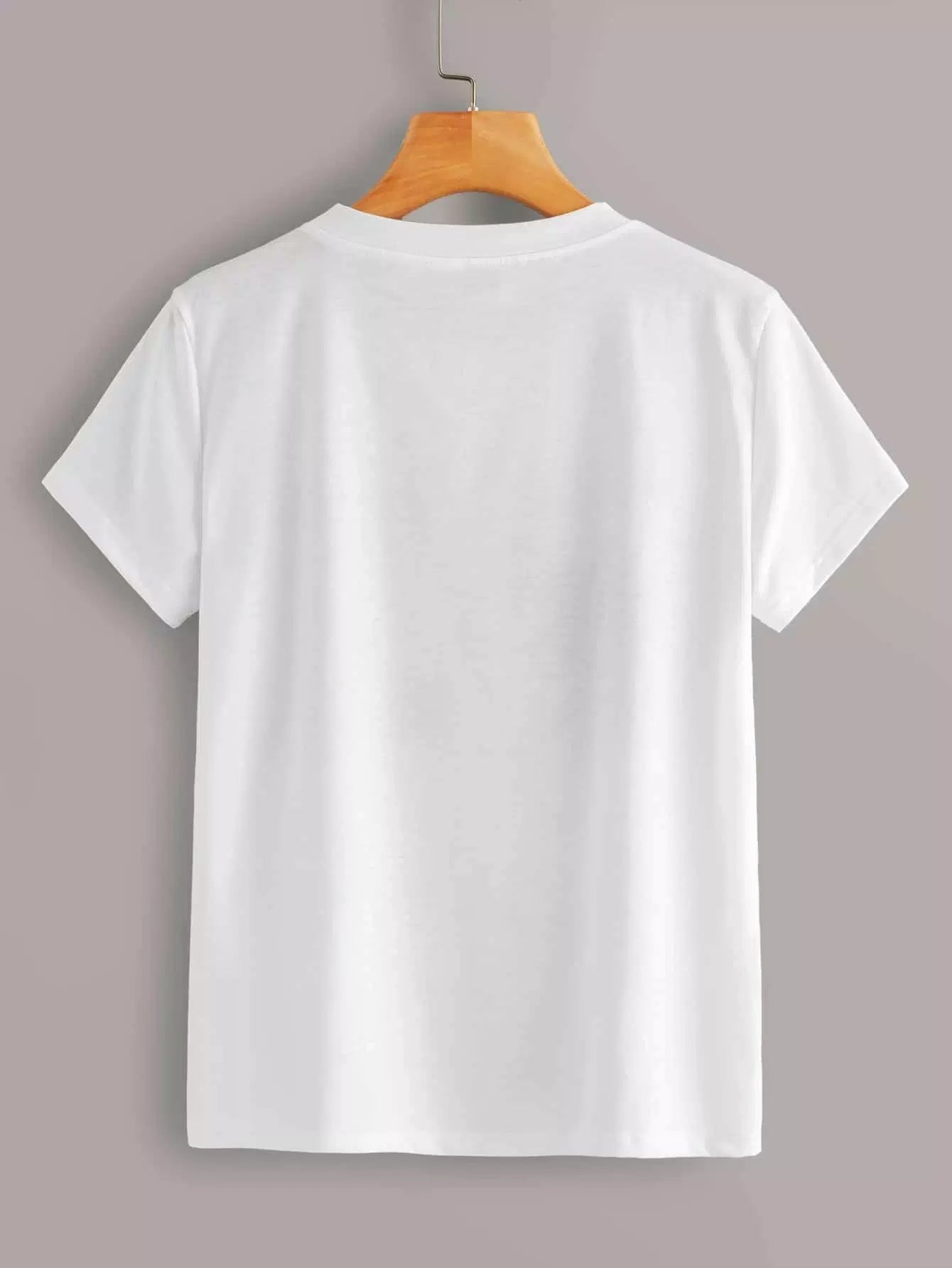 للنساء - تي شيرت برقبة دائرية وطبعة أرقام وأحرف