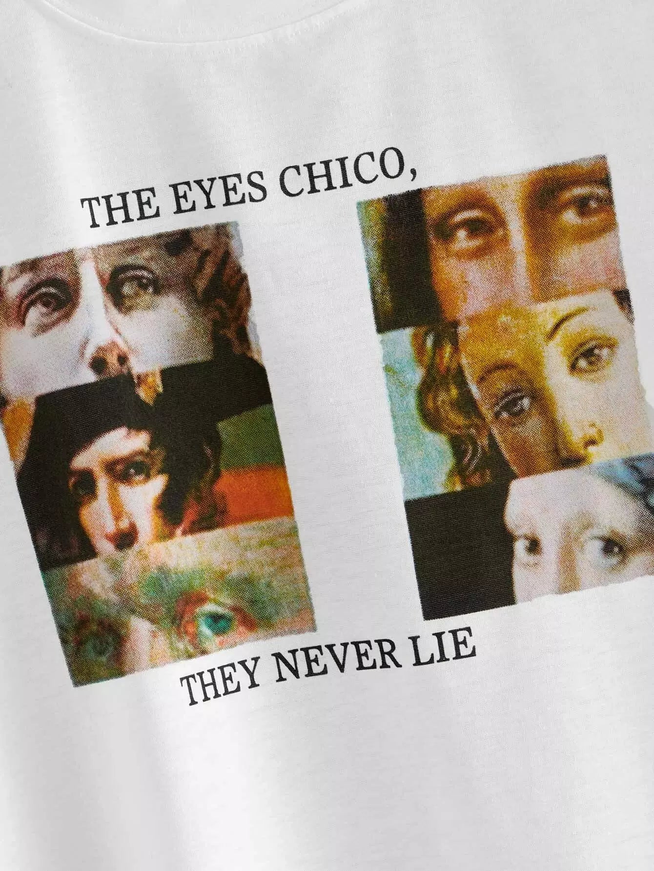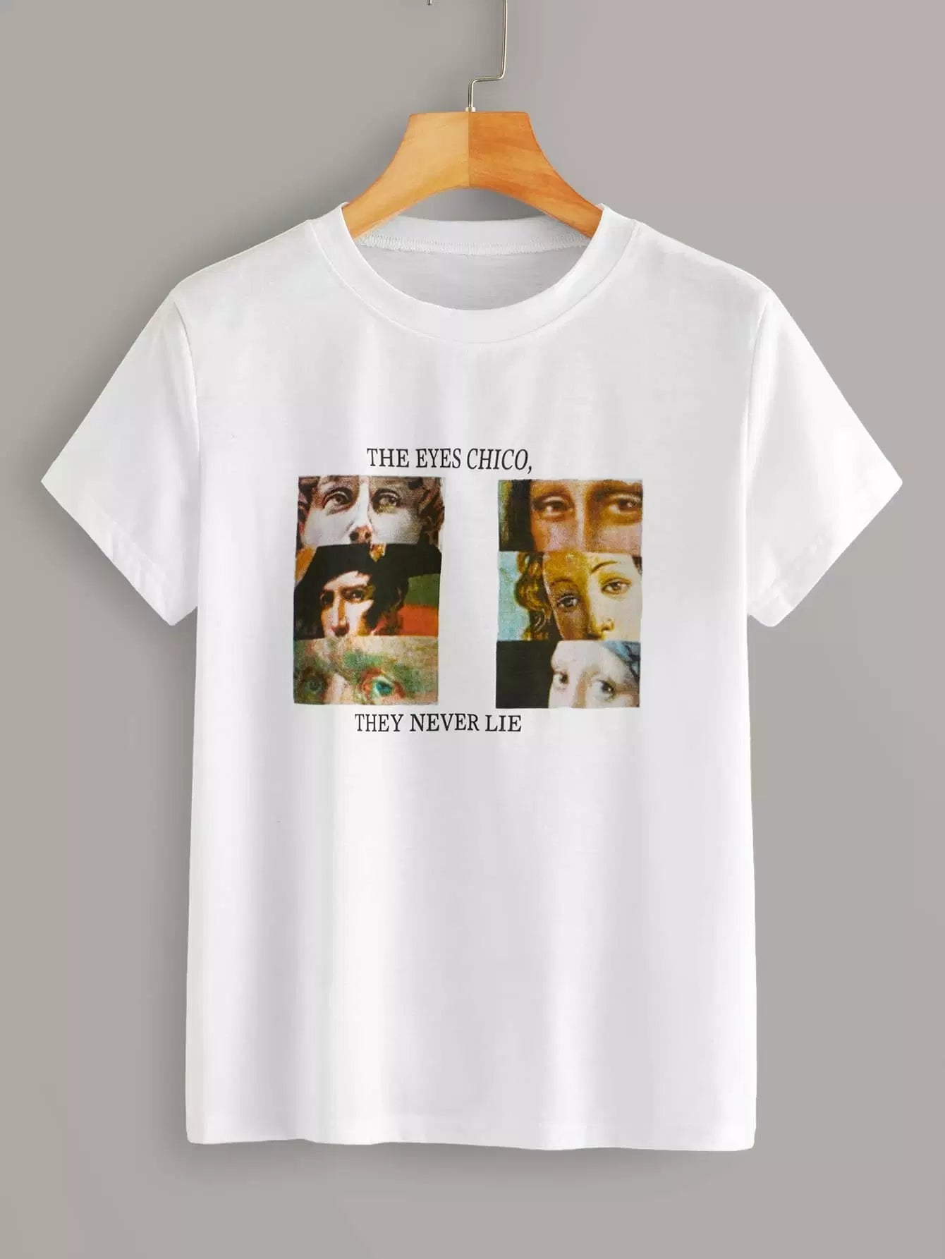 تي شيرت برقبة دائرية مطبوع عليها شكل وحرف
